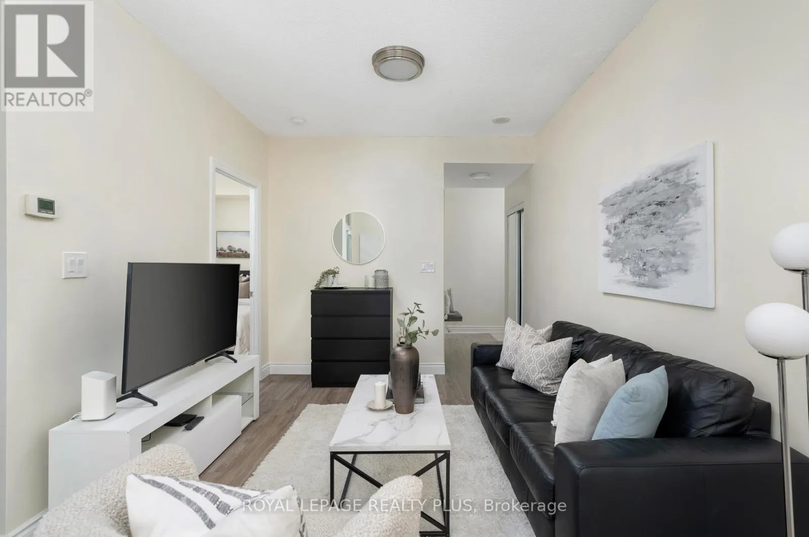 Rathburn/Dixie Welcome to this beautifully appointed corner unit a bright and inviting suite that blends modern comfort with practical design. From the moment you step inside, you're welcomed by an open-concept layout filled with natural light, highlighted by soaring 9-foot ceilings and contemporary kitchen pot lights that add warmth and style. Sleek vinyl flooring runs throughout, offering a clean, low-maintenance finish. The modern kitchen features granite countertops, updated cabinetry, and a smooth flow into the living and dining are as perfect for entertaining guests or enjoying a quiet night in. Step out onto your private balcony and enjoy your own outdoor space, ideal for morning coffee or evening relaxation. The bedroom is a peaceful retreat, complete with large windows that fill the room with natural light and easy access to a well-appointed bathroom. This unit includes a private parking space and a locker for extra storage. Even better, all utilities including hydro are fully included, making everyday living simple and hassle-free. The building is offers access to a wide range of amenities such as an indoor saltwater pool, sauna, fully equipped fitness center, party room, and media lounge. With 24/7 concierge service, you'll always feel safe and supported. Centrally located just minutes from major highways including the 401, 403, 410, and 427, and close to public transit, Pearson International Airport, shopping centers, parks, and dining, this home offers excellent connectivity and convenience. Whether you're commuting into the city or exploring the local area, everything you need is right at your doorstep. Ideal for professionals, first-time buyers, or anyone seeking a stylish, low-maintenance lifestyle in a vibrant community, this exceptional corner unit is ready to welcome you home. Book your private showing today. (id:27476)