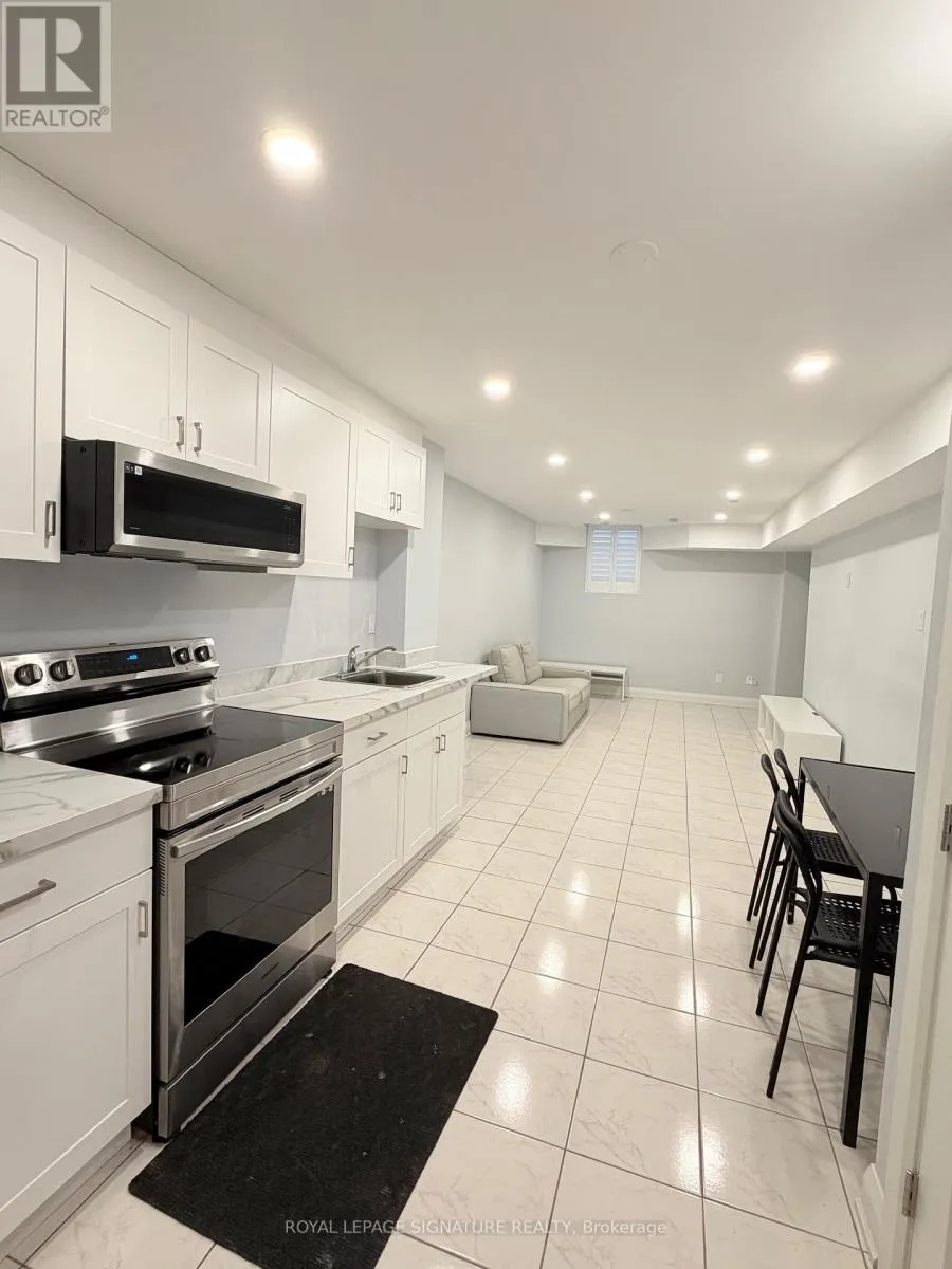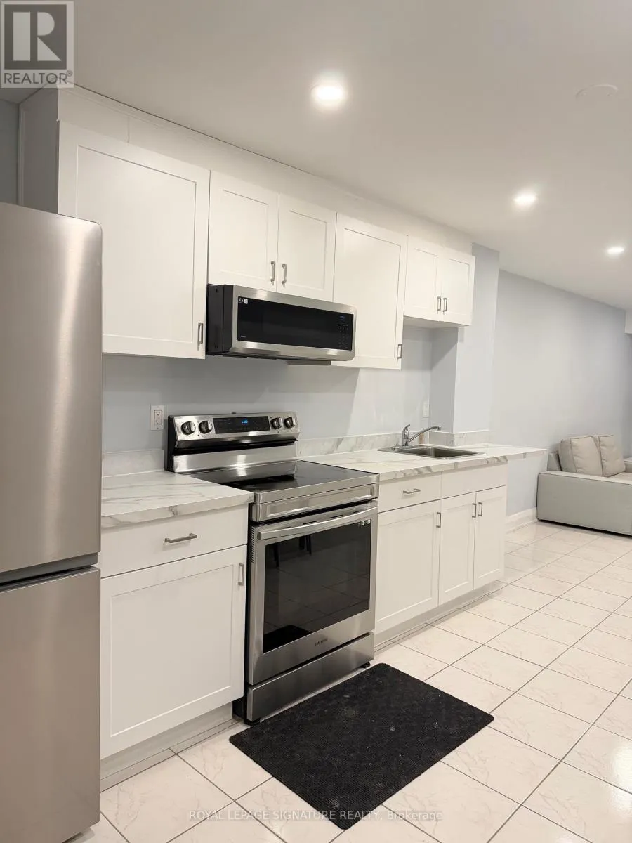 Mavis/ Avonwick Proudly presenting a massive 2-bedroom basement lease with its own private separate entrance-perfect for independent living without sharing a single inch of space! This exceptionally spacious 2-bedroom basement suite feels more like a full home than a typical lower level. You'll love the huge eat-in kitchen with ample room for a large dining table, perfect for meals and entertaining. The oversized living room is bright and inviting, offering plenty of space to relax, unwind, or host friends. Both bedrooms are generously sized with large windows and great closet space. Enjoy exclusive ensuite laundry (no sharing!), a modern 3-piece bathroom, and your own dedicated 2 parking spots. Tenants cover just 25% of utilities-keeping costs low while enjoying all this space. Located in a quiet, family-friendly neighborhood with top schools, parks, shopping, and just minutes from major highways-this is basement living redefined in one of the most desirable areas. Don't miss this rare find: a true 2-bedroom basement lease that lives big, feels private, and offers incredible value. Schedule your viewing today-this one won't last! (id:27476)