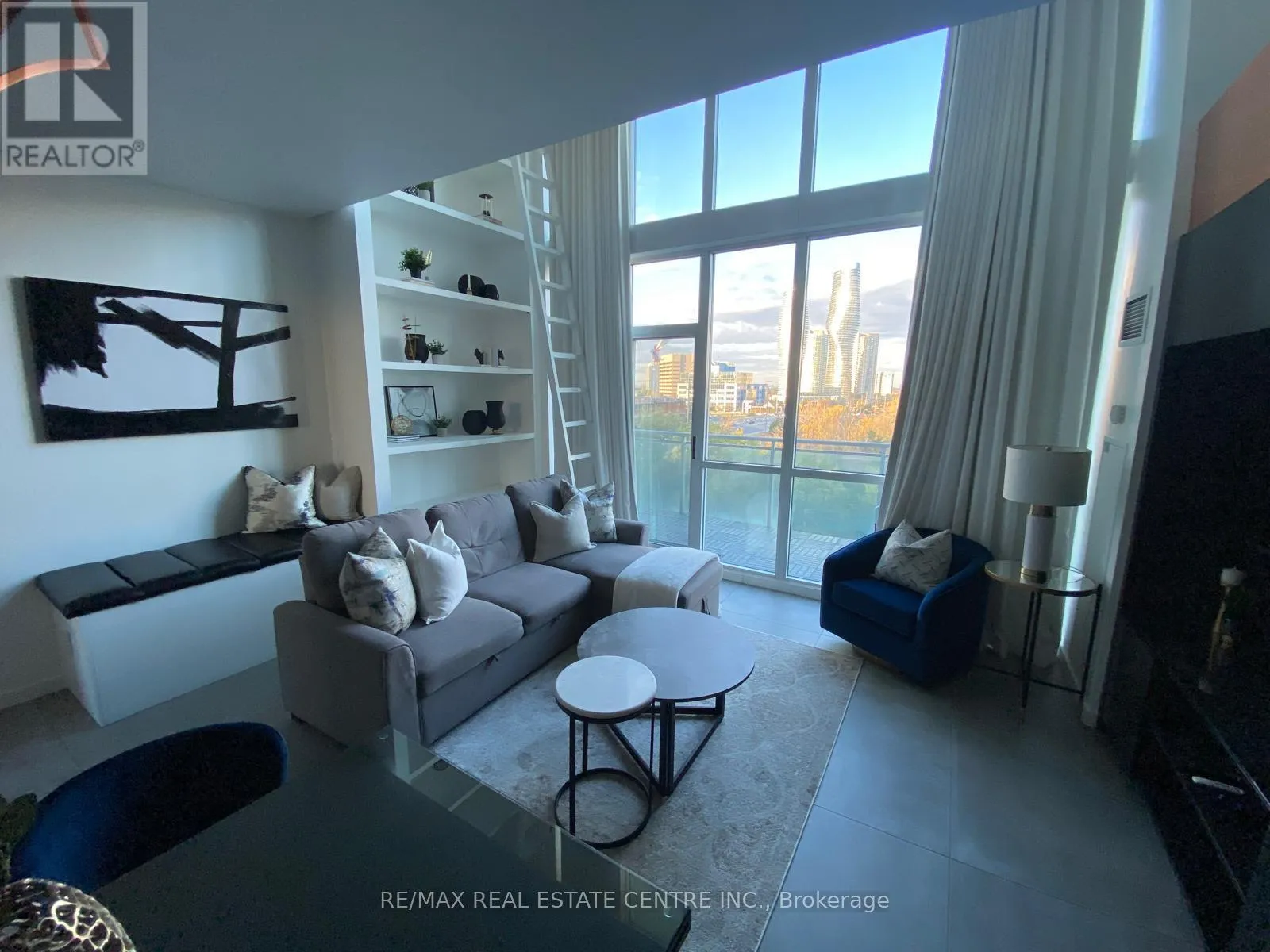 Burnhamthorpe W/Duke of York Fully Furnished Loft With High End Finishes Throughout This 2 Storey Loft In The Heart Of The City Of Mississauga, Close To Shopping Malls, Transportation, Many High End Amenities & Easy Access To Hwys. This Loft Features New Flooring Throughout, New Modern Kitchen W/Appliances, New Bathrooms, Custom Built Floor to Ceiling Library, Motorized Curtain With Remote, Custom Built Open Concept Closet & Much Much More! (id:27476)