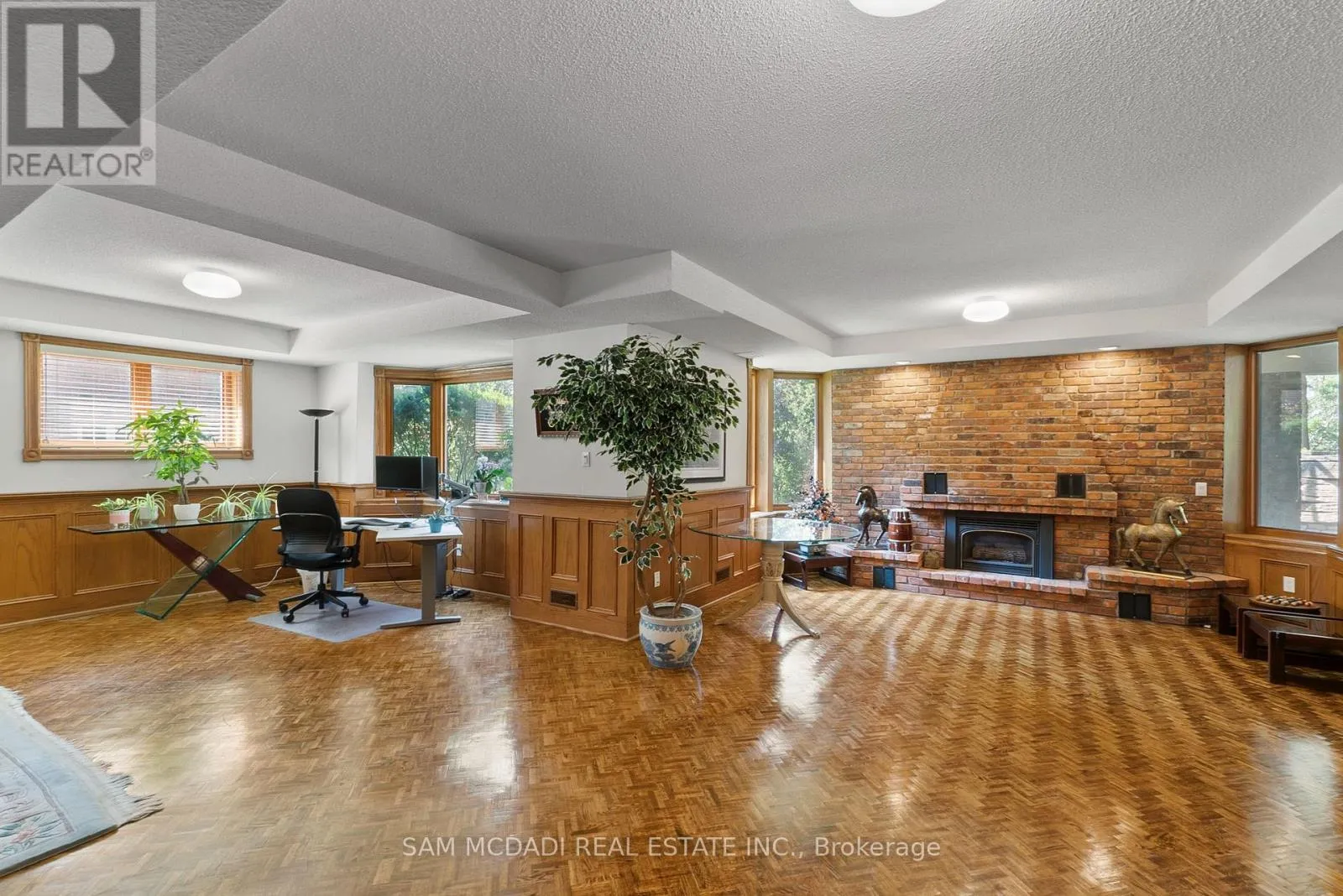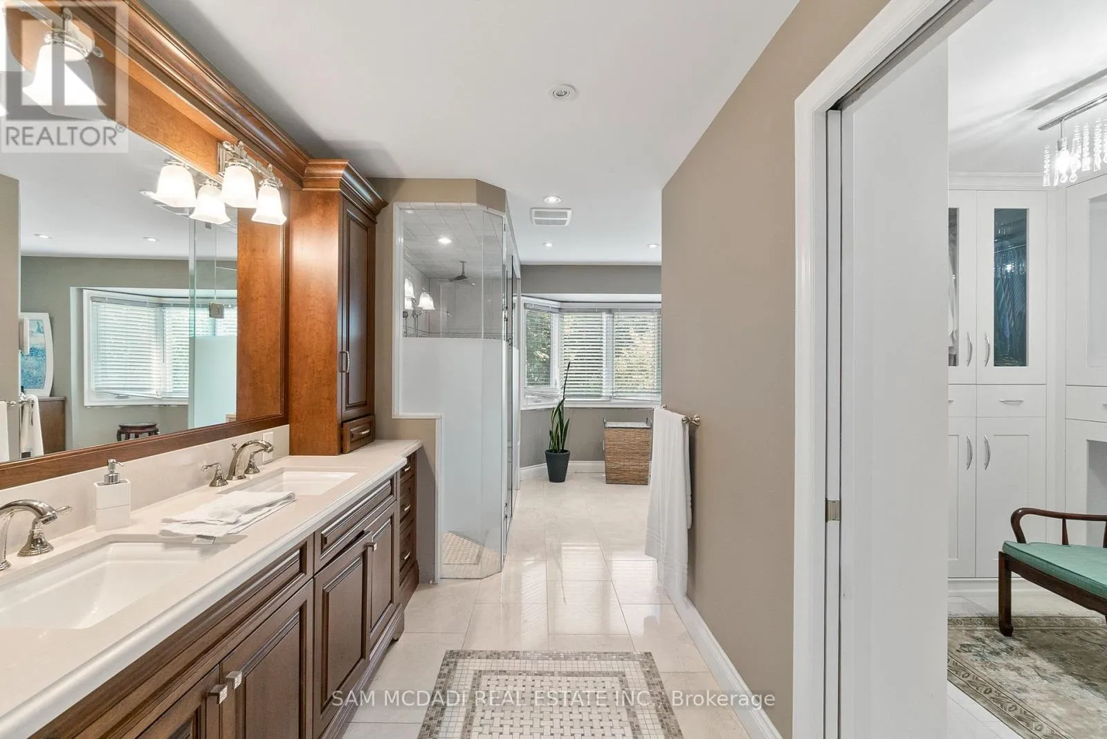 Cross Streets: Mississauga Road & Shawanaga Trail. ** Directions: If heading south on Mississauga Rd, turn left on Shawanaga Tr. If heading north on Mississauga Rd, turn right onto Shawanaga Tr. Presenting this custom built estate, set behind a gated private, tree-lined 100 x 250 ft lot, offering over 8,000 square feet of elegant, thoughtfully designed living space across three expansive levels. Crafted for discerning buyers who value space, privacy, and timeless design, this grand estate greets you with a soaring double-height foyer and sweeping staircase, setting the tone for the refined interiors beyond. Designed to impress, the main level features formal living and dining rooms, an appointed home office, a sun-filled family room with a stone surround fireplace. A chef's kitchen anchors the heart of the home, complete with granite counters, panelled appliances, and a large central island, seamlessly flowing into the breakfast area with tranquil garden views. With five spacious bedrooms and eight bathrooms, the home offers exceptional flexibility for growing families or multi-generational living. The main-floor guest suite provides privacy for in-laws or long-term guests, while upstairs, each bedroom includes its own ensuite. The luxurious primary retreat features a spa-inspired ensuite and walk-in closet, your private haven at day's end. The fully finished walk-out lower level is an entertainer's dream, featuring a second full kitchen, full bar, custom wine cellar, home gym, sauna, and expansive recreational spaces with multiple lounge zones and a fireplace. Whether you're hosting large-scale gatherings, accommodating extended family, or seeking rental income potential, this level is designed to elevate your lifestyle. Outdoors, mature trees surround the professionally landscaped yard, complete with stone patios, manicured gardens, and ample space for a future pool or outdoor oasis. Set within the exclusive Sheridan enclave, known for its proximity to top-rated schools, golf clubs, lakefront parks, and just minutes from the QEW. This is more than a home; it's an investment value in one of Mississauga's most desirable communities. (id:27476)