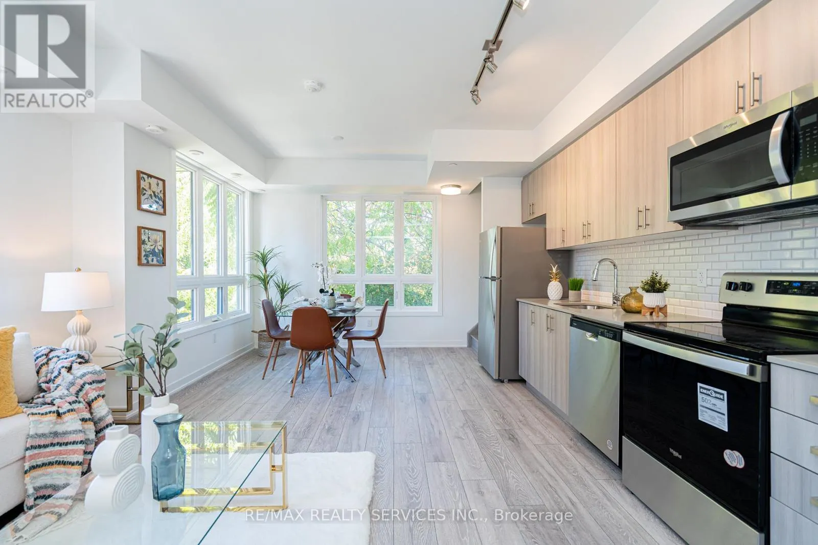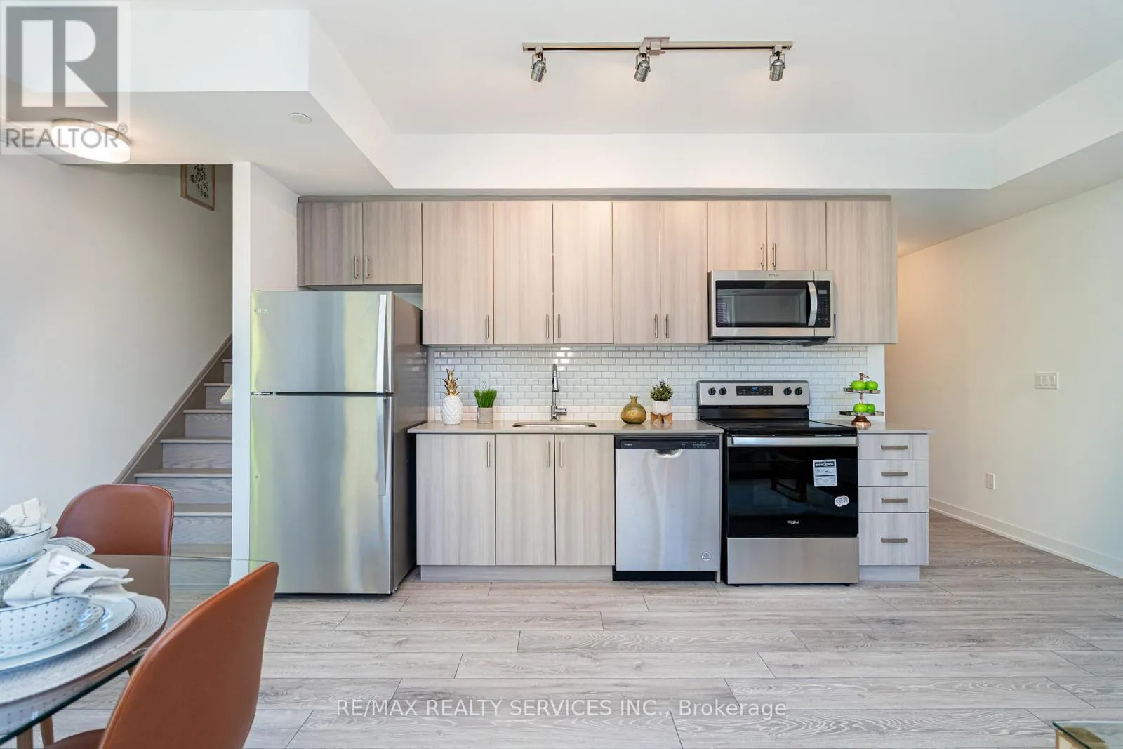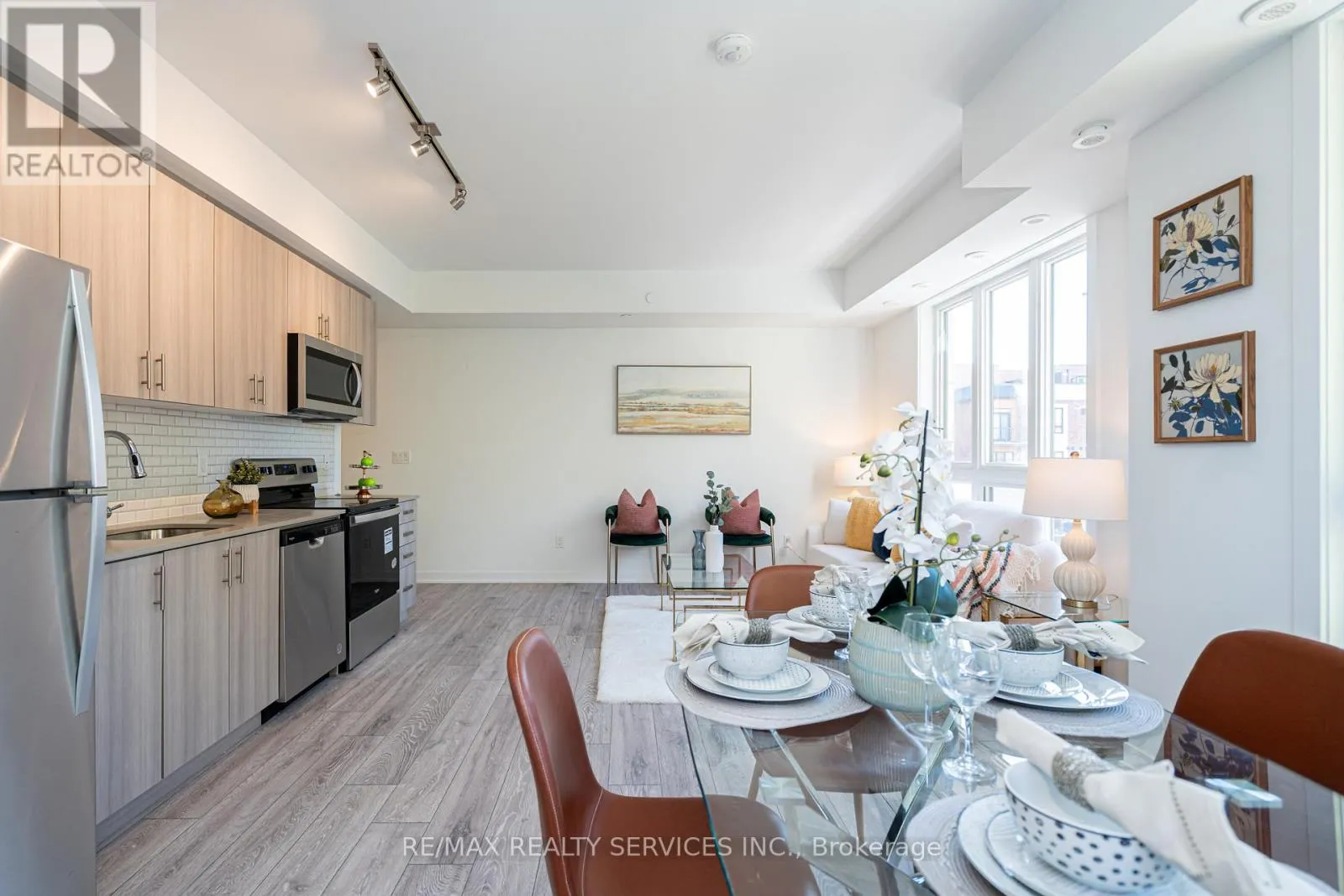Cross Streets: Dixie and Burnhamthorpe. ** Directions: Burnhamthorpe and Dixie. Amazing opportunity for a first-time home buyer or savvy investor! This never lived in END UNIT 2-bedroom, 3-bathroom stacked townhouse offers the perfect combination of style, function, and location in one of Mississauga's most sought-after communities. Featuring a bright open-concept layout, this modern home is filled with natural light from large windows and showcases high-end contemporary finishes throughout. The spacious living and dining area flows seamlessly into a designer kitchen complete with stainless steel appliances, quartz countertops, and ample cabinet space ideal for both entertaining and everyday living. A convenient 2-piece powder room completes the main level. Upstairs, the generous primary bedroom includes a walk-in closet and a sleek 3-piece ensuite bathroom. The second bedroom is also well-sized and located steps from a full 4-piece bath, making it perfect for guests, family members, or a home office. One of the standout features of this home is the private rooftop terrace perfect spot to relax, entertain, or enjoy your morning coffee in peace. Additional highlights include in-unit laundry, modern energy-efficient construction, low maintenance fees, and one dedicated parking space (if applicable). Located just minutes from shopping, dining, parks, schools, public transit, and major highways including 401, 403, and 407, this home offers exceptional convenience for commuters and lifestyle seekers alike. Whether you're a first-time buyer or looking to invest in a high-demand area, this move-in-ready home is a rare opportunity you wont want to miss! (id:27476)