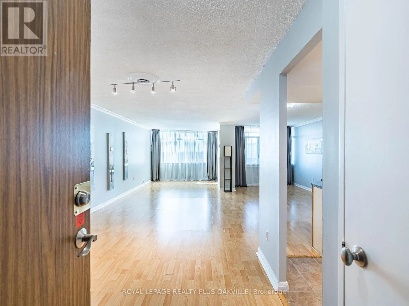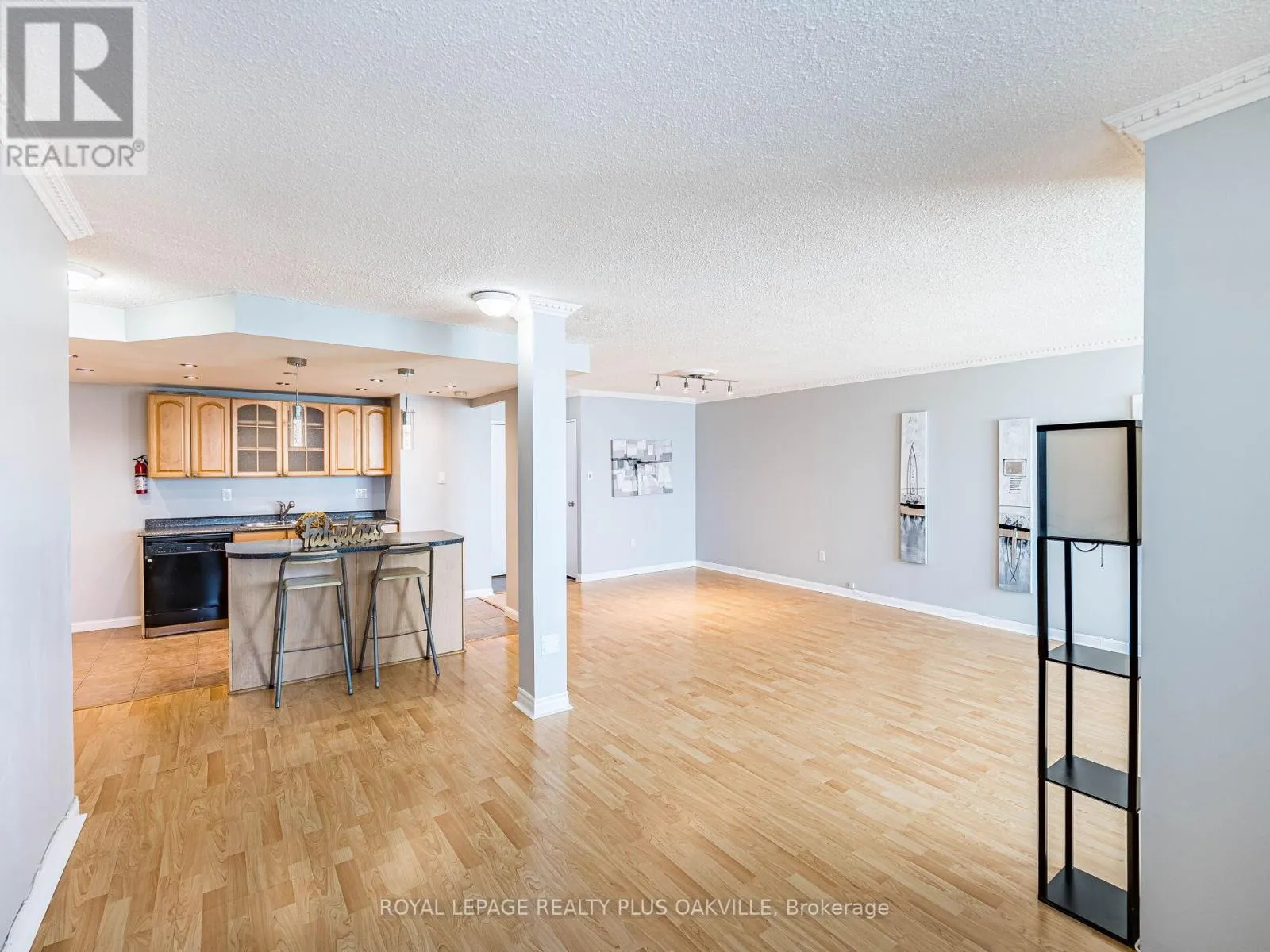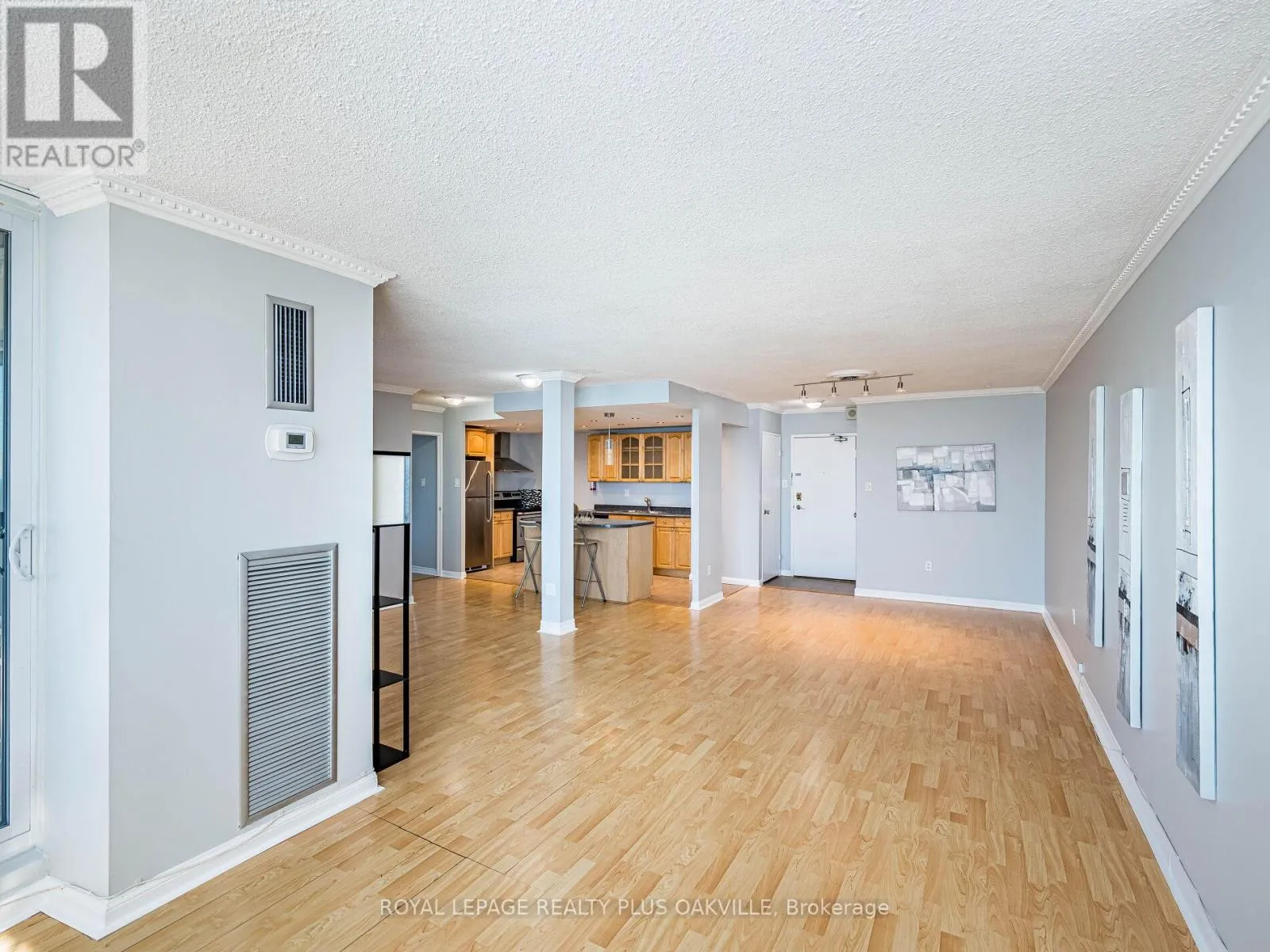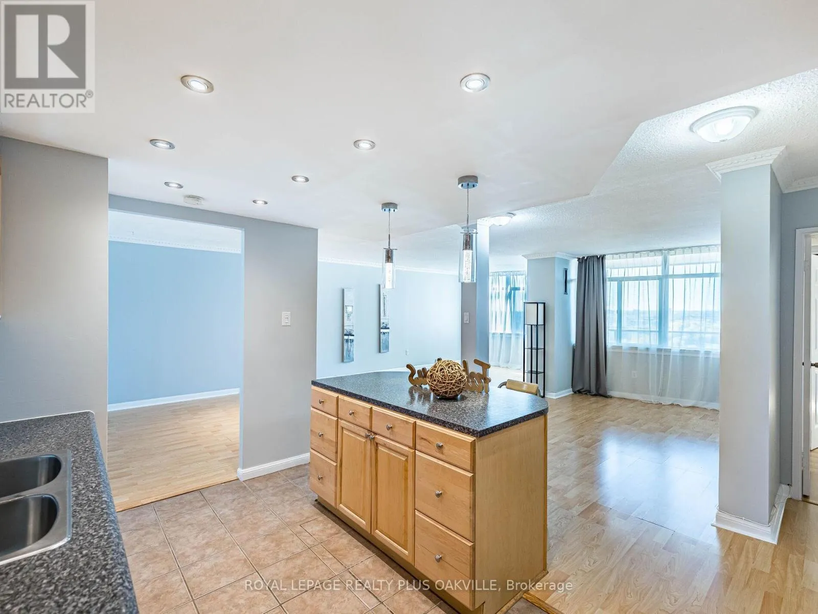 Hurontario/Dundas Welcome to this bright and spacious condo nestle on beautifully landscaped parkland with abundant green space and walking paths along the river. This condo features an open concept layout with a living and dining area that walks out to an open balcony offering panoramic city views. The kitchen boasts ample cabinet space, pot lights, an island and ceramic floor. Large master bedroom with walk-in closet and laminate floor. Freshly painted throughout. Ensuite laundry, locker and 2 parking spots. Newer windows and balcony doors (2024/25). Heating and cooling installed in 2021, thermostat (2021), bird netting (2021), main bath fan motor (2021). New bath tub drainer and over flow (2022), p-trap and strainer in kitchen (2022), A/C vertical fan coil (2023). Close to Square One shopping, schools, parks, public transit, highways QEW, 403 and 407 and Cooksville GO Station. (id:27476)