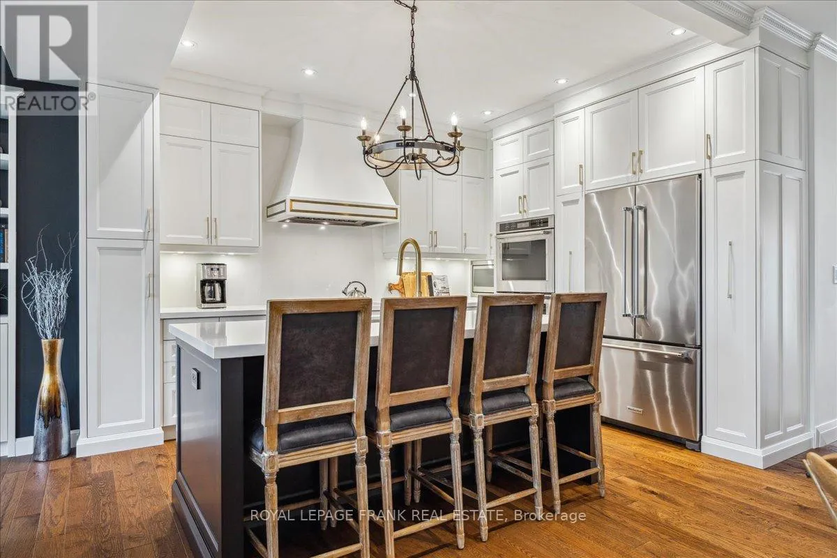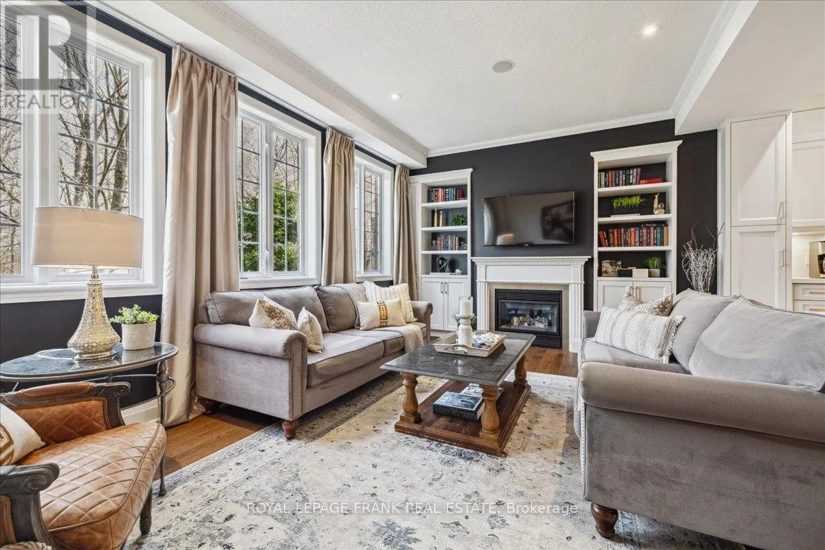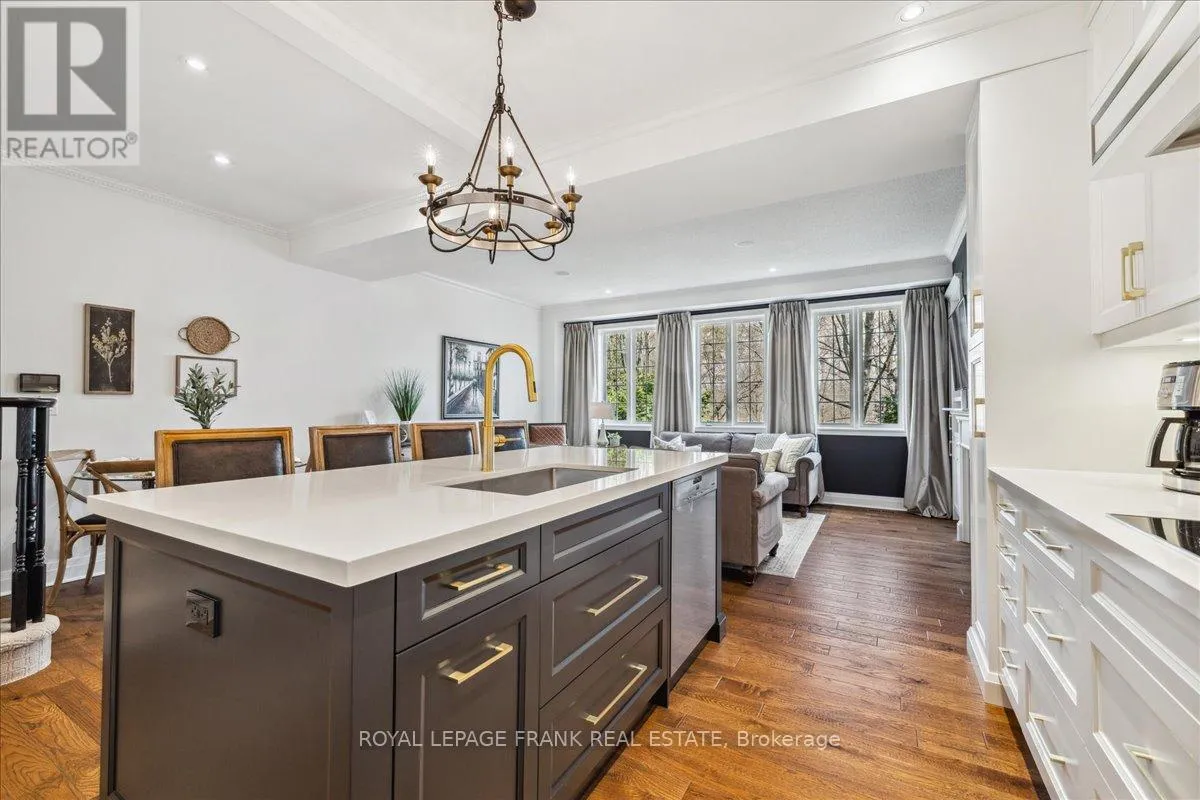 Cross Streets: Dundas and Erin Mills Pkwy. ** Directions: Erin Mills Pkwy, west on Dundas and south on Fifth Line. This is TRULY the one you've been waiting for! With almost 2100sq. ft of luxury living space offering picturesque views from every level of the stunning ravine.This home features 3 bds, 2.5 bths, and a gorgeous walkout basement. Amazing open concept reno'd main floor is warmed by a sophisticated gas fp flanked by custom cabinetry and a breathtaking chef's kitchen.This floor boasts luxurious 4 1/2 " hand scraped warm hdwd floors, 6" baseboards, crown mldg, LED pot lights and 9' ceilings.Exquisite custom designed and meticulously crafted kitchen features the finest finishes. High end quartz countertops and backsplash, soft close maple cabinetry, an abundance of full extension drawers, unique custom undermount lighting and vent hood, soft gold gooseneck pullout faucet and hardware and high end s/s appliances. The island offers seating for 4 with ample room to serve appetizers and cocktails.Upstairs enjoy your spacious primary retreat offering a large w/i closet and updated 4-pce ensuite w/ custom vanity. Two add'l bdrms share an updated 3-pce main bath, featuring a new custom crafted vanity. A super convenient laundry rm with new sink and newer washer and dryer completes the upper level.The lower level with walkout boasts a spacious recreation room, stone feature wall, new modern durable vinyl plank flooring, new 6" baseboards and 9' glass sliding doors that lead you onto a large patio ideal for entertaining, quiet conversation or relaxation. The peaceful ravine captivates your eyes with 4 seasons of splendour.Enjoy easy access to highways, an abundance of shopping and restaurants, parks and just a 6 minute drive to the Clarkson GO. This executive townhome located in an exclusive enclave of only 15 unique homes is ideal for a professional couple or downsizers desiring a beautiful home for entertaining still and the peace of mind of living in an extremely well managed complex with no outside maintenance to worry about. Just lock up and travel! (id:27476)