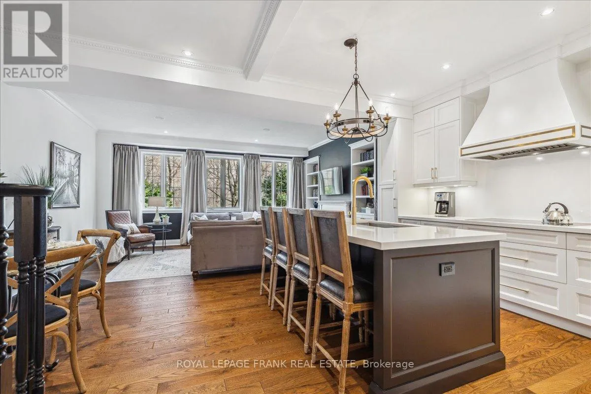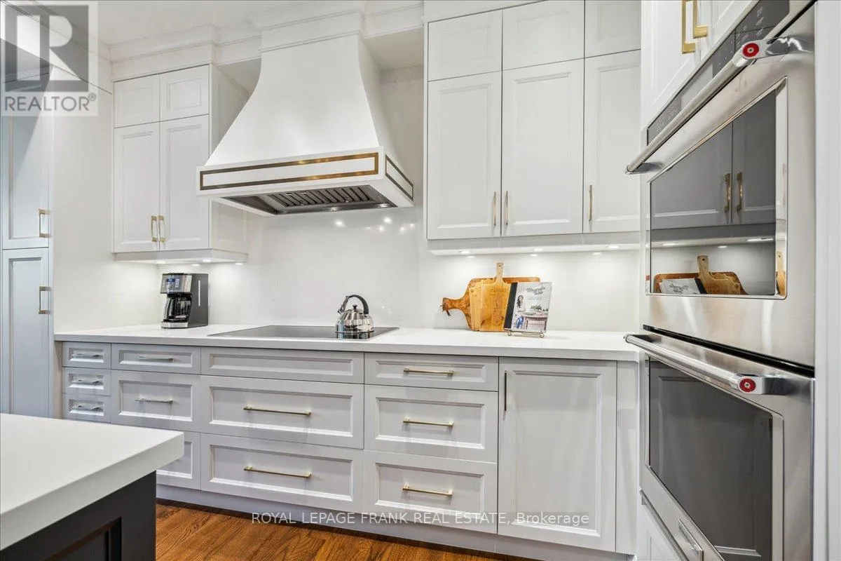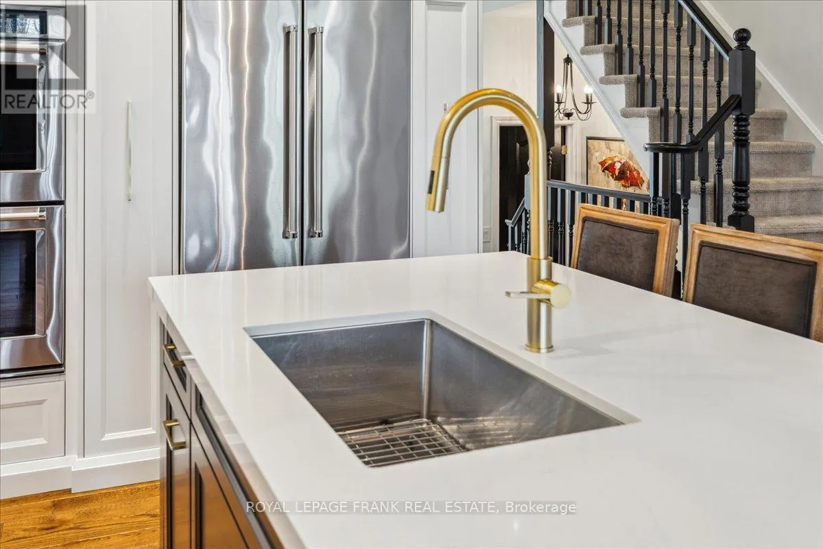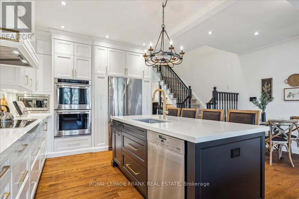 Cross Streets: Dundas and Erin Mills Pkwy. ** Directions: Erin Mills Pkwy, west on Dundas and south on Fifth Line. This is TRULY the one you've been waiting for! With almost 2100sq. ft of luxury living space offering picturesque views from every level of the stunning ravine.This home features 3 bds, 2.5 bths, and a gorgeous walkout basement. Amazing open concept reno'd main floor is warmed by a sophisticated gas fp flanked by custom cabinetry and a breathtaking chef's kitchen.This floor boasts luxurious 4 1/2 " hand scraped warm hdwd floors, 6" baseboards, crown mldg, LED pot lights and 9' ceilings.Exquisite custom designed and meticulously crafted kitchen features the finest finishes. High end quartz countertops and backsplash, soft close maple cabinetry, an abundance of full extension drawers, unique custom undermount lighting and vent hood, soft gold gooseneck pullout faucet and hardware and high end s/s appliances. The island offers seating for 4 with ample room to serve appetizers and cocktails.Upstairs enjoy your spacious primary retreat offering a large w/i closet and updated 4-pce ensuite w/ custom vanity. Two add'l bdrms share an updated 3-pce main bath, featuring a new custom crafted vanity. A super convenient laundry rm with new sink and newer washer and dryer completes the upper level.The lower level with walkout boasts a spacious recreation room, stone feature wall, new modern durable vinyl plank flooring, new 6" baseboards and 9' glass sliding doors that lead you onto a large patio ideal for entertaining, quiet conversation or relaxation. The peaceful ravine captivates your eyes with 4 seasons of splendour.Enjoy easy access to highways, an abundance of shopping and restaurants, parks and just a 6 minute drive to the Clarkson GO. This executive townhome located in an exclusive enclave of only 15 unique homes is ideal for a professional couple or downsizers desiring a beautiful home for entertaining still and the peace of mind of living in an extremely well managed complex with no outside maintenance to worry about. Just lock up and travel! (id:27476)