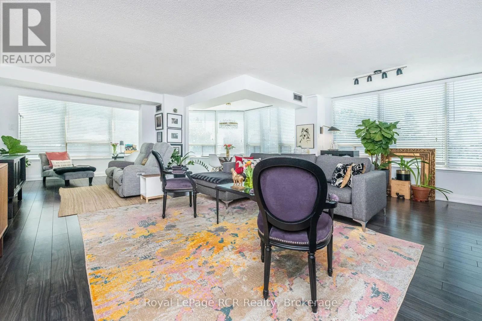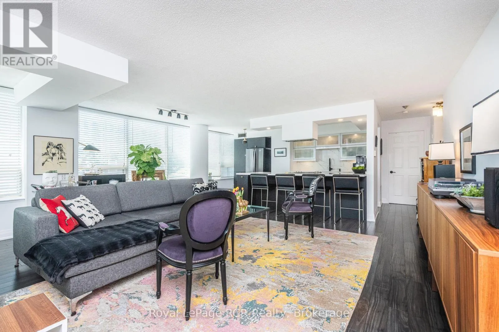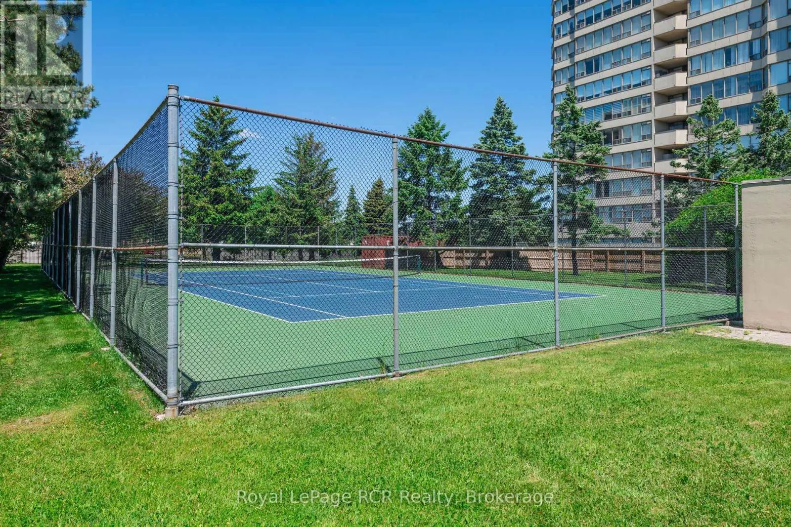 Cross Streets: Eglinton & Mavis. ** Directions: Eglington and Mavis. **Included in condo fees heat, hydro, water & cable**. This sprawling sun filled condo is on the southwest corner of the building, wrapped in windows. This 1400 square foot beauty boasts 2 bedrooms and 2 full bathrooms, and is in very well managed building. Inclusions: 2 parking spaces, storage locker, 24/7 concierge service. Updates: Open concept kitchen (18), heating and A/C (24), modern lighting, all appliances. Building amenities: Pool change rooms/saunas (renovated 21), gym, racquet ball/basketball, squash/ping pong, a party room and guest suite for a rental fee. Barbeques, patio, gazebo, tennis court/pickleball, dog park, extensive visitor parking. (id:27476)