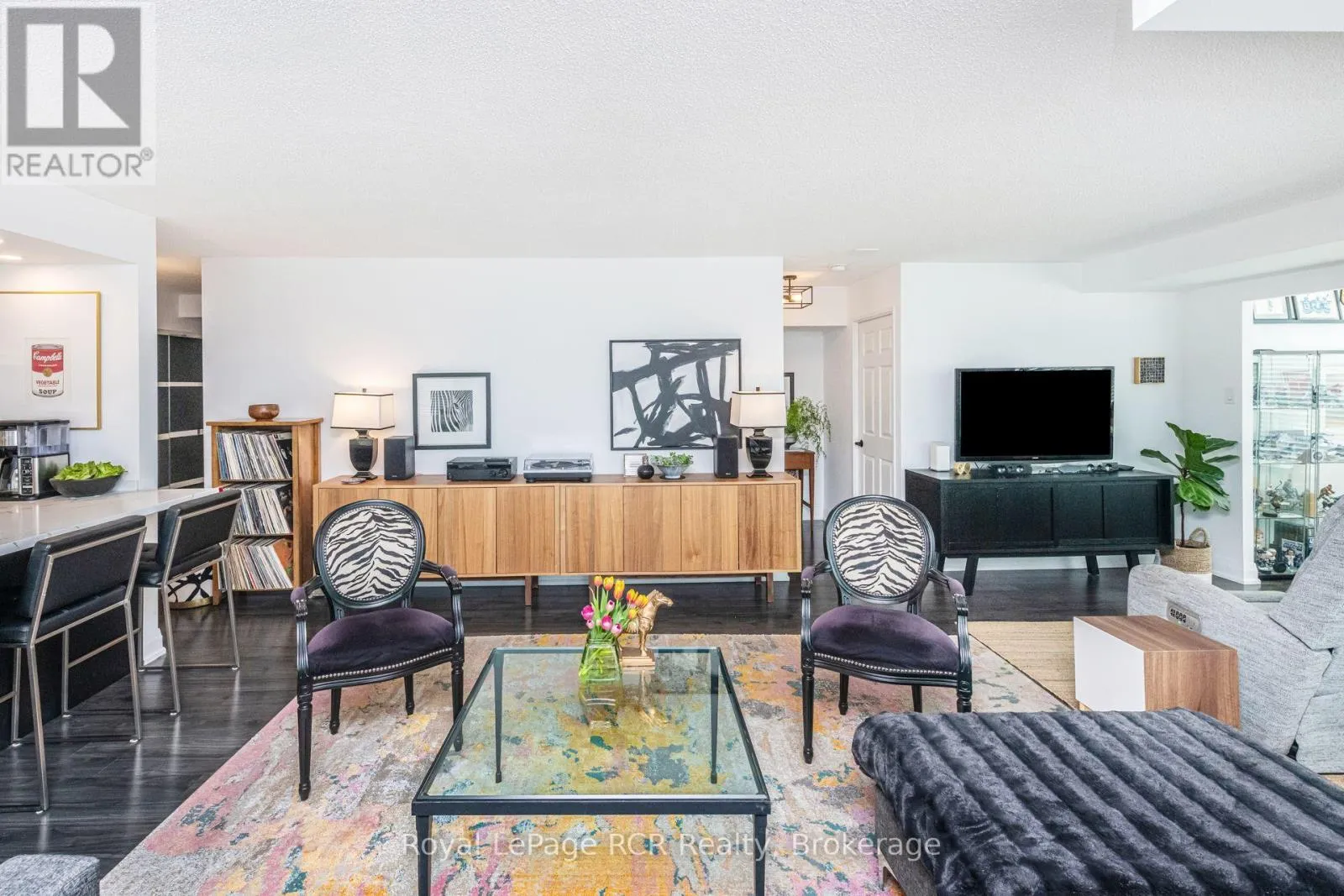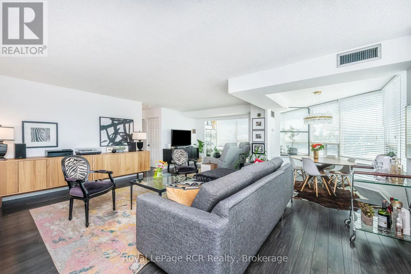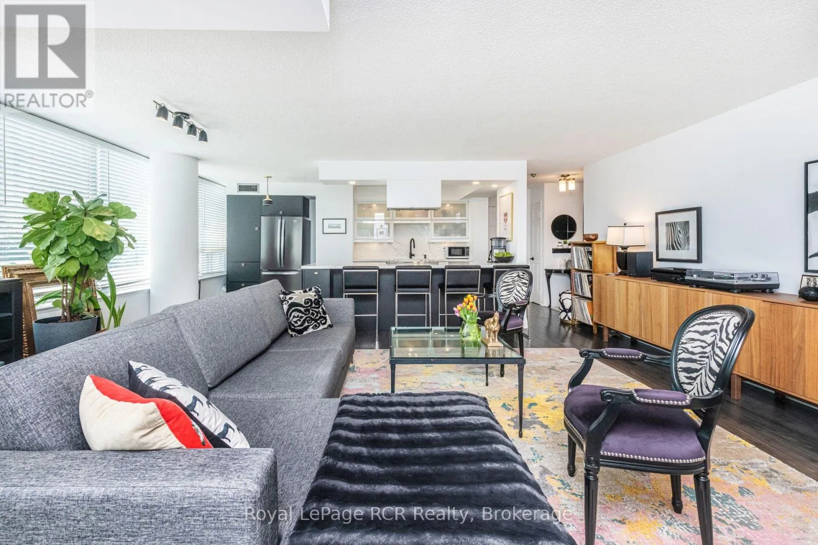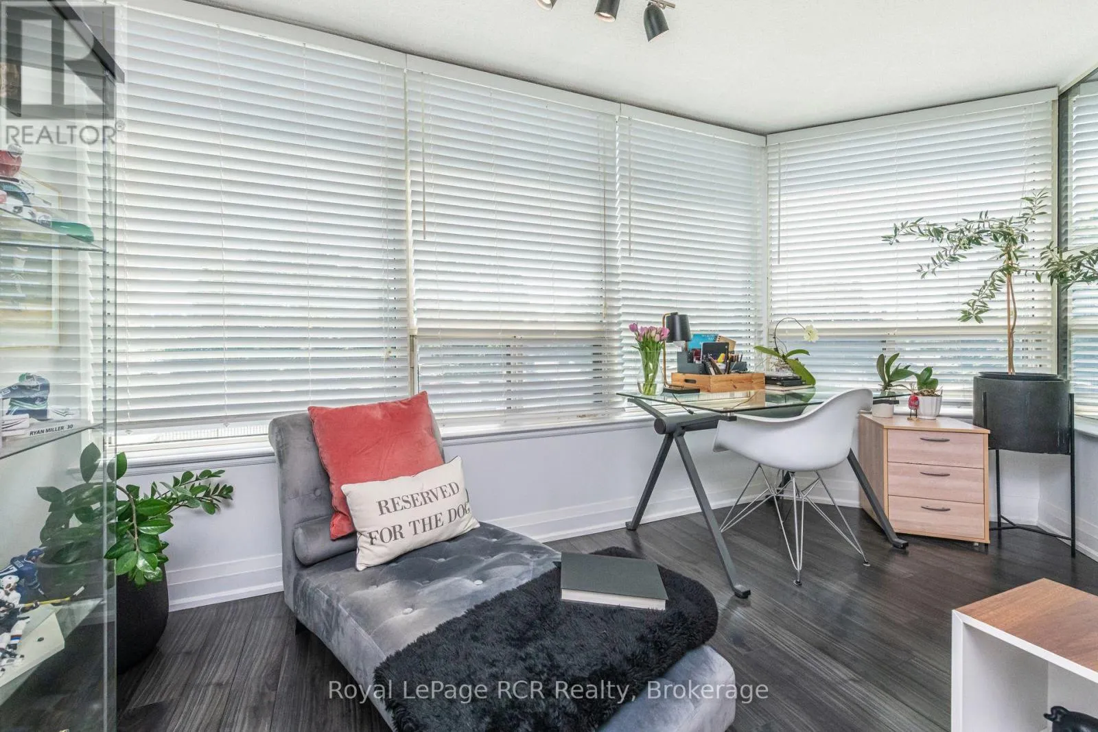 Cross Streets: Eglinton & Mavis. ** Directions: Eglington and Mavis. **Included in condo fees heat, hydro, water & cable**. This sprawling sun filled condo is on the southwest corner of the building, wrapped in windows. This 1400 square foot beauty boasts 2 bedrooms and 2 full bathrooms, and is in very well managed building. Inclusions: 2 parking spaces, storage locker, 24/7 concierge service. Updates: Open concept kitchen (18), heating and A/C (24), modern lighting, all appliances. Building amenities: Pool change rooms/saunas (renovated 21), gym, racquet ball/basketball, squash/ping pong, a party room and guest suite for a rental fee. Barbeques, patio, gazebo, tennis court/pickleball, dog park, extensive visitor parking. (id:27476)
