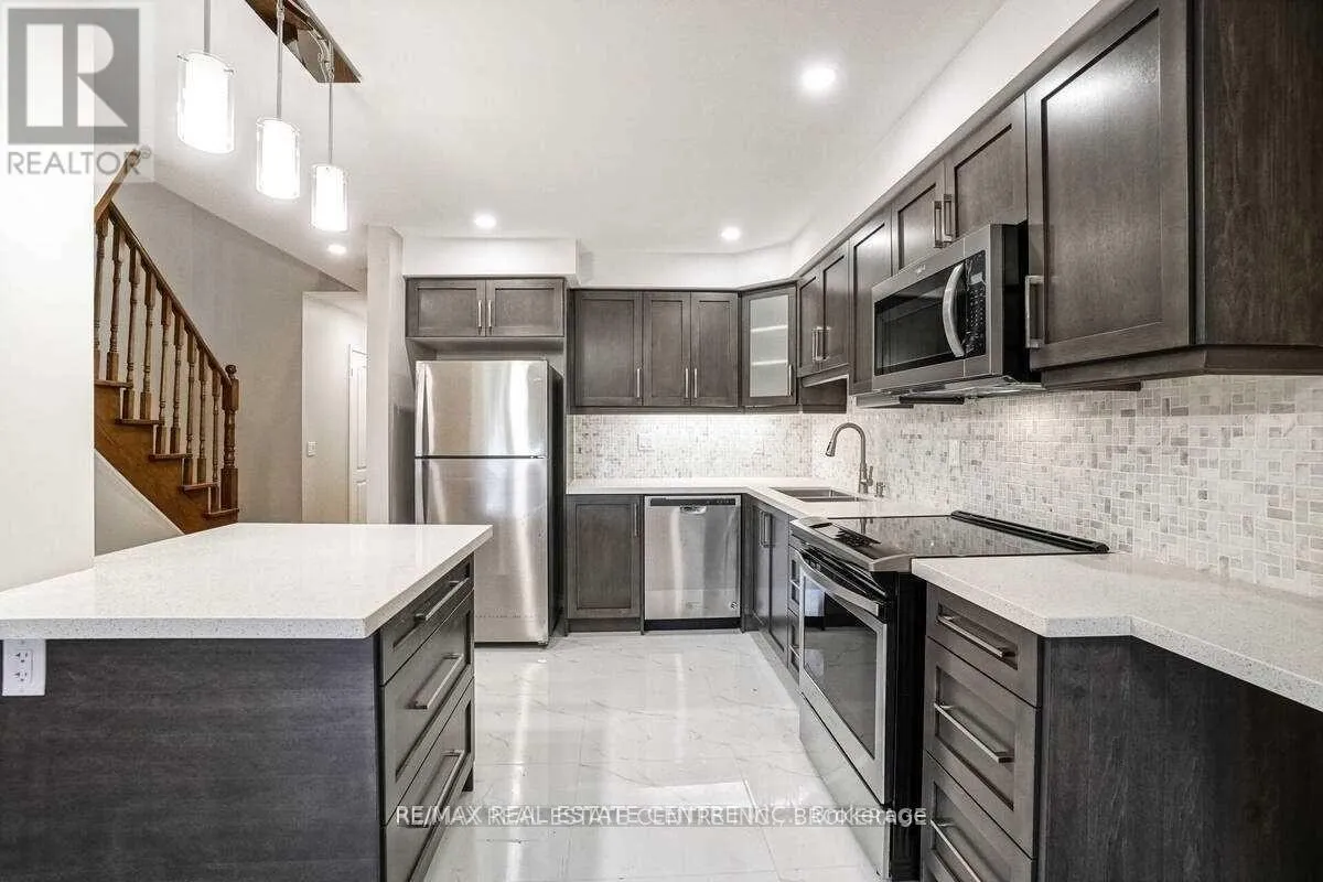 Mavis / Eglinton Fully renovated townhouse for lease in sought-after Central Mississauga, backing onto a serene parkette! This bright, carpet-free home boasts brand new floors, oak stairs, modern light fixtures, updated kitchen with extended cabinetry, stainless steel appliances, and upgraded washrooms. The open-concept living and dining area features a walk-out to a private patio, perfect for relaxing or entertaining. Upstairs offers 3 spacious bedrooms, including a primary suite with his & her closets and a 3-piece ensuite. With 2.5 bathrooms in total, there's plenty of comfort for the whole family. The finished basement adds valuable living space, ideal for a home office, recreation, or entertainment. Conveniently located close to Square One, schools, parks, transit, and major highways. A perfect combination of style, comfort, and convenience! Close To Square One Mall, Heartland Town Centre, All Amenities Steps To Bus Stops, Walking Distance To Schools, Close To Shopping Areas & Minutes To Hwy 401 & 403. (id:27476)