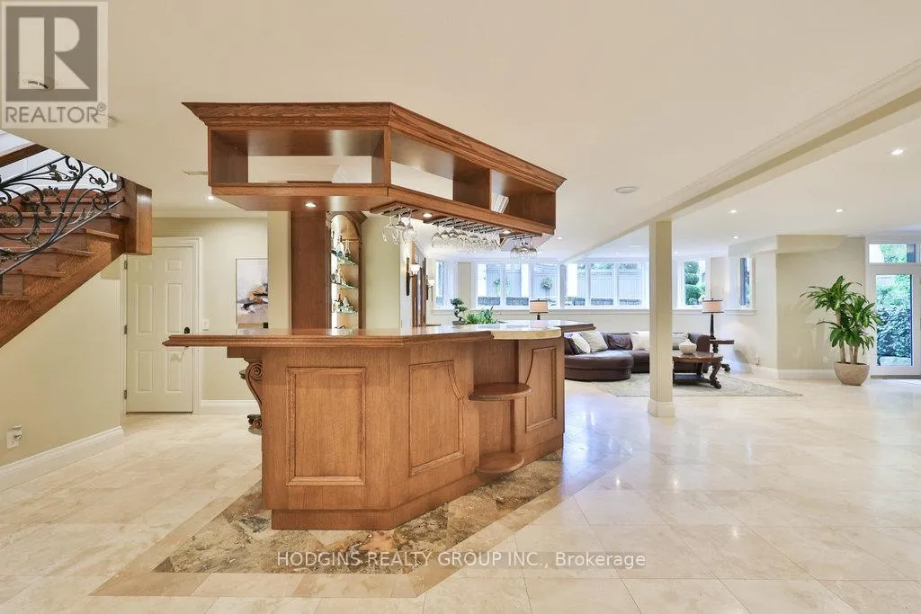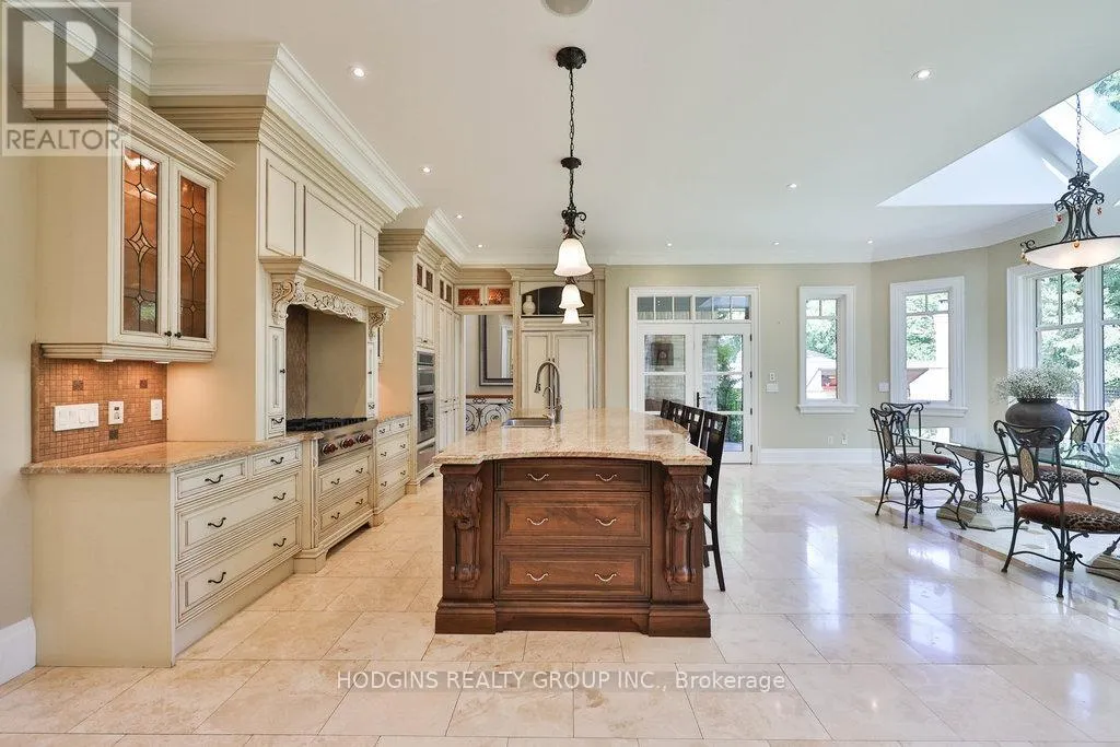 Cross Streets: Harborn Road & Premium Way. ** Directions: Take QEW/Queen Elizabeth Wy Use the 2nd from the right lane to take exit 132 for Hurontario Street. Continue on Harborn Rd. Drive to Harborn Trail. Builders own showcase bungalow on breathtaking 110ft lot in prestigious Gordon Woods. Over 6200sf of finely crafted living space featuring soaring barrel-vaulted ceilings, heated travertine floors, and exquisite walnut + white oak millwork throughout. Stunning chefs kitchen open to inspiring eating area & magazine worthy Great rm+ w/o to resort style covered outdoor lounge w/fireplace, bar & built-in BBQ. Elegant formal Dining Rm, richly panelled Office, and lux Primary retreat w/fireplace & spa-inspired ensuite w/steam shower + jacuzzi. Lower level entertainers haven incl theatre, wine cellar+wet bar, gym, Rec Rm & dream Inlaw suite each w/walkout. Stately curb appeal w/natural stone + reclaimed brick, copper roof accents & interlock drive for 10+. Gorgeous professionally landscaped grounds w/fountain, gardens & irrigation. Truly a one-of-a-kind legacy home blending timeless architecture & modern luxury. (id:27476)