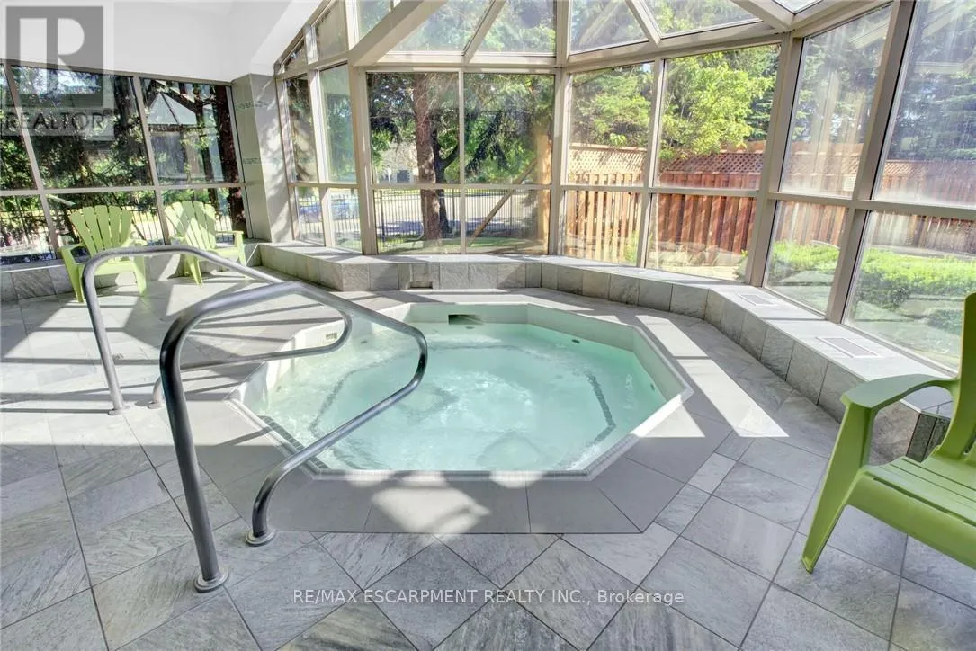Cross Streets: Hurontario / Dundas. ** Directions: -. Welcome to this beautifully updated and spacious 1-bedroom suite in the heart of Cooksville! Perfectly situated just steps to the GO Station, public transit, shopping, schools, and highways, this bright unit combines comfort and convenience in one of Mississauga's most desirable locations. Featuring an open-concept living and dining area with hardwood floors throughout, a renovated kitchen with quartz countertops, upgraded plumbing, and an updated bathroom with new shower stall, bathtub, handheld shower, and grab bar. Enjoy in-suite laundry, 1 underground parking space, a storage locker, and ample visitor parking. This well-managed building offers resort-style amenities including an indoor pool and hot tub, gym, party room, and 24-hour security with gatehouse access. Recently renovated common areas showcase a stunning lobby and modern hallways. All utilities, high-speed internet, cable, and premium amenities are included in the condo fee - a true turn-key lifestyle in a prime central location! (id:27476)