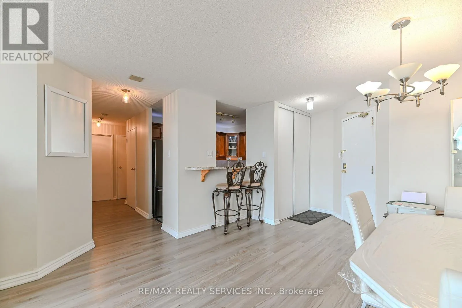Hurontario & Bristol Enjoy the best of urban living in this beautifully renovated corner unit in the heart of Mississauga, featuring 2 spacious bedrooms and 2 modern bathrooms, Great size living room and dining area in an open concept design ideal for entertaining and everyday living. Floor-to-ceiling windows provide a stunning, unobstructed south-east panoramic view, bathing the home in natural light. Freshly painted main living area for a bright and inviting atmosphere Updated kitchen with elegant granite countertops and stainless steel appliances Newer laminate flooring throughout for a contemporary feel Renovated main bathroom and a luxurious 4-piece ensuite in the primary bedroom Exceptional Building Amenities: Indoor pool for year-round relaxation Exercise room to support an active lifestyle And more additional amenities to enhance your living experience. Great location close to Saigon Park enjoy a one km trail, outdoor exercise equipment, public art, all major amenities shopping, dining, and entertainment options Convenient access to schools a wide variety of public, Catholic, and private schools nearby Worship options within easy reach Close to GO Train easy commuting for work or leisure. This unit is perfect for those seeking spacious, open-concept living, breathtaking views, and a lifestyle of convenience and comfort. (id:27476)