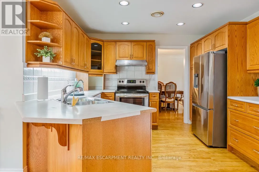 HURONTARIO AND HARBORN RD RL Zoned Ravine Estate lot in Prestigious Gordon Woods! Nestled in the heart of exclusive Gordon Woods, this timeless red brick residence sits on a spacious, tree-lined estate lot offering privacy backing onto a ravine, and convenience. Located just minutes from the new Trillium Hospital, Hurontario, and the QEW, this home provides seamless access while maintaining a peaceful, country-like setting beneath a mature tree canopy. This property benefits from special RL zoning, which allows for detached or semi-detached dwellings as well as an accessory unit, offering excellent potential for future development or multi-generational living. Currently, the home was renovated in 2000, now features a main floor primary suite overlooking the lush ravine backyard-a serene retreat with breathtaking views. The freshly painted interior is move-in ready and filled with natural light. The combined living and dining room features a wood-burning fireplace and bay window framing the front gardens. The spacious kitchen offers ample cabinetry, an inviting eat-in area, and large patio doors that open to a beautifully landscaped, private backyard-perfect for entertaining or relaxing. A main-floor family room with a bay window provides a cozy gathering space, while an additional bedroom or office adds flexibility. Upstairs, two generous bedrooms -one with an ensuite-and another renovated 5-piece bath enhances comfort and style. The lower level has been thoughtfully renovated into a self-contained suite with a full kitchen, walk-up access to the backyard, and a private entry from the garage-ideal for extended family, guests, or income potential. A rare opportunity to own a move-in-ready home in one of Mississauga's most coveted neighborhoods, blending natural beauty, refined living, and exceptional convenience. (id:27476)