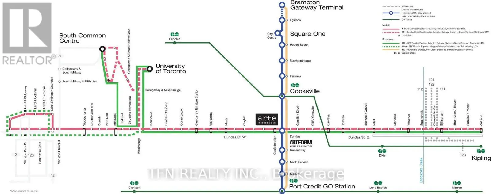 Cross Streets: HURONTARIO ST & DUNDAS ST W. ** Directions: NORTH OF DUNDAS ST W & WEST OF HURONTARIO ST. Welcome to ARTE Condos by Emblem Developments! Be the first to live in this brand new 2 Bedroom, 1 Bathroom suite offering 627 sq ft of modern living plus an 81 sq ft open balcony with NE views of downtown Cooksville. Featuring 9' smooth ceilings, wood-plank vinyl flooring and floor-to-ceiling windows that fill the home with natural light. Contemporary Kitchen with Quartz countertops, sleek Cabinetry & brand new Stainless Steel Kitchen Appliances for your cooking enjoyment. Two spacious Bedrooms and a spa-inspired 4-pc bath provide comfort and style. BONUS: Rogers high-speed Internet included for a limited time! Enjoy premium amenities: Fitness Centre, Yoga Studio, Social Lounge, Co-working Space, Roof-top Terrace with BBQs and 24-hr Concierge. Prime Cooksville location - steps to shops, restaurants, parks and transit. Minutes to Square One, UTM, Sheridan College, Trillium Hospital and major Highways (QEW, 403, 401). Future Hurontario LRT at your doorstep, further enhancing connectivity! This brand new suite offers the perfect blend of luxury, convenience and comfort, ideal for working professionals, young families, students and new immigrants - your new home awaits at ARTE Condos! Come live here!! (id:27476)