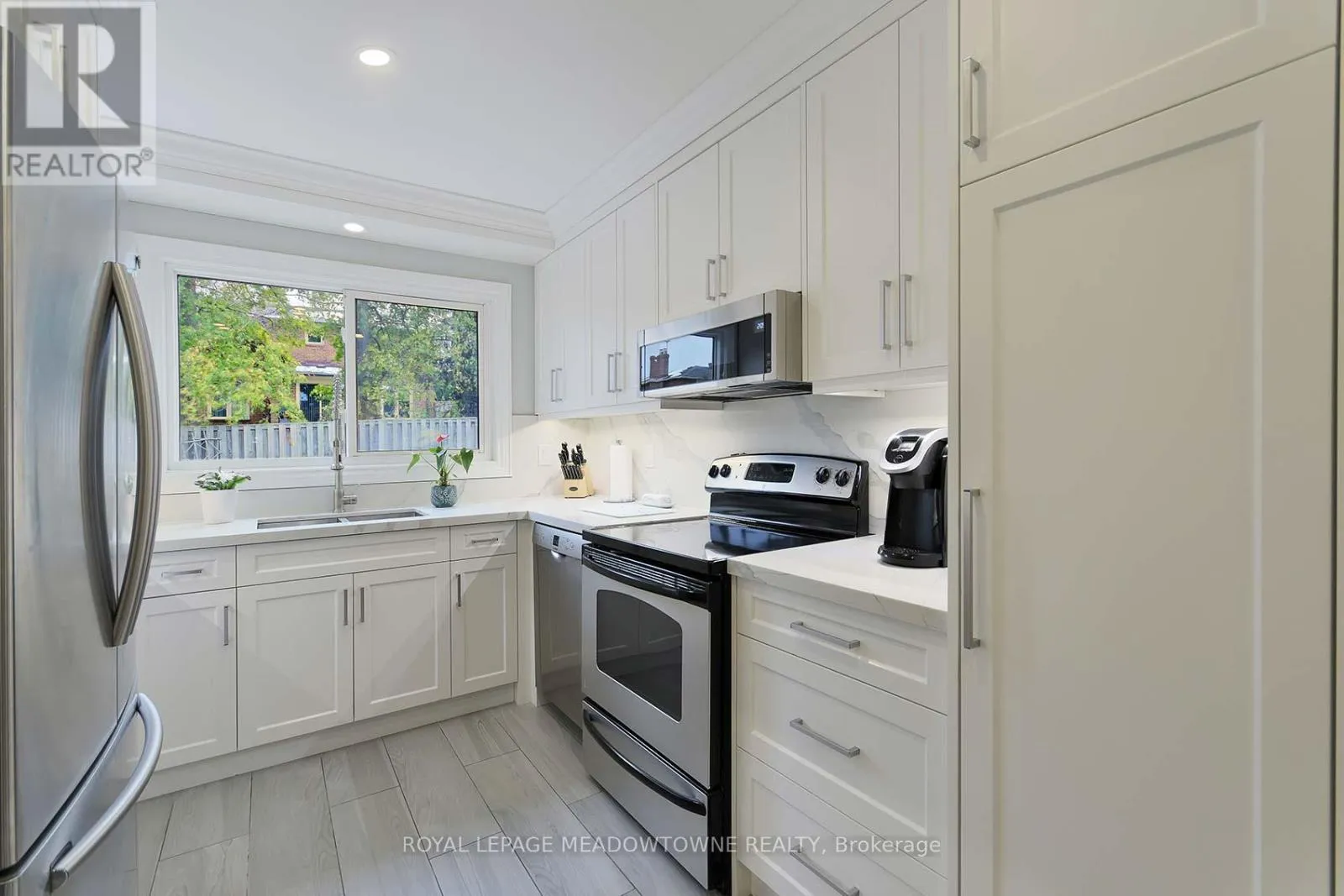 Erin Mills Pkwy & Vista Blvd Nestled on a prime ravine-lined street in the desirable Vista Heights neighborhood this 3+1 bedroom, 4-bathroom family home will delight you! An updated walkway leads to the welcoming front porch. Entering through the front door the main level boasts a beautifully renovated kitchen featuring ceiling-height cabinetry, pots and pan drawers, a pull-out pantry with silent-close hardware, quartz counters and backsplash and the final touch recess & under cabinet lighting! The family room offers a wood-burning fireplace with a walk-out to a 22'X15' new deck, perfect for entertaining in the mature backyard. The main floor also includes a laundry room with a side-door exit perfect for pets. The second floor hosts a spacious primary bedroom with a 3-piece ensuite, a second bedroom with a generous closet, and a third bedroom overlooking the backyard. The lower level is designed for enjoyment, featuring a large, open-concept recreation room and a fourth bedroom with a 3-piece semi-ensuite-ideal for overnight guests, visiting family or working remote. The family home has been nicely maintained , updated and loved by the original owner! Key updates include the roof (2024), deck and concrete walkways (2023), and electrical panel (replaced 2010)and move in ready lower level. The furnace and AC are owned and serviced twice annually. Hot water tank is a rental. Located near major highways, shops, top-rated schools, parks, woods with lit trails, green space, and public transit, this prime location offers excellent convenience and lifestyle opportunities. Streetsville is a wonderful community to call home. (id:27476)