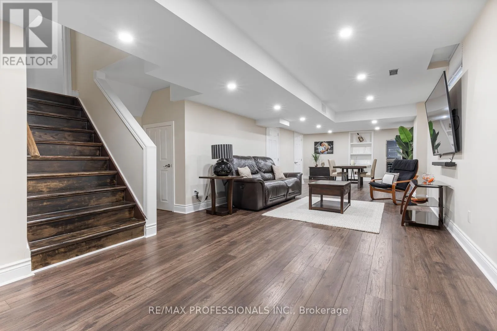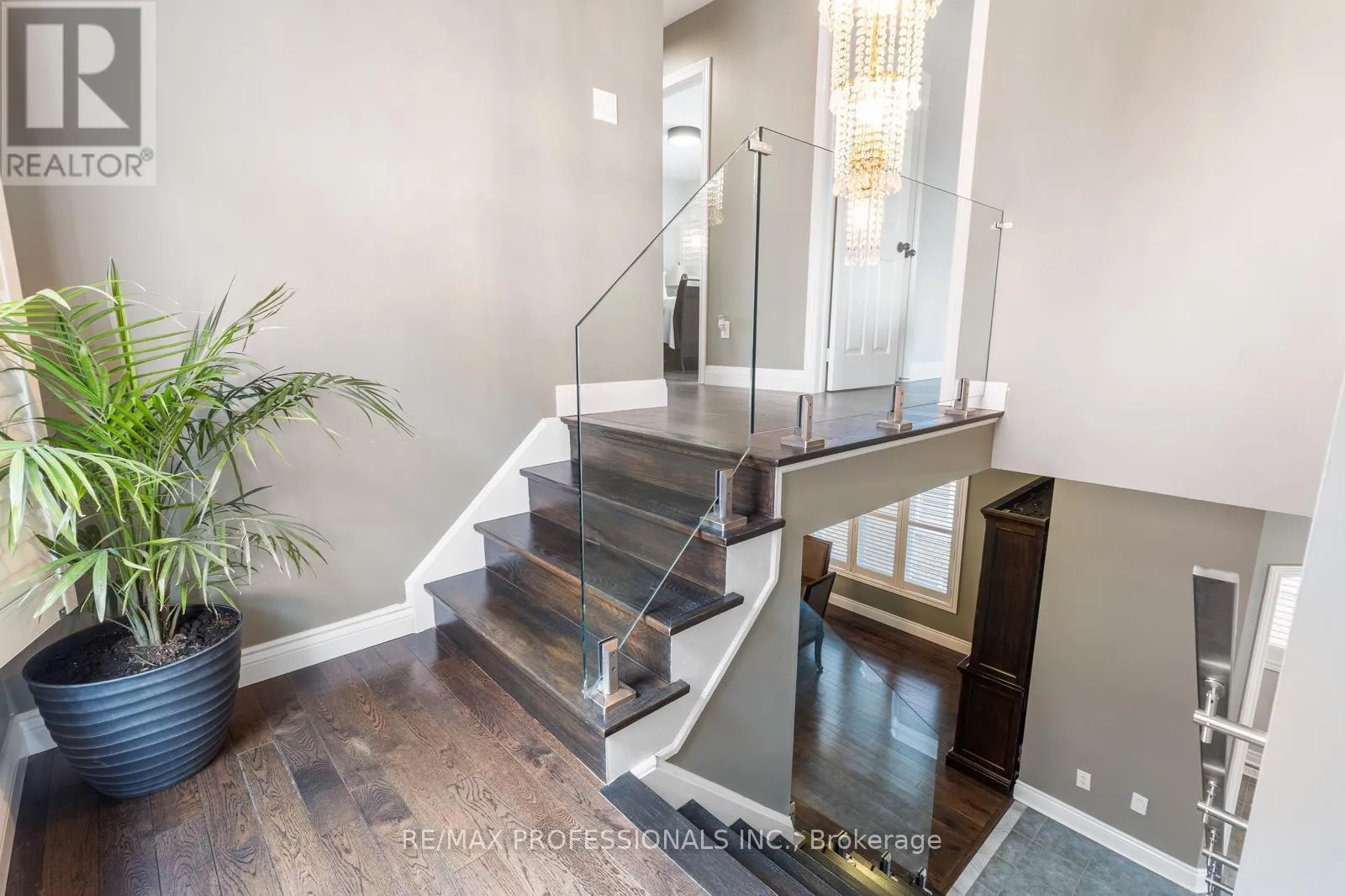 Winston Churchill Blvd/Eglinton Ave W Welcome to this impeccably maintained home in the sought-after community of Churchill Meadows, proudly owned by the original homeowners and radiating true pride of ownership. You're greeted by an extra-wide front doorway with sleek glass railings and beautiful interlocking that elevate the homes curb appeal. Inside, the spacious dining room flows effortlessly into the inviting living area, complete with a cozy fireplace---perfect for family gatherings. The upgraded kitchen features quartz countertops, a breakfast bar, and connects to a bright breakfast area with walkout to the backyard. Whether hosting or relaxing, the outdoor space is an entertainers dream with a seamless blend of interlocking and green space. The double garage includes brand new epoxy flooring and offers direct access to a large and functional main floor laundry room. Upstairs, modern glass railings continue the homes stylish aesthetic, leading to four generously sized bedrooms---all carpet-free and finished with California shutters and brand new wide plank hardwood flooring. The spacious primary retreat offers a walk-in closet and an upgraded ensuite. One bedroom opens onto a private balcony oasis, while another features soaring ceilings and a double closet. The finished basement provides even more living space with laminate flooring, pot lights, a full bathroom, and a flexible open layout with ample storage. Conveniently close to all major highways (403/401/QEW), and just minutes to Erin Mills Town Centre, Ridgeway Plaza, Credit Valley Hospital, top-rated schools, and beautiful parks. A rare find---don't miss it! (id:27476)