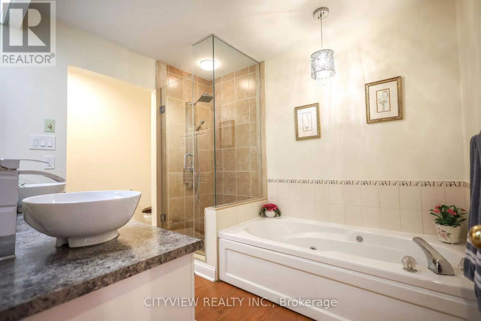 Hurontario & Burnhamthorpe Rd W Rarely offered Executive condo townhouse by Tridel conveniently Located In The Heart Of Mississauga.Right by City Centre square one. Elegantly Upgraded with a spacious floorplan. Unit features 9 Ft Ceilings On Main Floor.Open Concept Living/Dining Room With Corner Gas Fireplace .W/O To Large Terrace 18F X 21F. Upgraded kitchen with quartz counter top and stainless steel appliances and spacious breakfast area. Circular Oak Staircase With Skylight with 2 spacious bedrooms on the second floor. Large primary bedroom with a 6pc ensuite. Finished basement converted into 3rd bedroom. Located just a short walk to Square One Shopping Centre and steps from transit. Condo amenities include: Indoor pool, squash court, gym, party room, billiards, guest suites, and more. (id:27476)