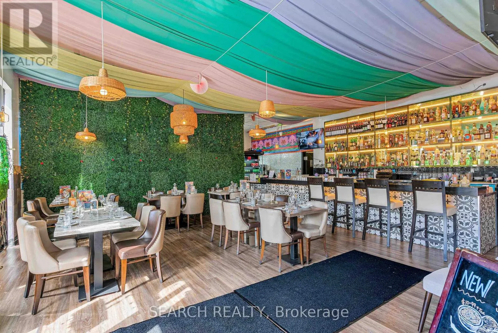 Airport Rd and Slough St No franchise restrictions - rebrand easily to your own concept. Turnkey restaurant for sale in a prime Mississauga location, currently operated by a Michelin-starred chef and known for its exceptional food and service. Fully renovated in 2023, the space features a modern interior, brand-new bar, and a commercial-grade kitchen with top-tier equipment including a tandoor and walk-in cooler/freezer. With LLBO licensing, excellent plaza visibility, and steady foot traffic, the restaurant enjoys a loyal customer base. The layout supports dine-in, takeout, and delivery, and offers complete flexibility for rebranding-ideal for independent operators or expanding brands seeking a ready-to-run, high-potential business. Replicating this level of setup today would require substantial time, effort, and investment. Remaining lease term is 3 + 5 years with a low rent (including TMI) of $7,300 (unchanged until April 2028). Please do NOT go direct and do not approach staff. (id:27476)