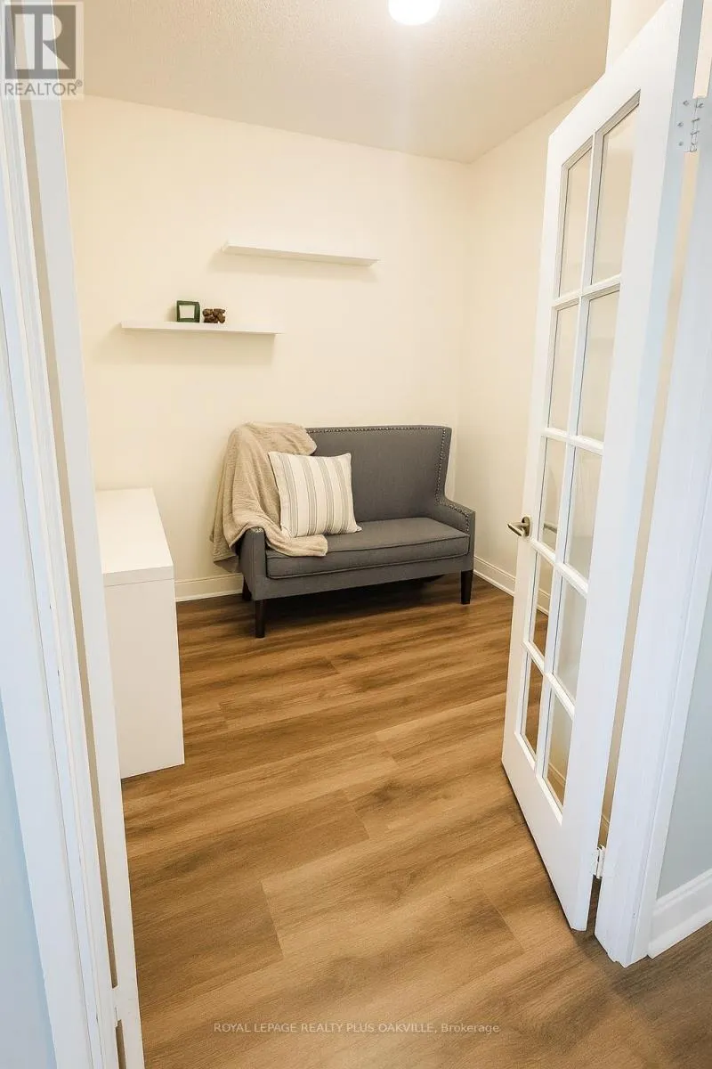 Cross Streets: Absolute Ave. ** Directions: N. Beautiful and spacious 1 bedroom plus den condo with an extra large private balcony. The den features French doors, a closet and a semi-ensuite bathroom, making it ideal as a second bedroom or a dedicated office. Freshly painted with brand new flooring throughout, this bright unit sits on a high floor and offers a functional, comfortable layout. Residents have access to the renowned Absolute Club with over 30,000 square feet of premium amenities including an indoor and outdoor pool with patio, hot tub, steam rooms, full basketball court, multiple gym areas, indoor running track, two squash courts, billiards and games room, media room, three party rooms, five furnished guest suites and a sun deck with barbeque facilities.Unit includes one parking space. (id:27476)