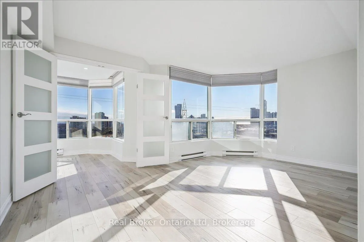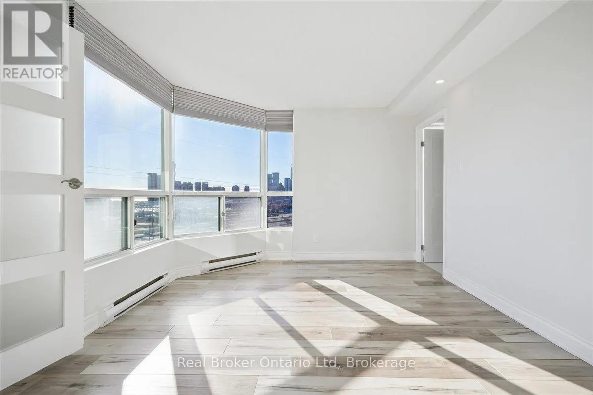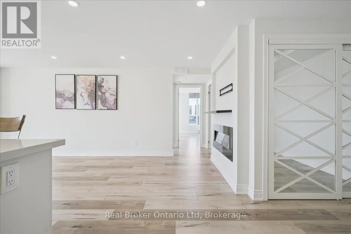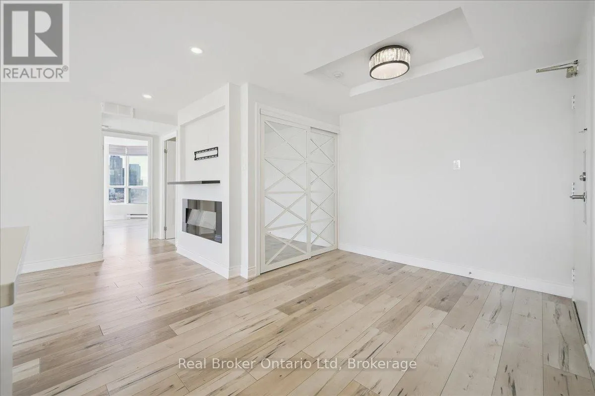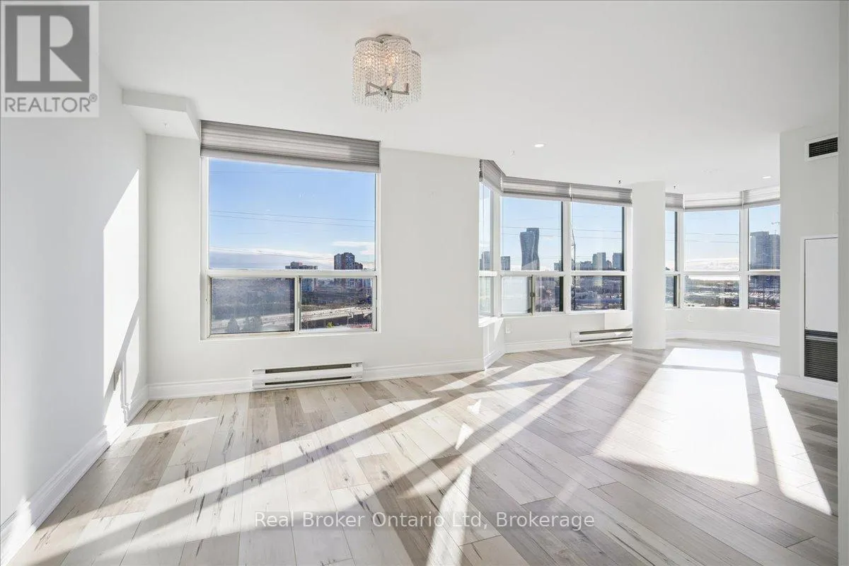 Hurontario St & Eglinton Ave Welcome to a place where the city's energy meets the calm of home, a sun-drenched 2+1 corner suite designed for the way modern professionals live, work, and unwind. Perched high above Mississauga, this fully renovated residence welcomes you with wraparound windows that frame the skyline, bathing every inch in natural light. Morning coffee tastes different here, with the sun rising across the horizon, and evenings are defined by glowing sunsets washing through the solarium, your perfect home office or creative space. The open concept layout feels effortless, centered around a custom kitchen with quartz counters, stainless steel appliances, glass cabinetry, and elegant lighting. A sleek electric fireplace anchors the living area, adding a touch of warmth and modern character to the space. The primary bedroom features a walk-in closet and ensuite, while the second bedroom and full bath offer adaptable space for family, guests, or whatever life brings. A private locker and underground parking add everyday convenience. Beyond your door, the building elevates your lifestyle with 24/7 concierge, abundant visitor parking, and amenities designed to elevate your everyday: an indoor pool with glass walls overlooking nature, a fully equipped gym, sauna, tennis court, party room, guest suites, and yes, even vending machines for those nights when a quick snack feels essential. All of this in a prime pocket just minutes to Square One, steps to Hurontario and minutes from HWY 403 with quick connections to 401 and QEW, as well as restaurants, parks, and the city's vibrant core. This isn't just a condo, it's a daily experience shaped by comfort, sunlight, and the feeling of being exactly where you're meant to be. A sanctuary above the skyline. (id:27476)