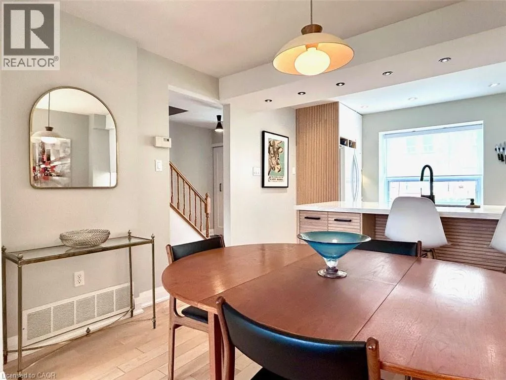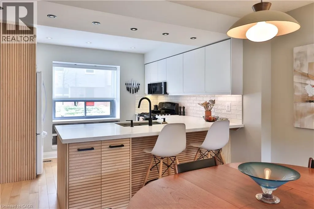Lakeshore Rd W & Shawnmerr Rd Welcome to this beautifully renovated and thoroughly updated 3-bedroom, 2-bath townhouse set in the heart of the vibrant community of Port Credit. Enjoy stylish finishes and modern appointments in the bright, open-concept main level which offers an inviting layout, highlighted by a stunning custom kitchen (2022) featuring bespoke cabinetry, under-cabinet lighting, quartz countertops, a zellige tile backsplash, island seating, stylish wood accents, and newer appliances including a 2023 fridge and microwave. Fresh paint, LED pot lights, new maple hardwood flooring, porcelain tile in the entry, and all-new doors and trim create a seamless modern feel. The spacious living area opens to a private rear garden, perfect for relaxing or entertaining, and is complemented by an adjoining dining area. A new exterior entry door adds a fresh, contemporary touch to the homeâs façade. Upstairs, the home offers three generous bedrooms with hardwood flooring throughout and ample closet space. The fully renovated (2019) 4-piece main bath exudes elegance with marble tile flooring, pot lights, porcelain wall tile, a quartz-topped vanity, and a Toto toilet. The fully renovated (2025) lower level provides exceptional versatility with a spacious rec room ideal as an additional living area or potential bedroom. This level showcases vinyl plank stairs and flooring, new trim and baseboards, LED pot lights, and fresh paint. Completing the space is a beautifully renovated (2019) 3-piece bath offering an oversized glass framed shower, basketweave tile flooring, pot lights, custom vanity, and a Toto toilet. The utility room features a newer furnace & A/C (2021), laundry area, ample storage and convenient separate entrance from the garage. Just minutes from Port Credit village, the GO Train, major highways, top-rated schools, parks, Lake Ontario, and the waterfront trail, this home perfectly blends modern luxury with everyday convenience. Donât miss this exceptional opportunity. (id:27476)