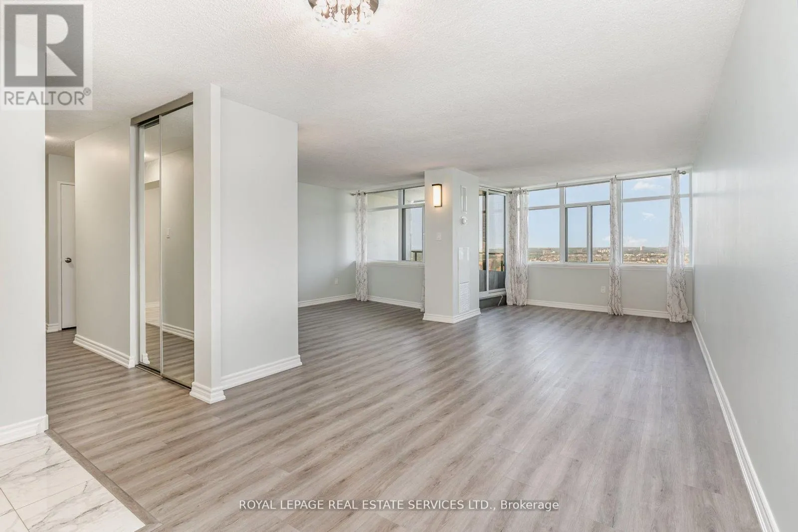 Hurontario & Dundas St E This remarkable sub penthouse unit is freshly painted, has been recently fully renovated, including new blinds in 2024, 2 HVAC units installed in 2023 with 5 yr warranty, offering a truly turn-key living experience. It features a spacious layout with two bedrooms plus a versatile den, and two full, beautifully renovated bathrooms. This highly desirable unit is situated in a well-managed building that rests on over four acres of meticulously maintained parkland, providing a serene and picturesque environment. The location offers unparalleled convenience, being within comfortable walking distance of both the Cooksville GO Station and Mississauga Transit, making commuting a breeze. Furthermore, it's just a short distance from major amenities like Square One Mall and the Trillium Queensway Hospital, ensuring everything you need is close at hand. Boasting almost 1200 square feet of meticulously renovated living space, this unit offers truly amazing panoramic views that can be enjoyed from various vantage points. The master bedroom is designed as a private retreat, complete with a generous walk-in closet and a four-piece ensuite bathroom. The open-concept den features an elegant electric fireplace, adding a cozy and inviting touch. You'll also appreciate the open balcony, which provides an unobstructed view-perfect for enjoying breathtaking sunsets. In addition to its stunning interiors and views, this sub-penthouse comes with a large in-suite storage room, offering ample space for your belongings. A rare and highly sought-after feature is the two parking spaces (one of them extra large), capable of accommodating two cars comfortably. Significant renovations have recently enhanced the building, including updates to the balconies, windows & balcony doors (2024/2025), entry fob system, and elevators and more. The low maintenance fee is comprehensive, covering all utilities, even cable TV and internet. (id:27476)