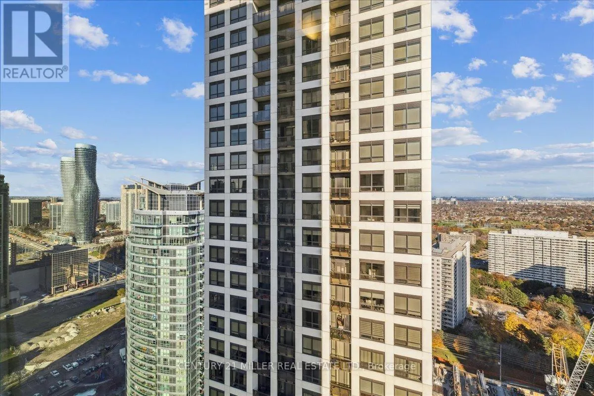 Cross Streets: Hurontario and Burhamthorpe. ** Directions: Hurontario St. to Elm Drive. One-bedroom corner unit in the prestigious Edge Tower 1, offering sweeping city views and an elegant urban lifestyle. This modern suite features laminate flooring throughout, quartz countertops, built-in appliances, and expansive windows that fill the space with natural light. Located in the heart of Mississauga, this unbeatable location is surrounded by restaurants, cafés, shops, and conveniences. With MyWay Public Transit at your doorstep, you are just a short walk to Square One Shopping Centre, the Living Arts Centre, the Library, the Community Centre, GO Bus Terminal, and all other downtown amenities. Building amenities include 24-hour concierge, state-of-the-art fitness center, theatre room, games room, Wi-Fi lounge, billiards room, party room, rooftop terrace, and guest suites. Extras: Internet included. Tenant responsible for hydro. (id:27476)
