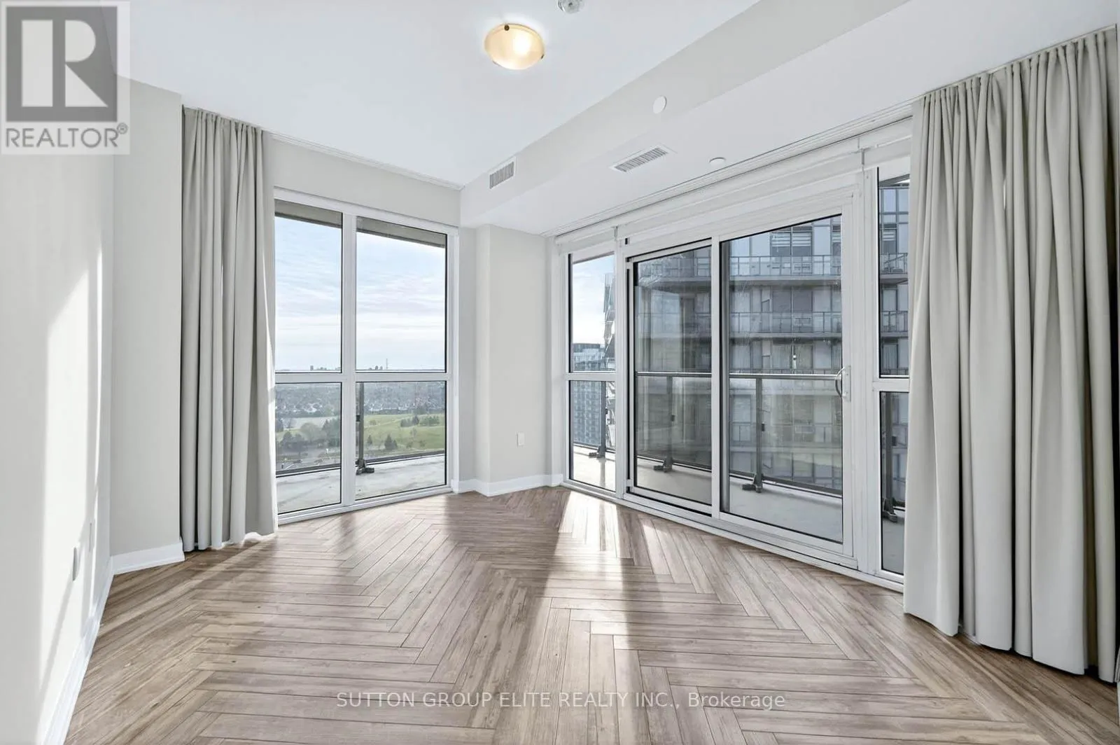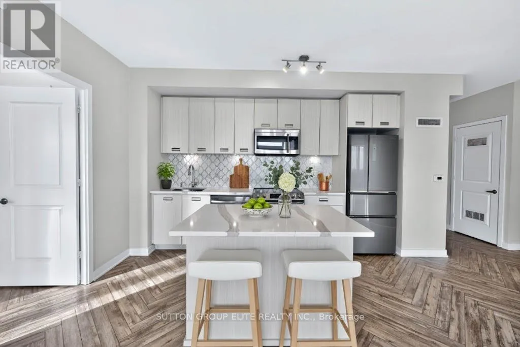 Cross Streets: Erin Mills Pkwy & Eglinton Ave W. ** Directions: Eglinton Ave W to Glen Erin. Experience the epitome of luxury living in this exquisite corner unit, perfectly situated in the vibrant heart of Erin Mills. Spanning over 900 square feet, this residence boasts breathtaking, unobstructed views from every room, showcasing the serene beauty of Lake Ontario to the south and captivating northern vistas from its dreamlike wrap-around balcony. The open-concept design is enhanced by elegant herringbone laminate flooring throughout, soaring 9-foot ceilings, and expansive windows that flood the space with natural light. The chef-inspired kitchen is a culinary delight, featuring a stunning island, high-end stainless steel appliances, under-cabinet lighting, quartz countertops, and a custom backsplash that adds a touch of sophistication. Retreat to the tranquil master bedroom, complete with a luxurious four-piece ensuite, a spacious walk-in closet, automatic roller blinds, blackout curtains, and direct access to the balcony. The second bedroom is generously sized, complemented by a versatile den that can serve as a refined dining area or an elegant home office. The main bathroom is beautifully appointed with a stand-up shower enclosed by a glass door. Additional conveniences include in-suite laundry and a front closet equipped with a custom built-in organizer. This unit also comes with a designated parking space and a storage locker. Residents will enjoy state-of-the-art amenities that promise endless entertainment for family and friends. Located just across the street from the charming Erin Mills Town Centre, you will have quick access to groceries, dining options, Credit Valley Hospital, and major highways. This property is entirely turn-key, allowing you to move in effortlessly and indulge in a lifestyle of comfort and elegance. (id:27476)