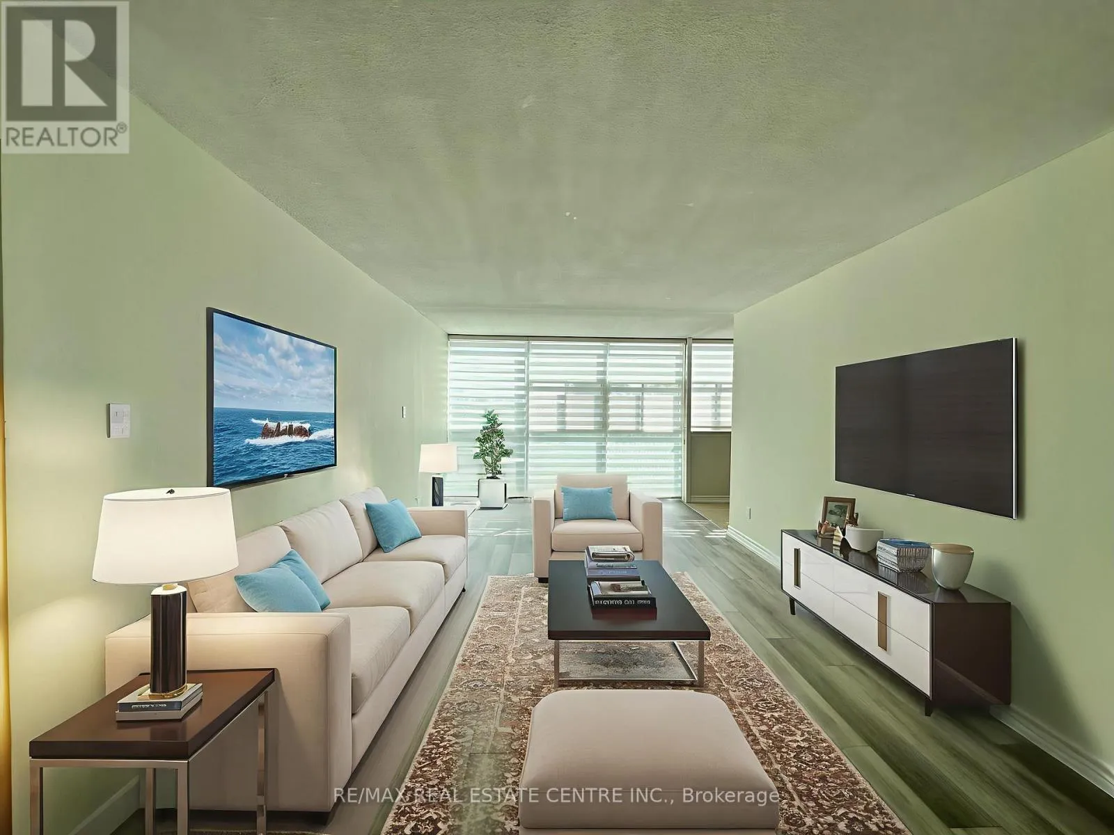 Cross Streets: Rathburn & Dixie. ** Directions: Rathburn Rd E & Dixie Rd. Absolutely Stunning Condo with All-Inclusive Maintenance!1+1 Bedroom | Approx. 964 Sq.Ft | West-Facing ViewsExperience true hassle-free living with maintenance fees that include Rogers Xfinity TV, Rogers High-Speed Internet, Hydro, Heat, Water, Central Air Conditioning, Building Insurance, Parking, Locker, and All Common Elements-everything you need, all in one place!Step into a bright and spacious unit featuring a welcoming foyer that opens into a beautifully renovated open-concept living and dining area. The upgraded kitchen boasts granite countertops, ample cabinetry, and a cozy eat-in breakfast area-perfect for everyday meals.Enjoy floor-to-ceiling windows showcasing breathtaking west-facing views of the Mississauga City Skyline, filling the home with natural light. A large solarium offers the ideal flexible space for a home office or reading nook.The thoughtfully designed layout includes ensuite laundry, generous storage, and a functional floor plan perfect for both comfortable living and entertaining.Located in a prime Mississauga neighbourhood, you're just steps from public transit, shopping, major highways, top-rated schools, libraries, and beautiful parks.Property photos are virtually staged. (id:27476)