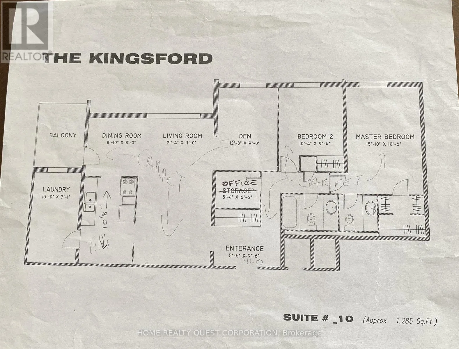 Kirwin Ave / Hurontario Street Step into this extra-spacious 2-bedroom condo with a full separate den PLUS a private office-a rare layout that feels more like a bungalow in the sky than a condo. This bright, beautifully maintained suite welcomes you with a large foyer and flows into a generous open-concept living/dining area, perfect for entertaining and everyday living. Enjoy morning coffee or evening relaxation on your large, private, covered balcony.The renovated kitchen impresses with quartz counters and porcelain tile flooring, while the oversized laundry room doubles as a pantry-offering the kind of storage space you simply don't find in condos today. Need more room? The full-size separate den is ideal as a family room, hobby room, or even a potential 3rd Bedroom. The private office is perfect for remote workers or as a quiet retreat.The king-sized primary bedroom features a ensuite bath and a deep walk-in closet. The second bedroom is equally spacious with excellent storage-ideal for family, guests, or downsizers who still want room to breathe. Located in a quiet, exceptionally managed building, the Kingsford has recently completed modern upgrades-elevators, corridors, and common areas-creating a fresh, luxury hotel feel throughout. ALL utilities + premium internet included in the monthly fee! Electrical panel upgraded (2018, ESA available).1 underground parking spot steps from the elevator. And the best part-you're one block from the new Hurontario LRT, adding massive long-term value with quick access to: Square One Trillium Hospital Cooksville GO, Shops, dining, and key amenities. This is a rare opportunity with incredible upside in the coming years. Spacious. Updated. Move-in ready. Book your showing today and experience why this layout almost never hits the market. (id:27476)