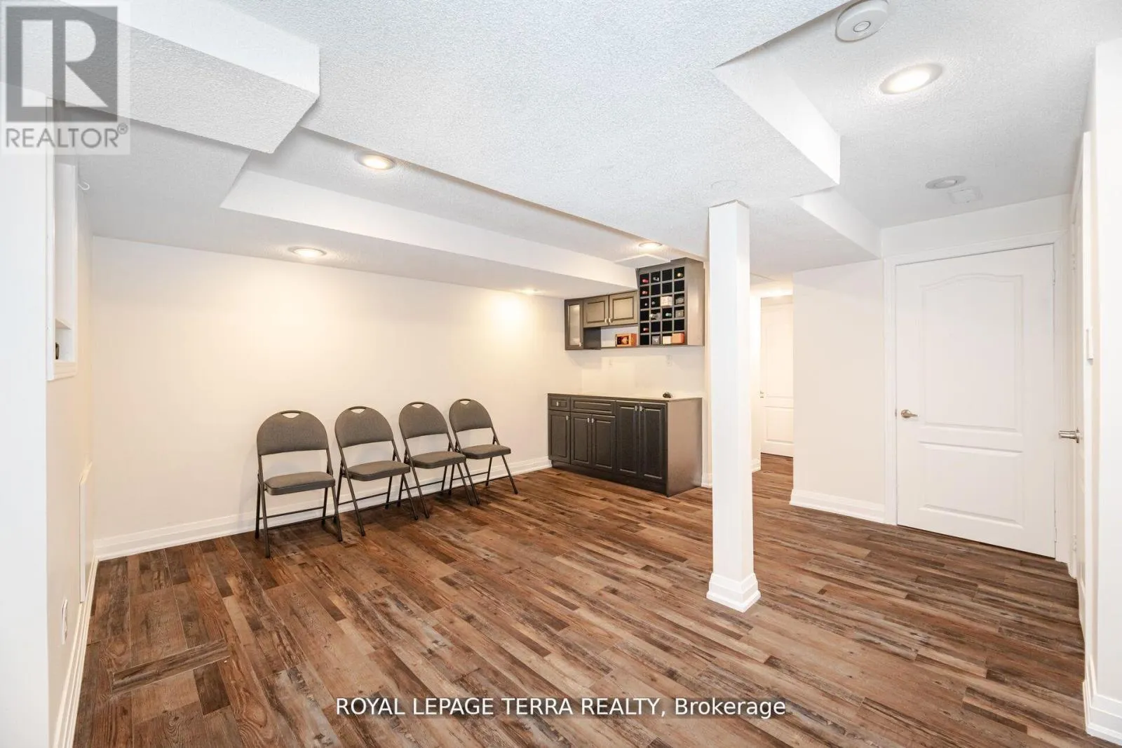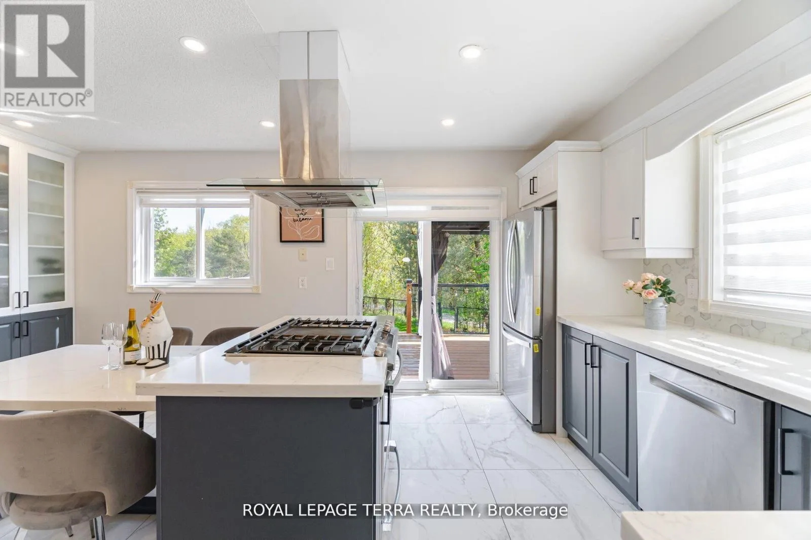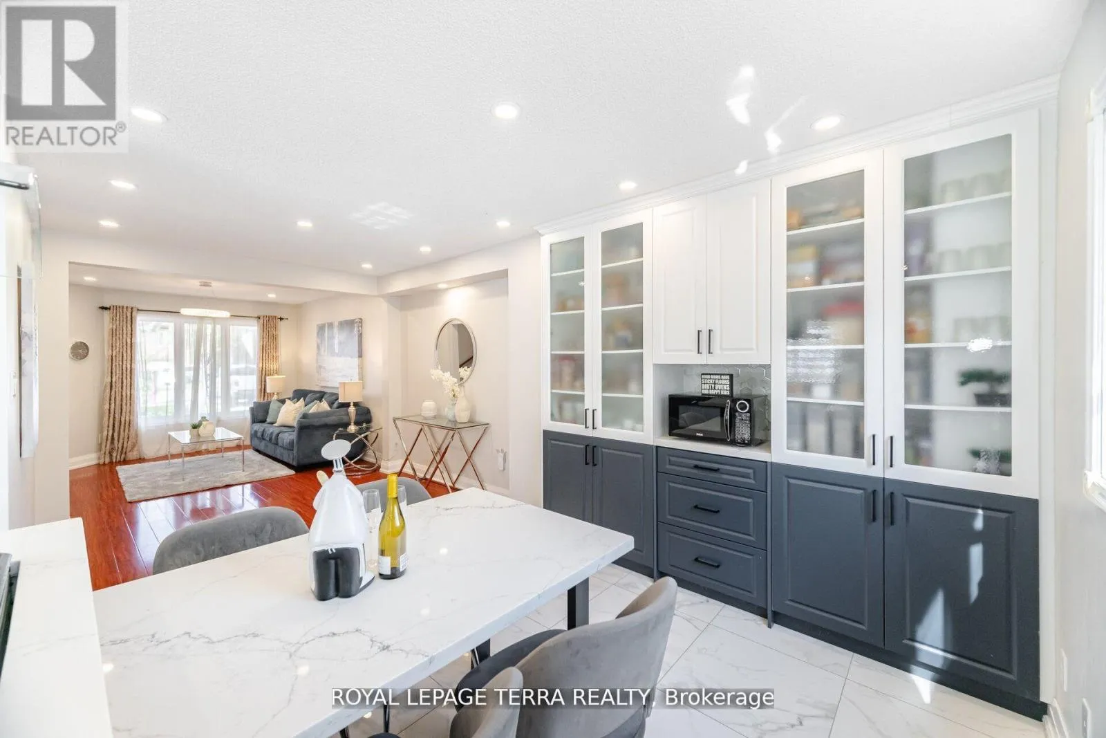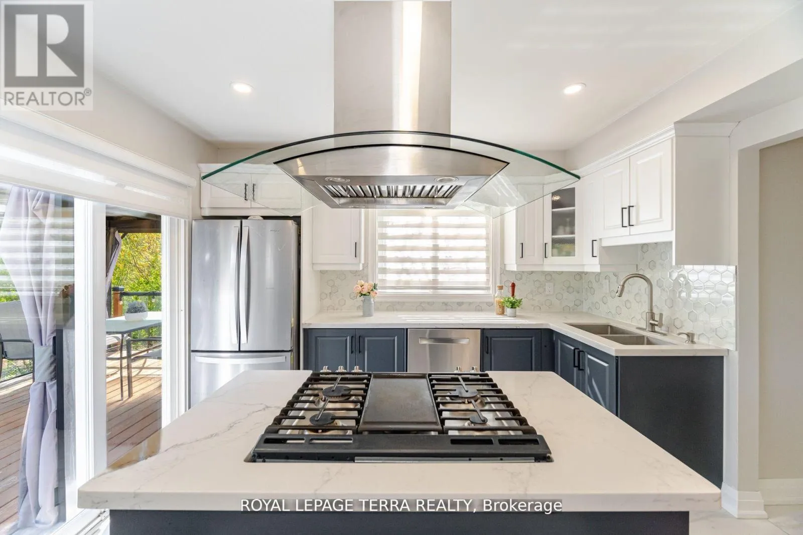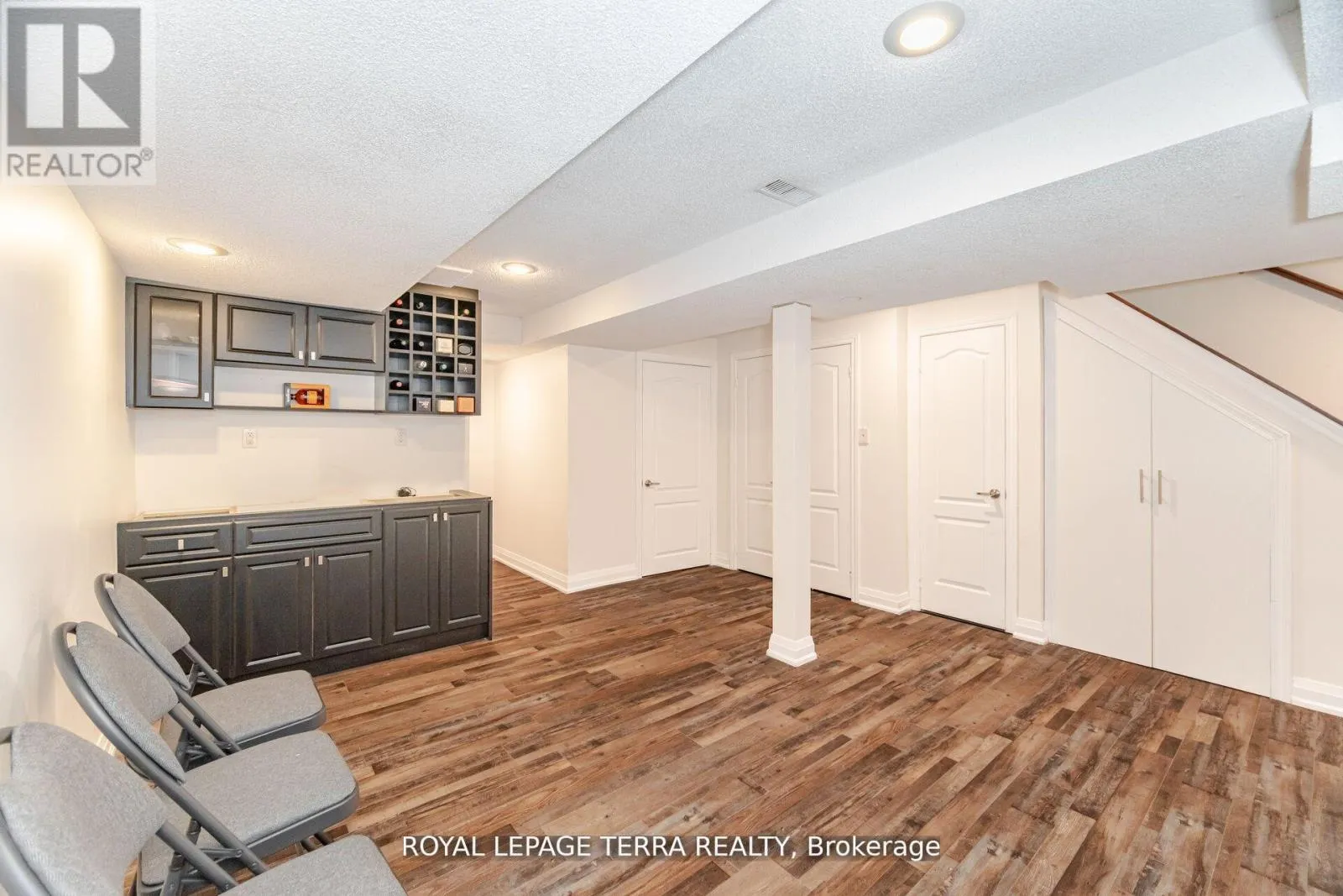 Britannia/Tenth Line You fall in love with this elegant end-unit townhome that feels just like a semi and sits on a rare, oversized pie-shaped ravine lot! Nestled in a quiet, family-friendly neighbourhood, this 3+1 bedroom, 4-bathroom home is ideal for growing families or first-time buyers seeking space, comfort, and nature. Here's why this home is a must-see:(1) Ravine Lot Living: Enjoy ultimate privacy and nature views with no neighbours behind! Step out onto your newly built backyard deck and take in the peaceful sounds of the ravine and nearby walking trails.(2) Stylish, Open-Concept Main Floor: Bright and airy layout with pot lights, custom zebra blinds, a large living/dining area, and an extended chefs kitchen featuring quartz countertops, glass backsplash, and newer stainless steel appliances.(3) Spacious Upstairs: Three generously sized bedrooms and two full bathrooms, including a private ensuite in the primary bedroom perfect for everyday comfort.(4) Finished Basement In-Law Suite: Complete with a large great room, one bedroom, full bathroom, and kitchenette ideal for extended family, guests, or future rental income potential with a possible separate entrance.(5) Commuter-Friendly Location: Private garage, parking for up to 4 cars, and just minutes to Highways 403, 407, 401, and three GO Stations within 10 minutes you cant beat this convenience! Bonus upgrades include: Furnace (2024), Roof (2021), Fridge & Range Hood (2023), LG Washer & Dryer (2025), Bosch Dishwasher, Smart Lock, dimmable switches, garage opener, and more. --- A Perfect Blend of Nature, Comfort & Commuter Ease! --- (id:27476)