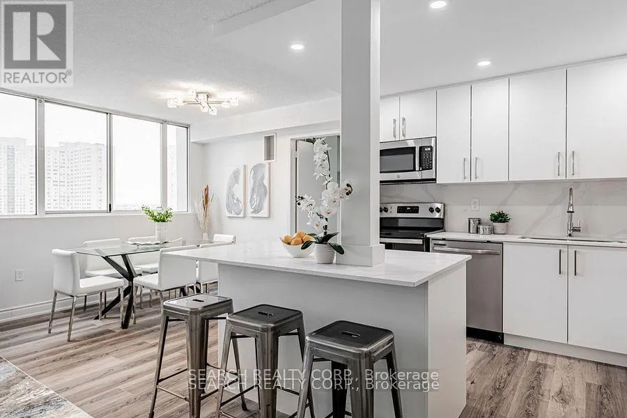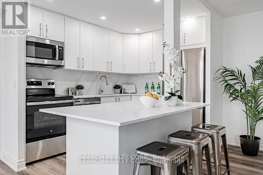 Hurontario/Burnhamthorpe Welcome to this stunning, fully renovated 3-bedroom, 1-bathroom condo offering 1200 sqft of modern living space. Situated in a highly sought-after building near Square One Mall, this condo was completely transformed in November 2024, boasting high-end finishes, exceptional amenities, and a prime location.The kitchen is a true showstopper, featuring quartz tile backsplash, quartz countertops, brand-new custom cabinetry, and top-of-the-line appliances. A spacious center island serves as a perfect gathering spot for meals or entertaining. The attention to detail is carried throughout the home, with brand-new light fixtures illuminating every room, fresh paint creating a bright and inviting atmosphere, and sleek new laminate flooring. Bathroom has been fully upgraded with modern finishes w new bathtub. Each of the three bedrooms is generously sized, featuring brand-new mirrored closets with ample storage. In-suite laundry area is equipped with a brand-new washer and dryer. This condo also includes owned underground parking, located close for secure and convenient access. Condo fees cover heat, hydro, water, air conditioning, common elements, parking, building insurance, with 24/7 security & concierge services ensuring a worry-free lifestyle. Fully equipped fitness center, indoor pool, sauna & party room. Ample visitor parking for hosting friends & family. Located steps from Square One Mall, Mississaugas best dining, shopping, & entertainment. Proximity to top-rated schools, parks, & community centers, next to 403, 401, and QEW, public transit, and the upcoming Hurontario LRT. (id:27476)