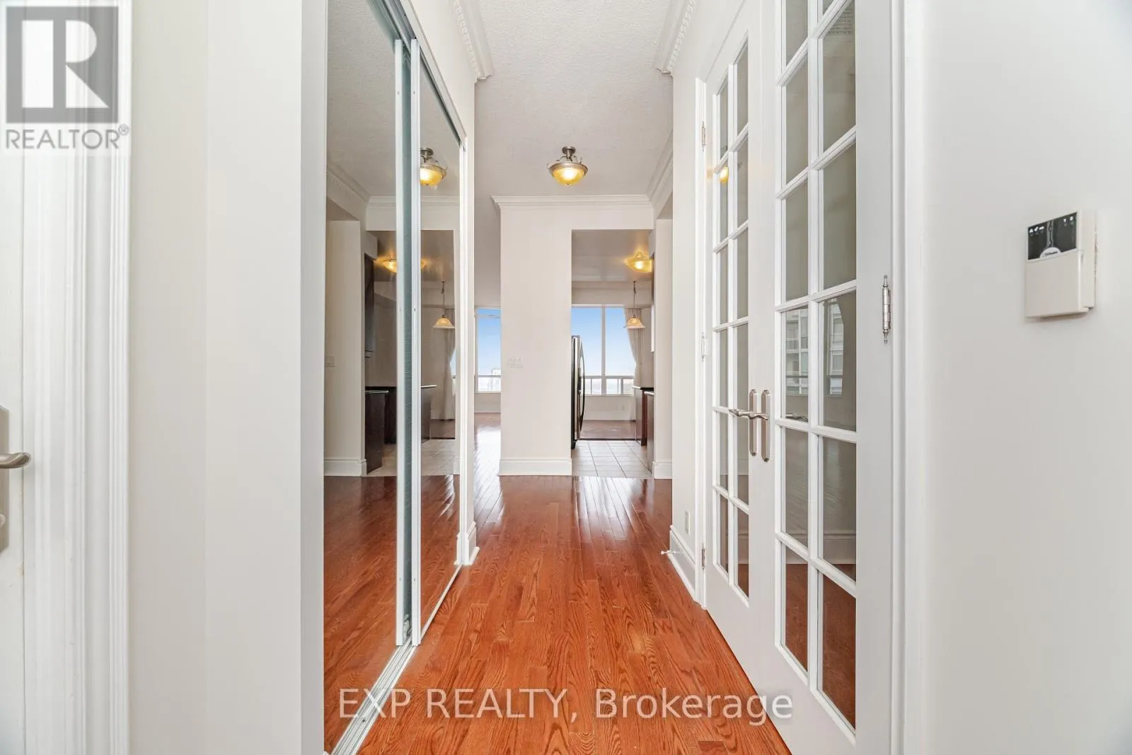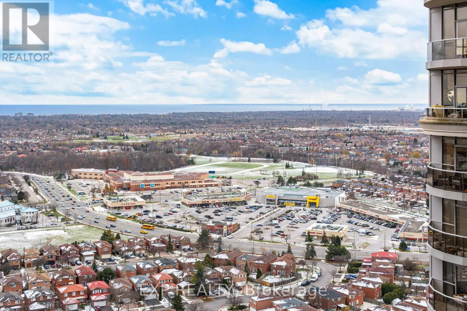 Hurontario St./ Burnhamthorpe Experience luxury living at Ovation in Mississauga City Centre. This expansive 1,750 sq. ft.suite offers a coveted south exposure with breathtaking views of the GTA skyline and LakeOntario-a true one-of-a-kind residence. Featuring 10' ceilings, two private balconies, elegant crown mouldings, and wall-to-wall windows that flood the space with natural light. The modern kitchen is equipped with stainless steel appliances and excellent storage. Unbeatable location-walk to Square One, the library, Living Arts Centre, YMCA, restaurants, and transit.Includes two VIP parking spaces. (id:27476)