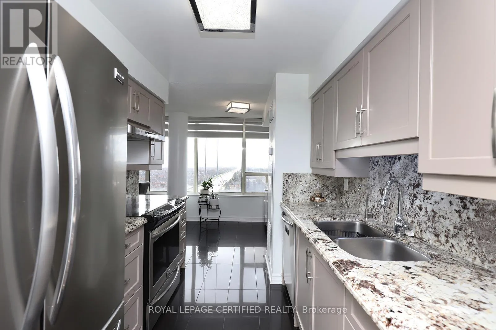 Cross Streets: Eglinton/Mavis. ** Directions: From Mavis, East on Winterton Way, South on Ceremonial,South on Sunray Dr. Welcome to this Beautiful Sun-filled 1400+ sq ft Condo with 180 degree views boasting 2+1 bedrooms and 2 bathrooms! This meticulously kept condo features a designer kitchen that highlights granite counter tops with granite full height backsplash, a water filtration system, and a custom designed coffee bar & wine fridge with room for a breakfast area! The dinning room has an amazing view of the west and overlooks the living room. The expansive living room is highlighted with a feature wall made of stone, built in electric fireplace and a tv mount. Zebra blinds featured in Kitchen, Living, Dinning, and Primary allow for versatile control over natural light and privacy! The spacious primary bedroom has a walk in closet and a 3 piece ensuite with granite slab shower and an extra custom made cabinet for more storage. The large 2nd bedroom features a double closet and south/east views while the +1 bedroom features west and south views with custom insulated blinds! This condo also has 2 lockers & 2 parking spaces + a rented space (available to transfer). Constellation Place offers lots of amenities including, tennis/pickleball court, indoor pool, fitness room, sauna, party room and more! This condo features upgrades galore, a unique 3rd bedroom, plenty of space and is close to all major shopping and transit for all your conveniences! (id:27476)
