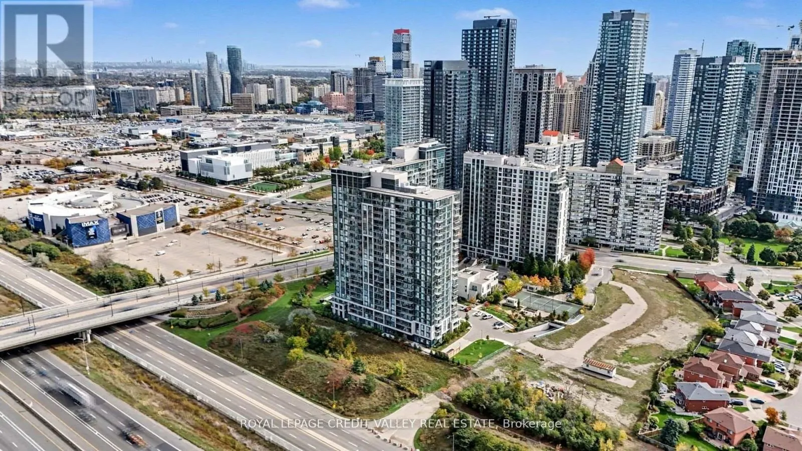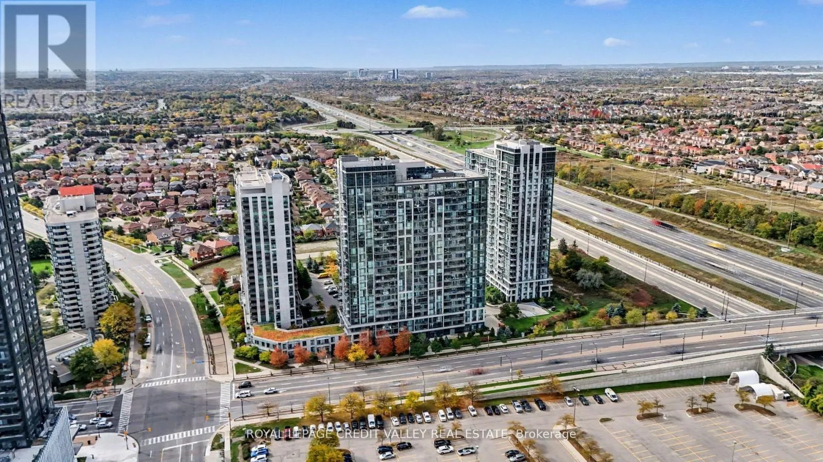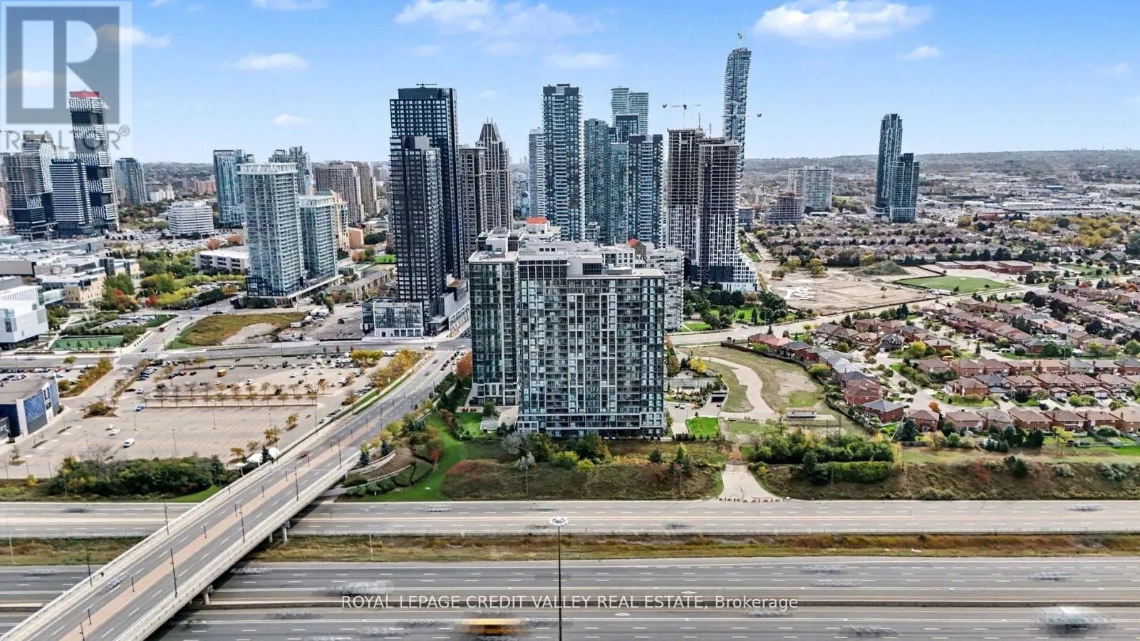 Rathburn Rd/ Confederaton Pkwy Built in 2021, this modern 1-bedroom + den, 1-bathroom condo offers 645 sq. ft. of bright and open living space & a private balcony in the heart of Mississauga. The stylish kitchen feature sample storage, stainless steel appliances, sleek white cabinetry, quartz countertops, and a double sink with a breakfast area. The open-concept of living and dining space flows seamlessly to a walkout balcony, filling the unit with natural light. The primary bedroom boasts a three door closet and large windows, while the versatile den, complete with a light and vent, can function as a home office or second bedroom. A spa-like 4-piece bathroom, carpet-free flooring throughout, freshly painted (2025) and the convenience of en-suite laundry add to the units appeal. Located just steps from Square One Mall, GO Transit, Cineplex & Sheridan College. Strolling distance to Celebration Square, Living Arts Centre & the YMCA, this unit offers unbeatable convenience. With easy access to major highways, commuting is effortless. Don't miss this fantastic opportunity to live in one of Mississauga's most vibrant communities. Unit comes with 1 Underground Parking & 1 Storage Locker. Building Amenities Include - Tennis Court, Bowling Alley ,Gym & Aerobics Room, Guest Suites, Conference Room, Party Room w Kitchen, Movie Theatre, Cards & Table Tennis & Billiard Room, Indoor Pool & Sauna, Hot Tub/Jacuzzi , 24hrs security, Outdoor Entertainment Area with a Park and Visitors Parking. (id:27476)