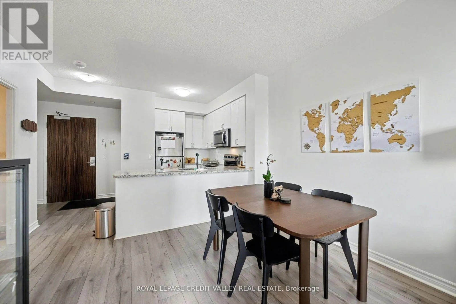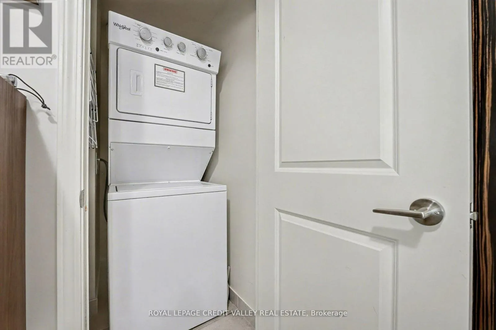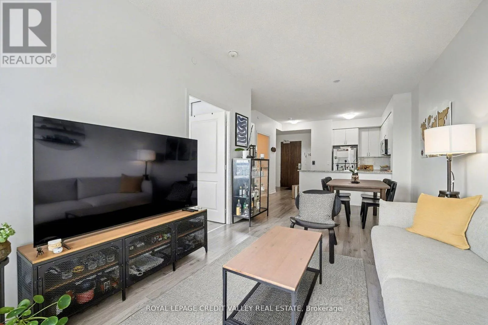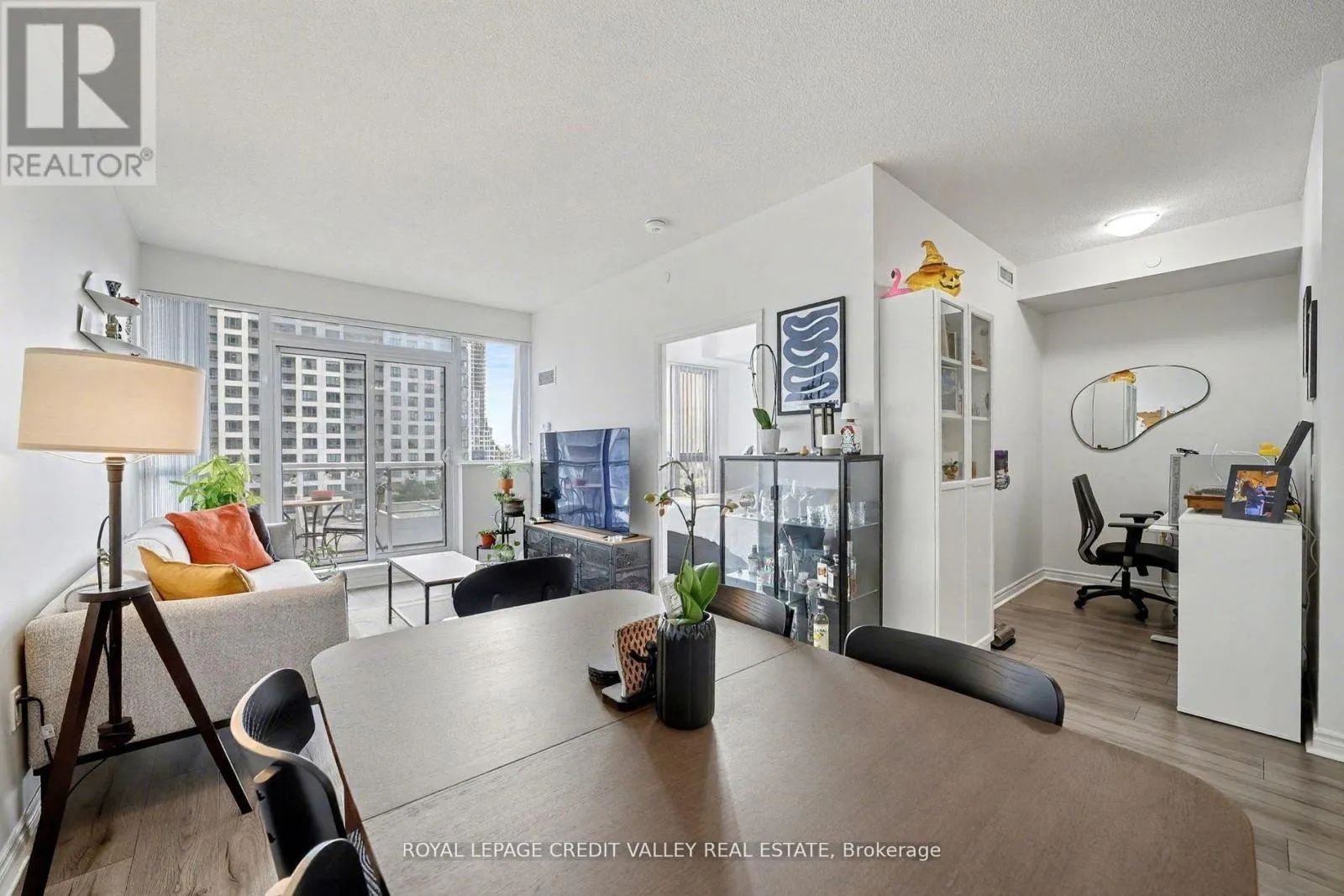 Rathburn Rd/ Confederaton Pkwy Built in 2021, this modern 1-bedroom + den, 1-bathroom condo offers 645 sq. ft. of bright and open living space & a private balcony in the heart of Mississauga. The stylish kitchen feature sample storage, stainless steel appliances, sleek white cabinetry, quartz countertops, and a double sink with a breakfast area. The open-concept of living and dining space flows seamlessly to a walkout balcony, filling the unit with natural light. The primary bedroom boasts a three door closet and large windows, while the versatile den, complete with a light and vent, can function as a home office or second bedroom. A spa-like 4-piece bathroom, carpet-free flooring throughout, freshly painted (2025) and the convenience of en-suite laundry add to the units appeal. Located just steps from Square One Mall, GO Transit, Cineplex & Sheridan College. Strolling distance to Celebration Square, Living Arts Centre & the YMCA, this unit offers unbeatable convenience. With easy access to major highways, commuting is effortless. Don't miss this fantastic opportunity to live in one of Mississauga's most vibrant communities. Unit comes with 1 Underground Parking & 1 Storage Locker. Building Amenities Include - Tennis Court, Bowling Alley ,Gym & Aerobics Room, Guest Suites, Conference Room, Party Room w Kitchen, Movie Theatre, Cards & Table Tennis & Billiard Room, Indoor Pool & Sauna, Hot Tub/Jacuzzi , 24hrs security, Outdoor Entertainment Area with a Park and Visitors Parking. (id:27476)