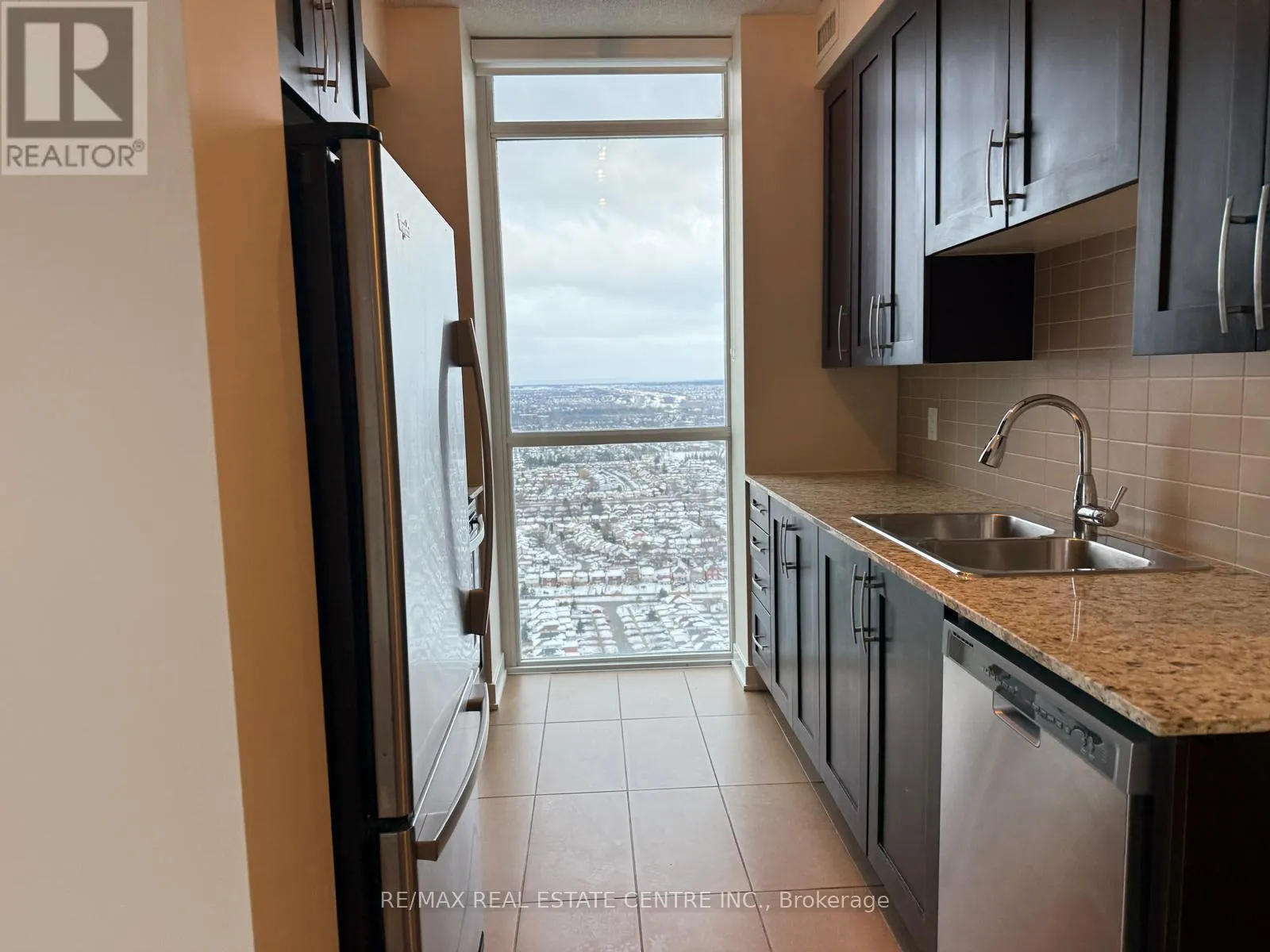 Burnhamthorpe/Confederation Stunning 39th-Floor Corner Suite with Panoramic Lake Views!Beautiful 2-bedroom, 2-bath condo featuring split-bedroom layout. The primary bedroom includes a spacious walk-in closet and a private 4-piece ensuite. This bright and airy suite offers engineered hardwood floors and 9 ft ceilings, with south-east and south-west exposure flooding the unit with natural light. Unbeatable location-just steps to Square One, Sheridan College, cinemas, the Living Arts Centre, and top dining options. Quick access to Highways 403, 401, 410 & 407 makes commuting a breeze. (id:27476)