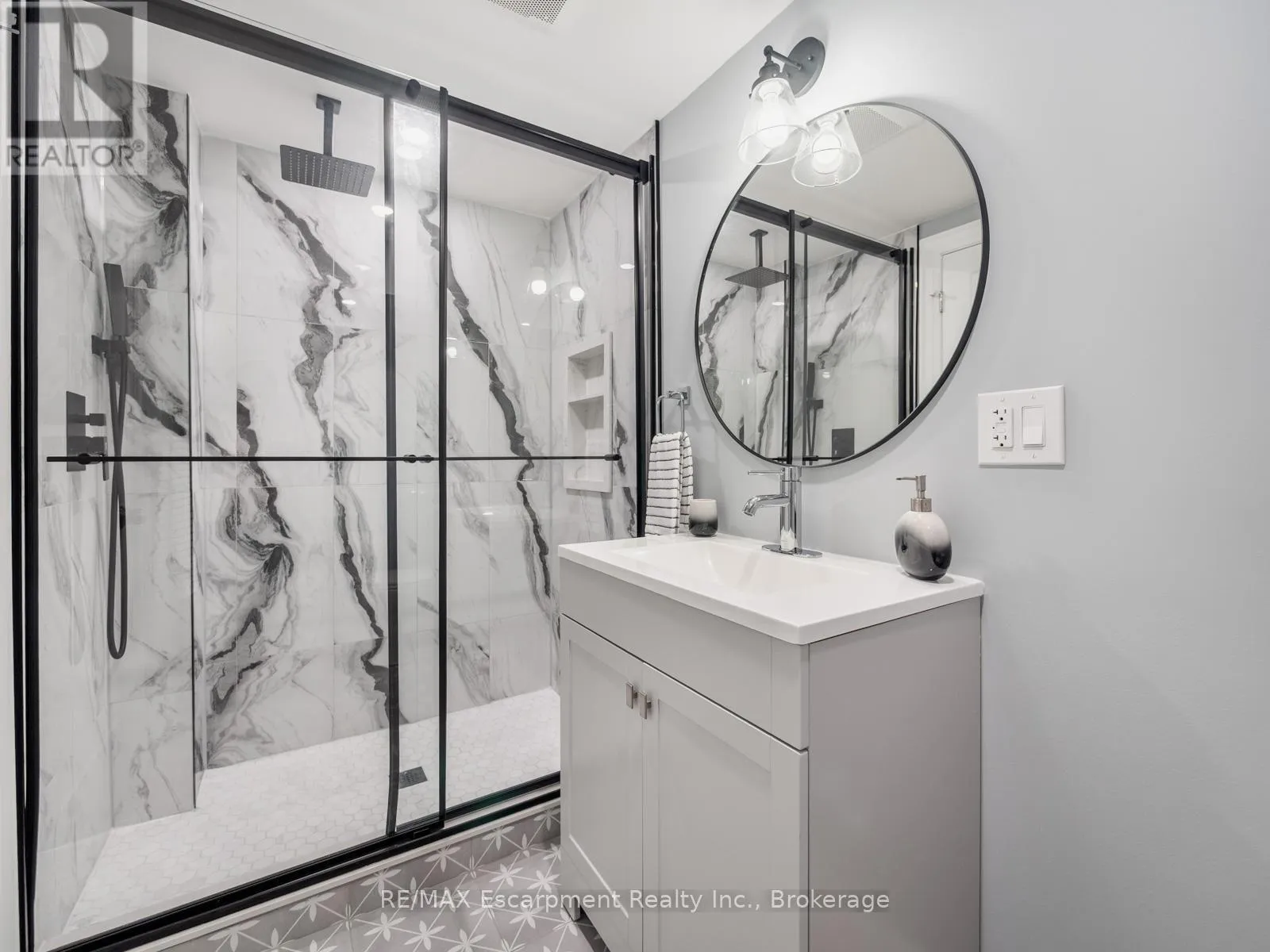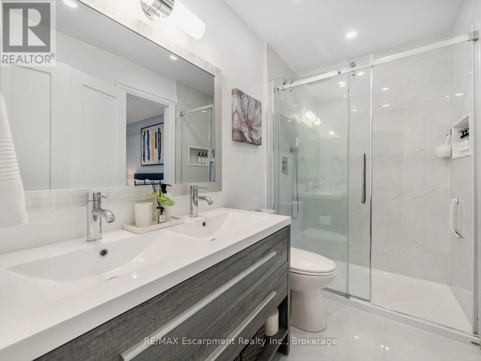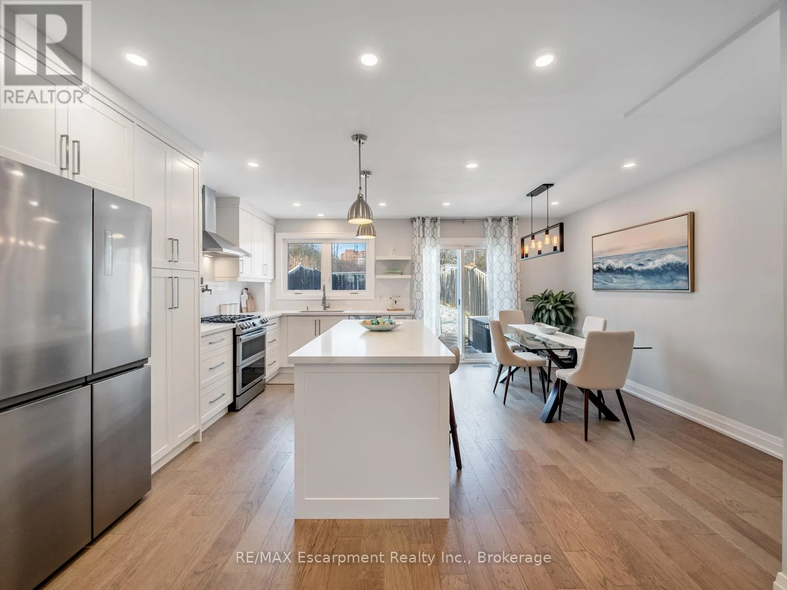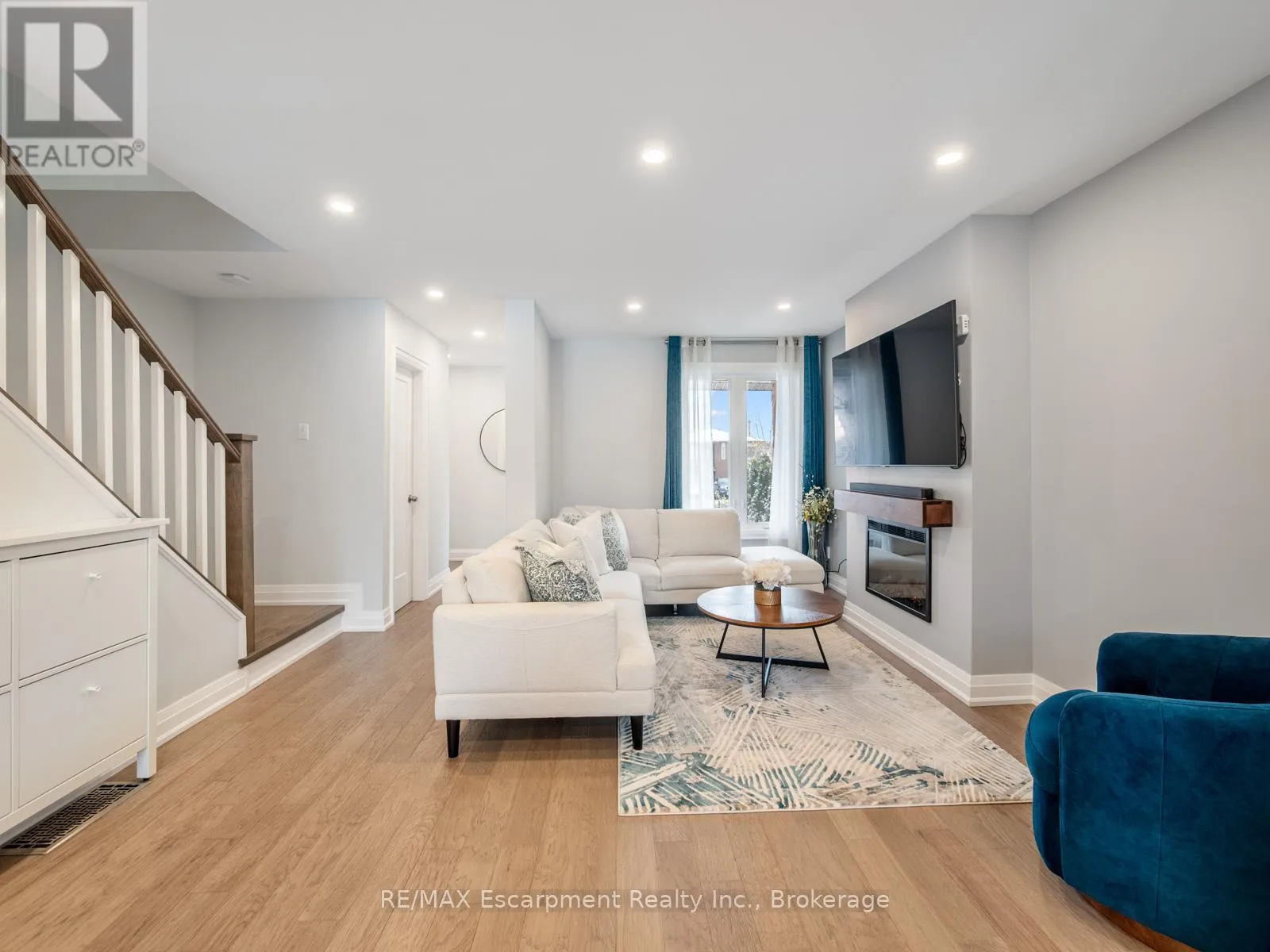 Cross Streets: Rathburn Rd E and Hurontario St. ** Directions: Rathburn Rd E / Woodington. Situated in the sought-after Rathwood neighbourhood, 143 Chalfield Lane is a beautifully renovated, turn-key semi backing onto green space. The inviting main level features an open-concept layout with a bright front living room with an electric fireplace, flowing into a modern white kitchen with built in organizers, quartz counters, stainless steel appliances, a large centre island, and a separate dining area with patio doors leading to a private deck overlooking the trees, ideal for summer entertaining. Upstairs are three bedrooms and a fully updated 4-piece bathroom with double vanity and large glass enclosed shower. The finished basement adds valuable flexibility with a recreation room, a wood-burning fireplace, a stylish3-piece bathroom, a spacious laundry room, plenty of storage and rough-ins for a full kitchen. The rec room can also be closed off to function as a 4th bedroom, ideal for extended family or guests. Renovated in 2020 with quality finishes throughout, this home offers engineered hardwood on both levels, porcelain tile, upgraded lighting, a modern staircase, and updated mechanicals including a 2017 HVAC system and 2019 roof. Located just minutes from Square One, schools, parks, shopping, public transit, and major highways, this home sits in a quiet pocket while offering all the convenience of central Mississauga living. (id:27476)