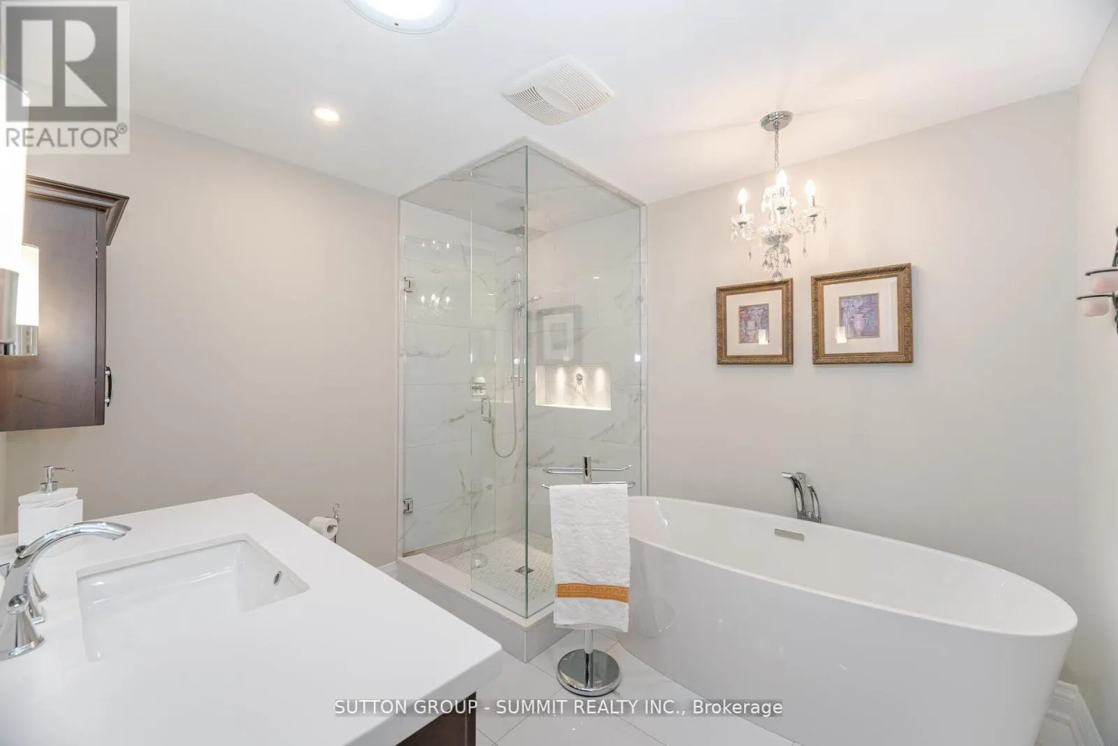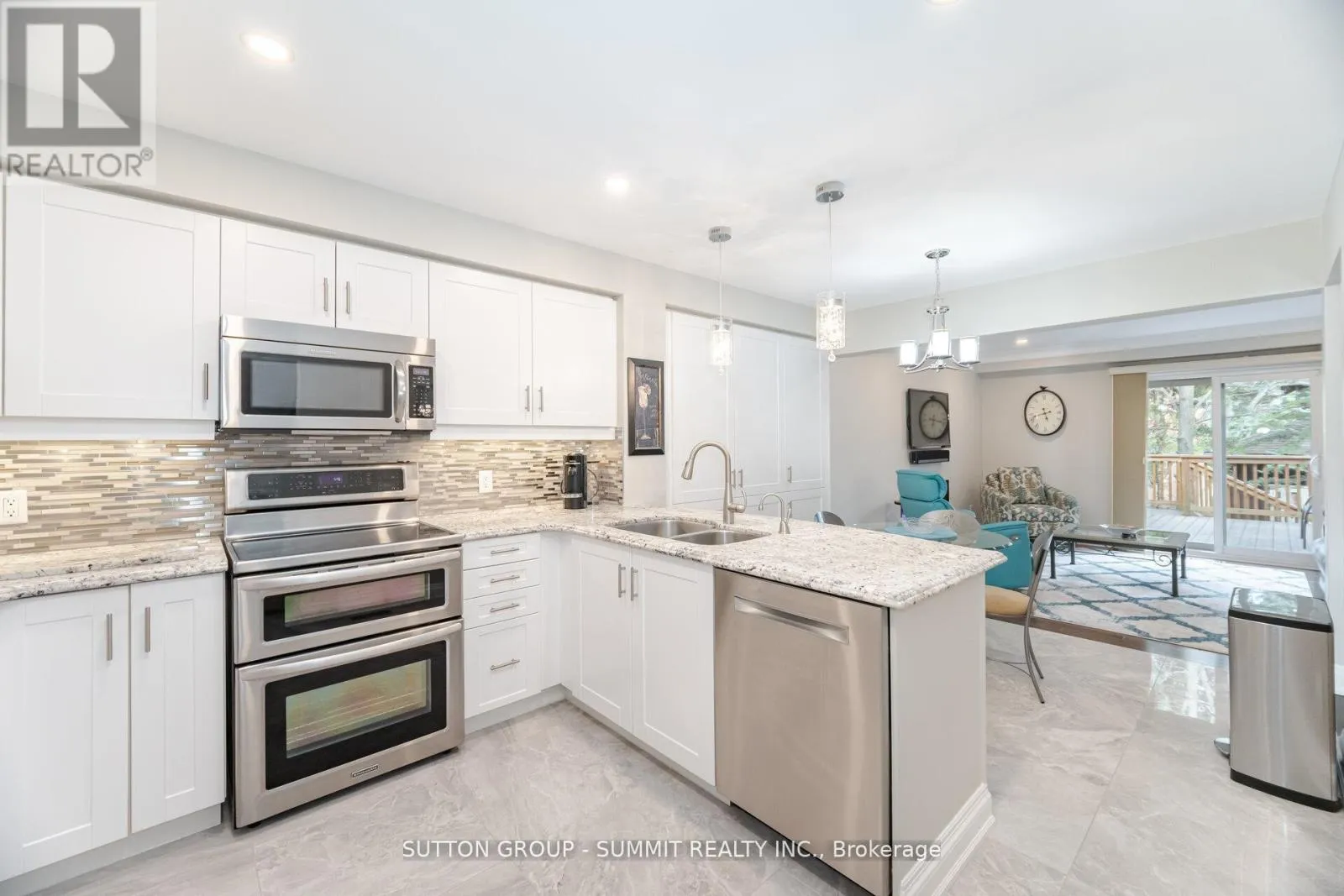 Cross Streets: West on The Collegeway from Mississauga Rd. Left onto Broad Hollow. ** Directions: Mississauga Rd. & The Collegeway. Fully Renovated Luxury Townhome in Exclusive Sawmill Valley area. 2200 sq. ft. unit not including Finished Basement (approx 566 sq. ft.) shows like a model inside and outside the rear where you can enjoy sunny morning on your oversize deck, or on the interlocking brick patio. You will be impressed with the top quality finishes and materials from the moment you enter the gracious 2 storey foyer with its European made Crystal Chandelier. There is a modern family size Kitchen o/looking a cosy Separate Family Room with its built-in wall electric fireplace (Dual Voltage 220/110). Floors are either quality hardwood or porcelain, Smooth ceilings and Crown Mouldings throughout main floor and 2nd floor ceiling. The Primary Bdrm features a luxury ensuite with oversize shower, stand-alone Soaker Tub, vanity and toilet. With its Solar Tube, it is always Daylight. For added comfort, there is a towel warmer. Laundry is on the 2nd Floor. The finished basement has an oversize Recreation Room, 3 piece bathroom, and 4th bedroom. This home has it all. Nothing left to do but unpack and enjoy. Maintenance Fee Includes Internet & Cable (id:27476)