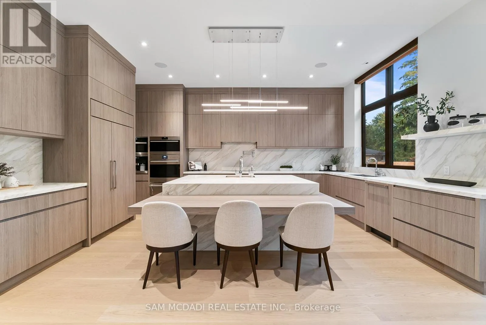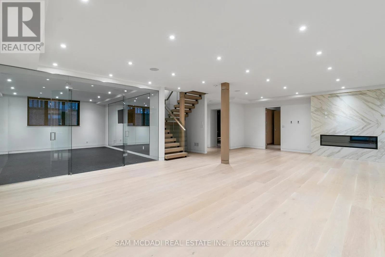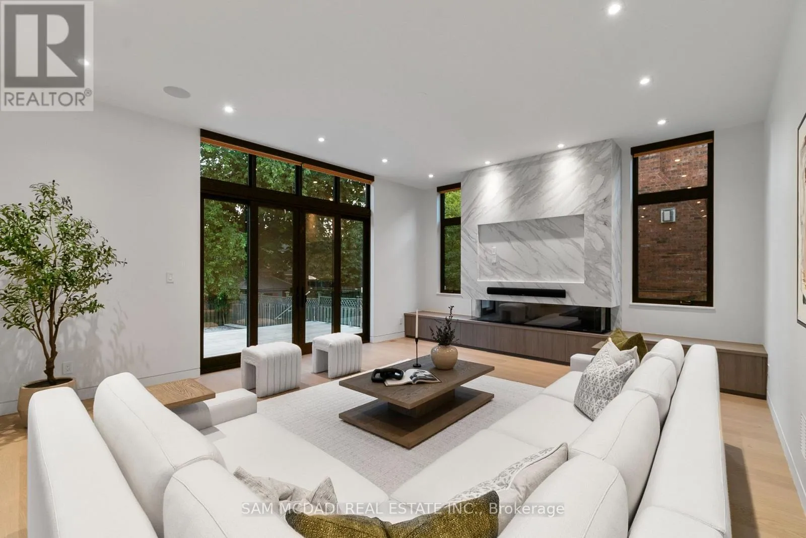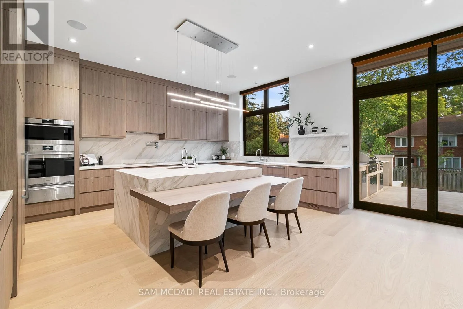 Cross Streets: Indian Rd/Mississauga Rd. ** Directions: Via Mississauga Rd, head on Indian Rd toward Kane Rd then turn right Mississauga Rd. Introducing quiet luxury in this meticulously curated Lorne Park residence, crafted by renowned architect David Small. This modern masterpiece embodies refined sophistication, defined by clean lines, layered natural finishes & showcases exceptional quality & a lifestyle designed for entertaining, wellness, & effortless family living. Spanning an approx. 7000 SF, the home welcomes you with a dramatic two-storey foyer, anchored by a striking 23-foot Neolith feature wall, setting the tone for the architectural elegance that unfolds throughout the space.Open living & dining rooms lined with builtin servery, glass display cabinetry, & ceiling speakers create an elegant entertainment hub. Family room with Regency fireplace & integrated storage. Powder room with floating vanity.The chefs kitchen is a sleek culinary haven: SubZero 48 panelled fridge & Freezer, Wolf induction cooktop, dual Wolf ovens (convection + steam), warming drawer, panelled Miele dishwasher, coffee machine, microwave, & Insinkerator disposal with instant-hot & pot-filler faucets. Modern chandelier, under-cabinet & base strip lighting, & dual sinks (large single + double) complete the kitchen.Master suite boasts a 12.6ft ceiling, cove lighting, walk-in closet with builtin safe, & electronic lock for privacy. Spacious master ensuite offers steam shower with pressure massager, rain & hand showers, dual vanities, floor heating, & soaking tub.Three additional bedrooms all with ensuites & closets; one features a private balcony overlooking the front yard. The walkout basement is flooded w/ natural light, floor heating, ceiling speakers, & another fireplace. Bar room & spa room offer complete relaxation: saunaCore infrared + traditional sauna, steam room with massage/rain showers, changing area, storage, spa vanity, mirrored gym w/ antislip flooring, glass wall, & TV mount. Guest room with ensuite & heated floors, organized mechanical room, snowmelt driveway, new fence, limestone, stucco & neolith exterior. (id:27476)