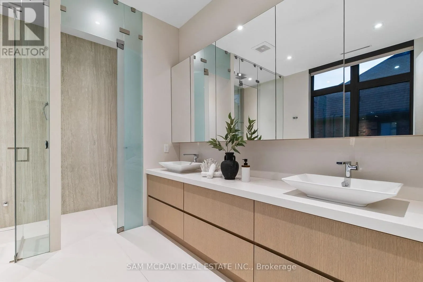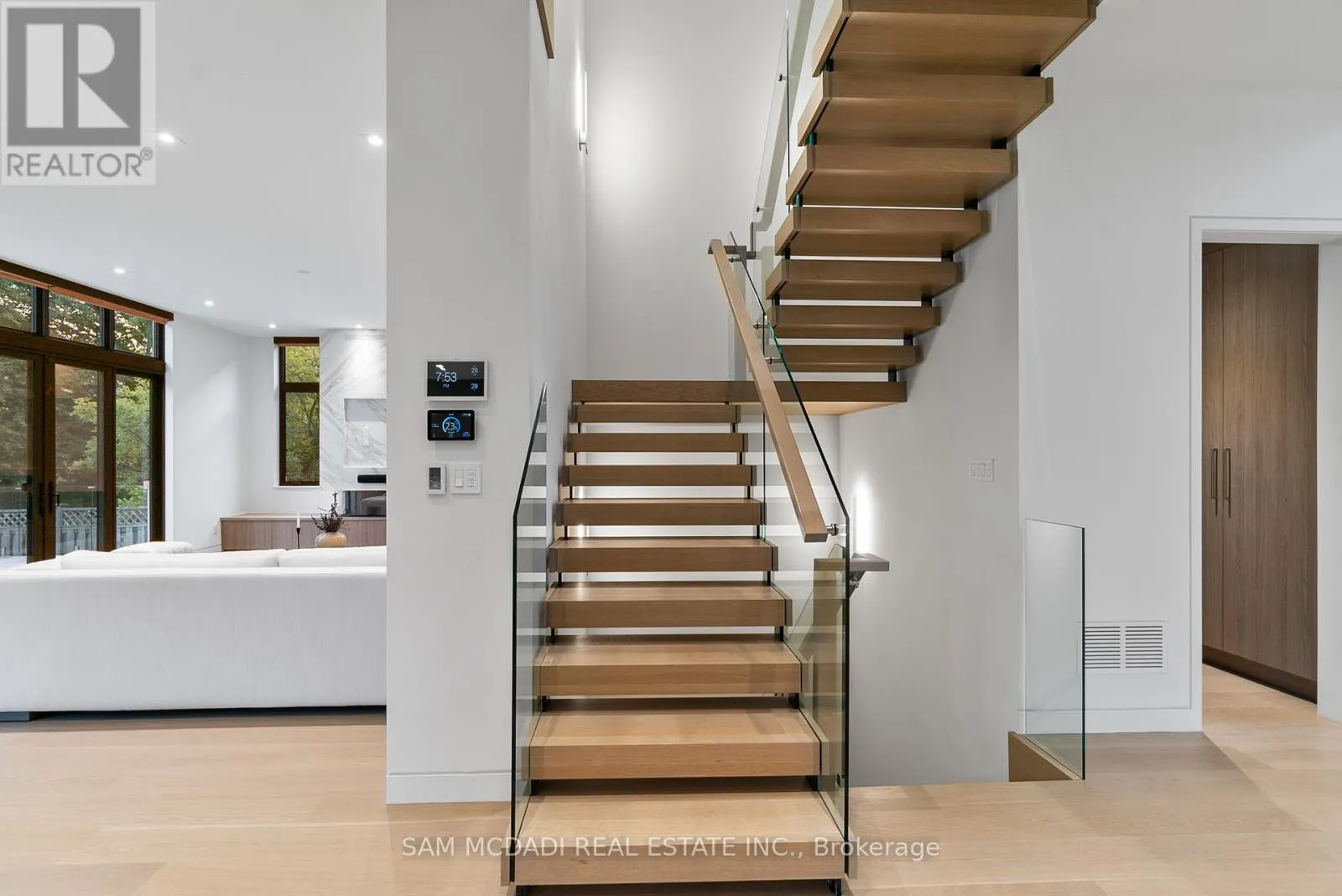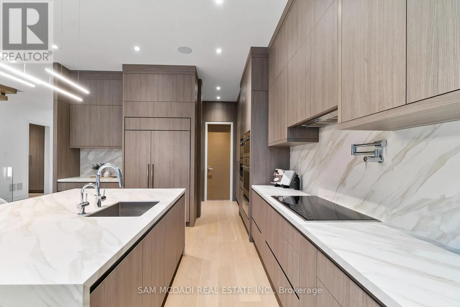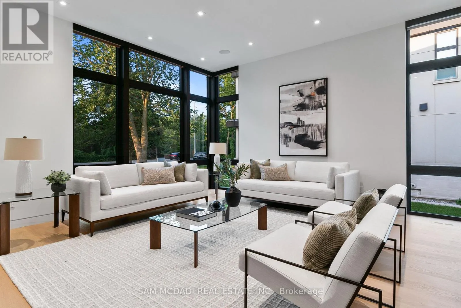 Cross Streets: Indian Rd/Mississauga Rd. ** Directions: Via Mississauga Rd, head on Indian Rd toward Kane Rd then turn right Mississauga Rd. Introducing quiet luxury in this meticulously curated Lorne Park residence, crafted by renowned architect David Small. This modern masterpiece embodies refined sophistication, defined by clean lines, layered natural finishes & showcases exceptional quality & a lifestyle designed for entertaining, wellness, & effortless family living. Spanning an approx. 7000 SF, the home welcomes you with a dramatic two-storey foyer, anchored by a striking 23-foot Neolith feature wall, setting the tone for the architectural elegance that unfolds throughout the space.Open living & dining rooms lined with builtin servery, glass display cabinetry, & ceiling speakers create an elegant entertainment hub. Family room with Regency fireplace & integrated storage. Powder room with floating vanity.The chefs kitchen is a sleek culinary haven: SubZero 48 panelled fridge & Freezer, Wolf induction cooktop, dual Wolf ovens (convection + steam), warming drawer, panelled Miele dishwasher, coffee machine, microwave, & Insinkerator disposal with instant-hot & pot-filler faucets. Modern chandelier, under-cabinet & base strip lighting, & dual sinks (large single + double) complete the kitchen.Master suite boasts a 12.6ft ceiling, cove lighting, walk-in closet with builtin safe, & electronic lock for privacy. Spacious master ensuite offers steam shower with pressure massager, rain & hand showers, dual vanities, floor heating, & soaking tub.Three additional bedrooms all with ensuites & closets; one features a private balcony overlooking the front yard. The walkout basement is flooded w/ natural light, floor heating, ceiling speakers, & another fireplace. Bar room & spa room offer complete relaxation: saunaCore infrared + traditional sauna, steam room with massage/rain showers, changing area, storage, spa vanity, mirrored gym w/ antislip flooring, glass wall, & TV mount. Guest room with ensuite & heated floors, organized mechanical room, snowmelt driveway, new fence, limestone, stucco & neolith exterior. (id:27476)