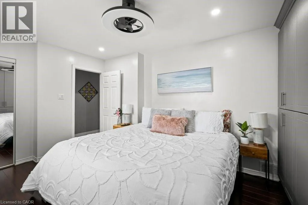Goreway - right Jolliffe Ave then left on Dooley Beautiful multi level townhouse in a prime Mississauga location with one of the lowest condo fees in the area at only $230 per month. This spacious 4 bedroom home offers a finished basement, a private fenced yard, and parking for two. A great fit for first time buyers, families who need room to grow, or investors looking for strong rental potential. You are just steps from major shopping, Tim Hortons, banks, restaurants, and transit. Quick access to Highway 427 and Pearson Airport adds to the convenience. Inside, the layout offers space and flexibility. The master bedroom sits on its own level and features his and hers closets that span an entire wall. The main level includes a bright living room with a walkout to a fully fenced backyard which is perfect for summer gatherings. The open concept dining room flows into a modern kitchen with custom cabinetry, pantry space, and upgraded finishes. The fourth bedroom on the main floor works well as a guest room or home office. The upper level includes two additional large bedrooms and a fully upgraded main bathroom. The finished lower level provides a cozy recreation room or potential fifth bedroom, along with a dedicated laundry and utility room and extra storage under the ground level. The ground floor offers a spacious foyer and a convenient powder room. Parking includes a private driveway and garage for a total of two vehicles. This rare 4 bedroom layout with low condo fees, a finished basement, and parking for two makes this a wonderful opportunity for buyers and investors alike. (id:27476)