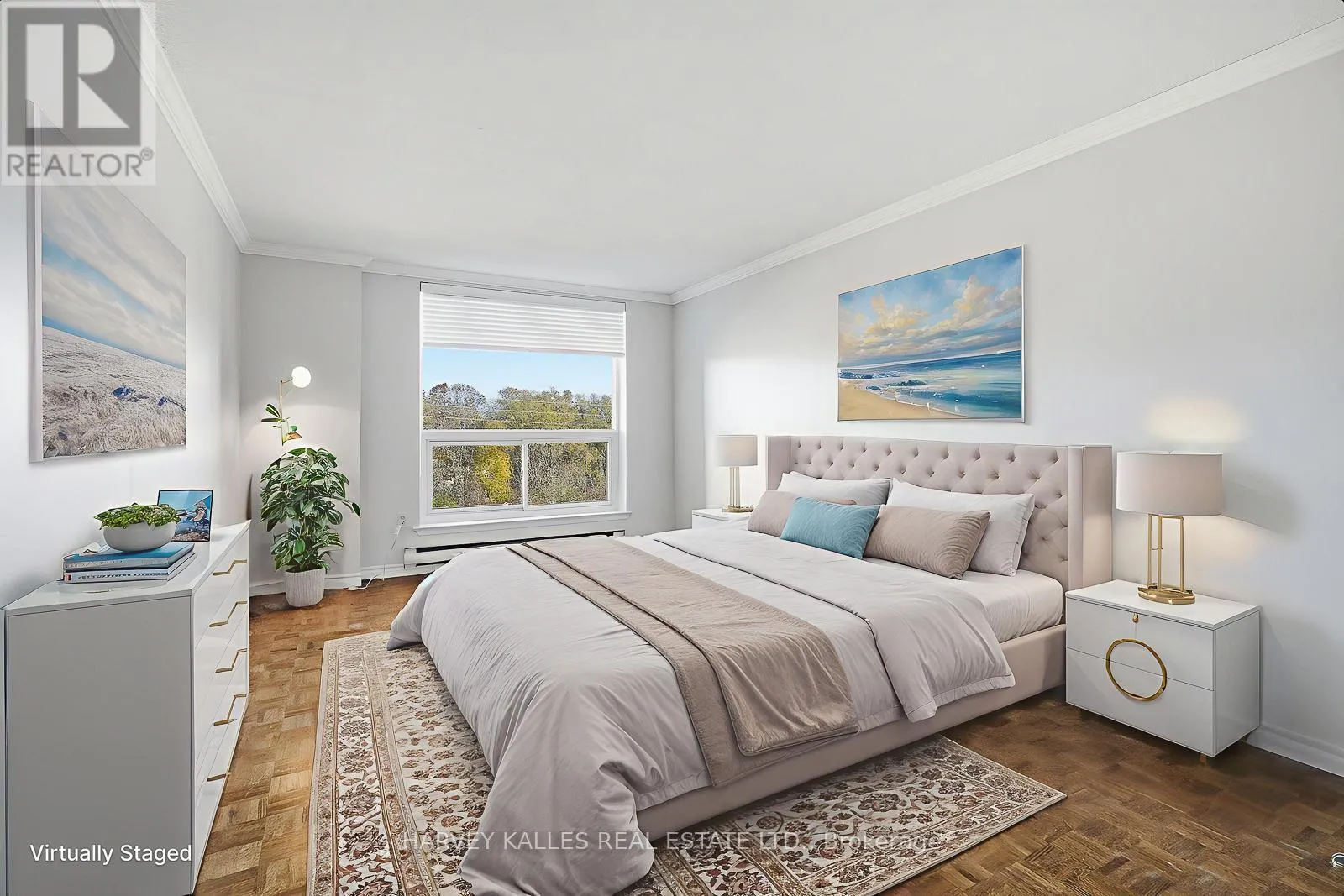 Lakeshore /Inverhouse Welcome to the heart of Clarkson Village. This spacious 1,350 sq ft condo with a large balcony offers a bright and private 5th floor view overlooking landscaped gardens and mature trees. This floorplan features two generous bedrooms, a large den, an updated 3-piece ensuite bathroom and a second updated 4-piece bathroom. Plenty of ensuite storage, including a large walk-in storage area and convenient ensuite laundry. The standout balcony spans approximately 16'11" x 7'11", perfect for outdoor relaxing or entertaining. Parking is a large tandem spot located close to the elevator. This well-managed building offers excellent amenities including an outdoor heated pool, sauna, gym, party room with full kitchen, bike storage, car wash with two bays, and ample visitor parking. The lobby, entrance doors and hallways have been recently renovated, adding to the fresh and welcoming feel. Just steps to Clarkson GO, shopping, dining, parks, Ontario Racquet club , Lake Ontario, Rattray Marsh trails, and quick access to QEW and 403. A wonderful opportunity to own in a highly desirable and convenient location. *Some photos are virtually staged. (id:27476)