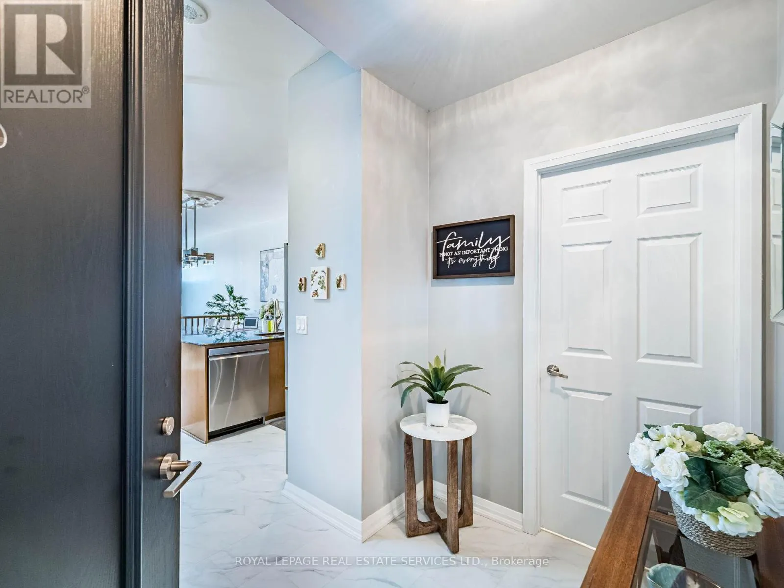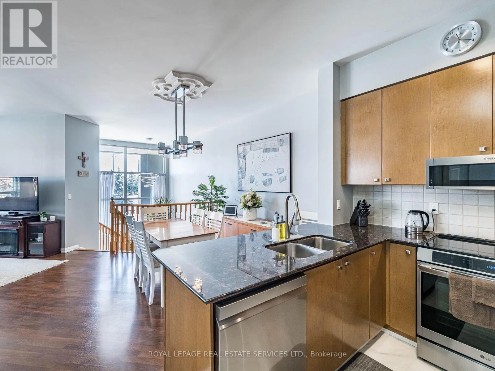 Eglinton Ave. and Forum Dr. Welcome to Townhouse #113 - 1,519 square feet of Modern Living in the Heart of Mississauga. Step into this stunning two-level corner townhouse where contemporary design seamlessly blends with everyday comfort. The moment you step through the door soaring 12-foot foyer windows flood your view with natural light, creating a bright and inviting atmosphere. Adjacent to the main entrance is a convenient two-piece powder room and a spacious closet. The main level is designed for entertaining, featuring an expansive open-concept living and dining area with 9-foot ceilings. Whether hosting lively dinner parties or enjoying quiet nights at home, this versatile space effortlessly adapts to your lifestyle. The sleek, modern kitchen boasts granite countertops, a stylish backsplash, new stainless steel appliances, and upgraded flooring. The main-level primary suite serves as a private retreat, complete with a walk-in closet and a luxurious spa-inspired three-piece ensuite bathroom. Descending to the lower level, you'll find a spacious landing area with a secondary entrance and direct access to the outdoor patio. Continuing down, the lower level includes a full three-piece bathroom and two additional bedrooms perfect for guests, family, or a home office. In addition, you will find the laundry room equipped with new, full-size stainless steel washer and dryer. Enjoy the rare advantage of two owned parking spaces and two private lockers. You would also have access to exceptional building amenities, including concierge, an outdoor pool, a fully equipped gym, a party room,and a lounge for a quiet getaway. All of this is ideally located in the heart of Mississauga-just minutes from Square One Shopping Centre, major highways, schools, parks, and public transit, with the upcoming Hazel McCallion LRT line only moments away. Townhouse #113 isn't just a home-it's a lifestyle. (id:27476)