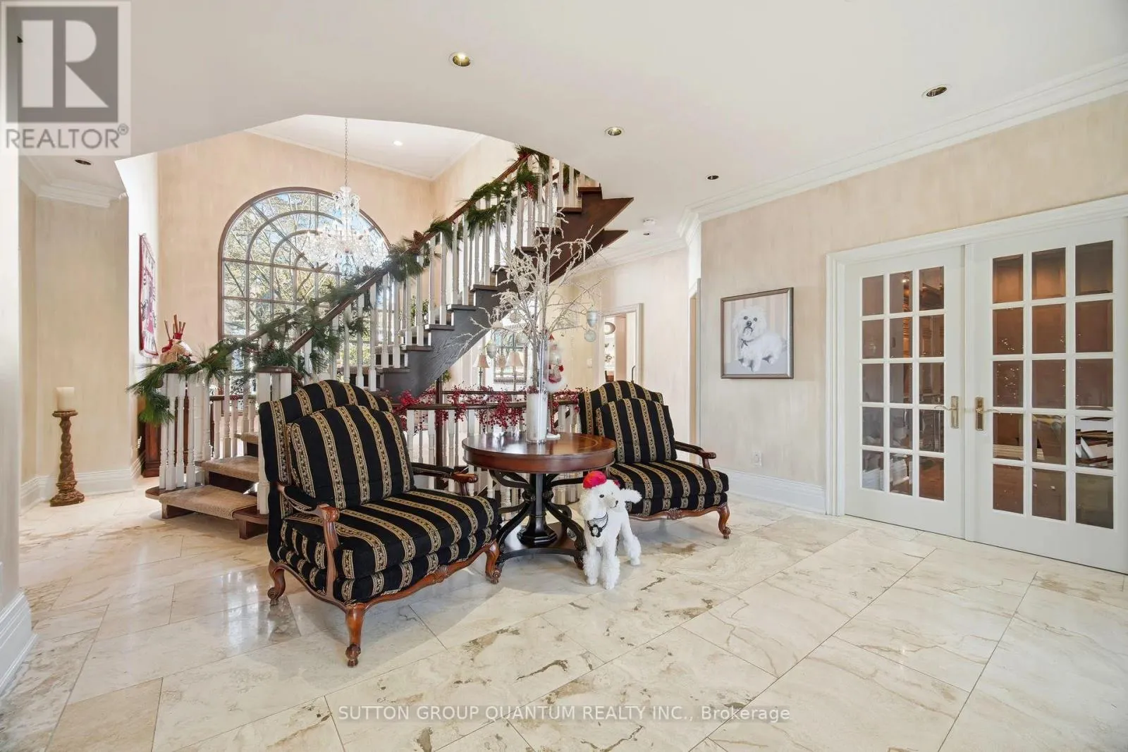 Mississauga Rd and Geran Cres Elegant, luxury home mere steps to Mississauga Golf and Country Club combines spacious contemporary living with striking architectural details, highlighted by a dramatic staircase and an oversized floor-to-ceiling window that floods the interior with natural light. Recently renovated kitchen blends modern style with functionality. Striking quartz island combined with top of the line stainless steel appliances (Sub-Zero, Wolf, Bosch and Miele) surround custom cabinetry showcasing classic craftsmanship and design with sleek finishes, walk-in pantry and breakfast dining area. 6900 square feet of total living space. Main floor living, family room, and den boasts 9 1/2 ceilings. Private professionally landscaped backyard that features saltwater pool (new liner) with entertaining areas. 2nd level primary suite boasts spa-like ensuite with walk-in closets with island, three other bedrooms have recently renovated washrooms with heated floors. Lower level has entertainmnet area and full gym. Lots of storage rooms. Just minutes to QEW, 403, Port Credit Village, MGCC and Credit Valley golf club, University of Toronto Mississauga campus. Please note there is no sign on the property. (id:27476)