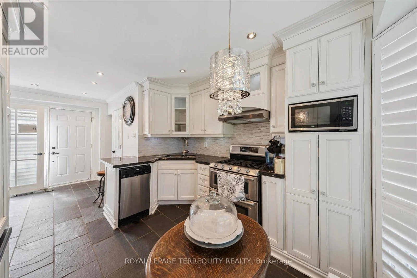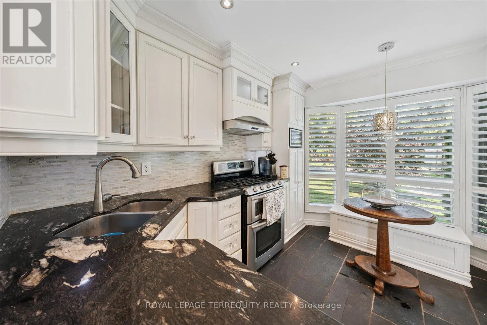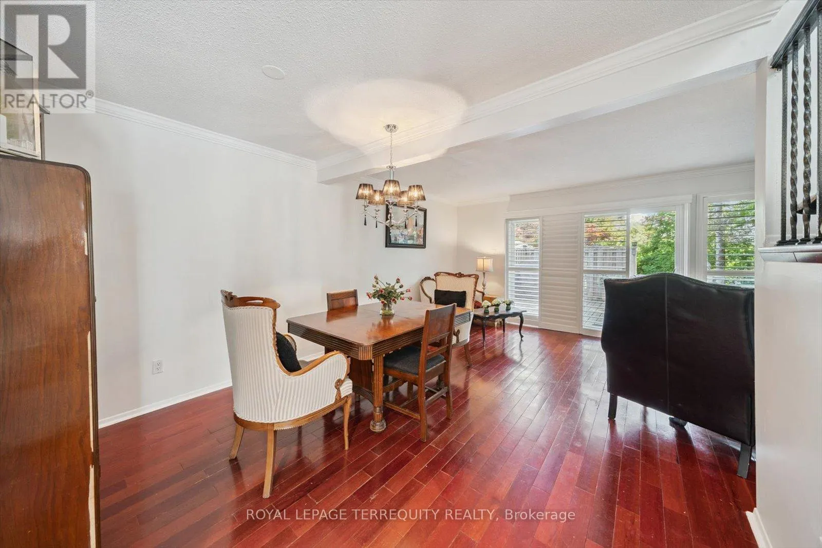 Falconer/Hyde Mill Welcome to Hyde Mill's finest. This chic and unique detached condo executive townhouse has the best credit river views in the complex. Rare cul-de-sac home with your own custom fenced back deck overlooking the private scenic green space and ravine of the Credit River; this is your Muskoka dream, surrounded with mature trees, tailored gardens, trails, parks, and professionally maintained grounds. Enjoy your BBQs with nature all around. With over a total 2000 sqft, We have been completely customized top to bottom: crown moldings, no carpet, real wood and new engineered laminate flooring, wrought iron inserts in the hallways, special ordered kitchen cabinets backsplash and counters, stainless steel appliances, non slamming kitchen drawers and doors, custom bench by kitchen bay window, pot lights, California shutters, gas fireplace in the living room, primary bedroom has separate entrance to the oversized renovated washroom, huge walk in closet with sliding doors, basement has extra storage in the furnace/utility room and crawlspace under the stairs amazing use of space, perfect for entertaining or simply enjoying nature's spoils. Our complex offers newly paved roads, newer water mains, newer windows and roofing, new eavetroughs cover guards, sun heated outdoor pool, and lots of visitor parking. Welcome home, make this your own and enjoy with minimal to no outdoor maintenance (id:27476)