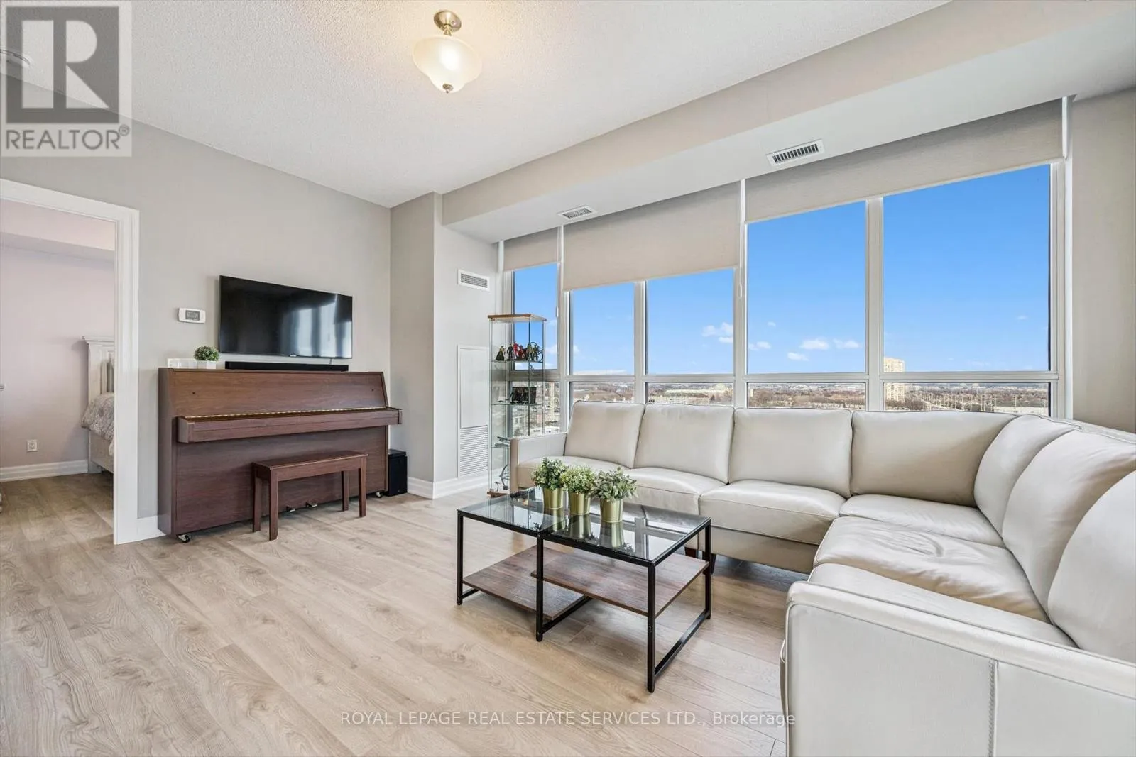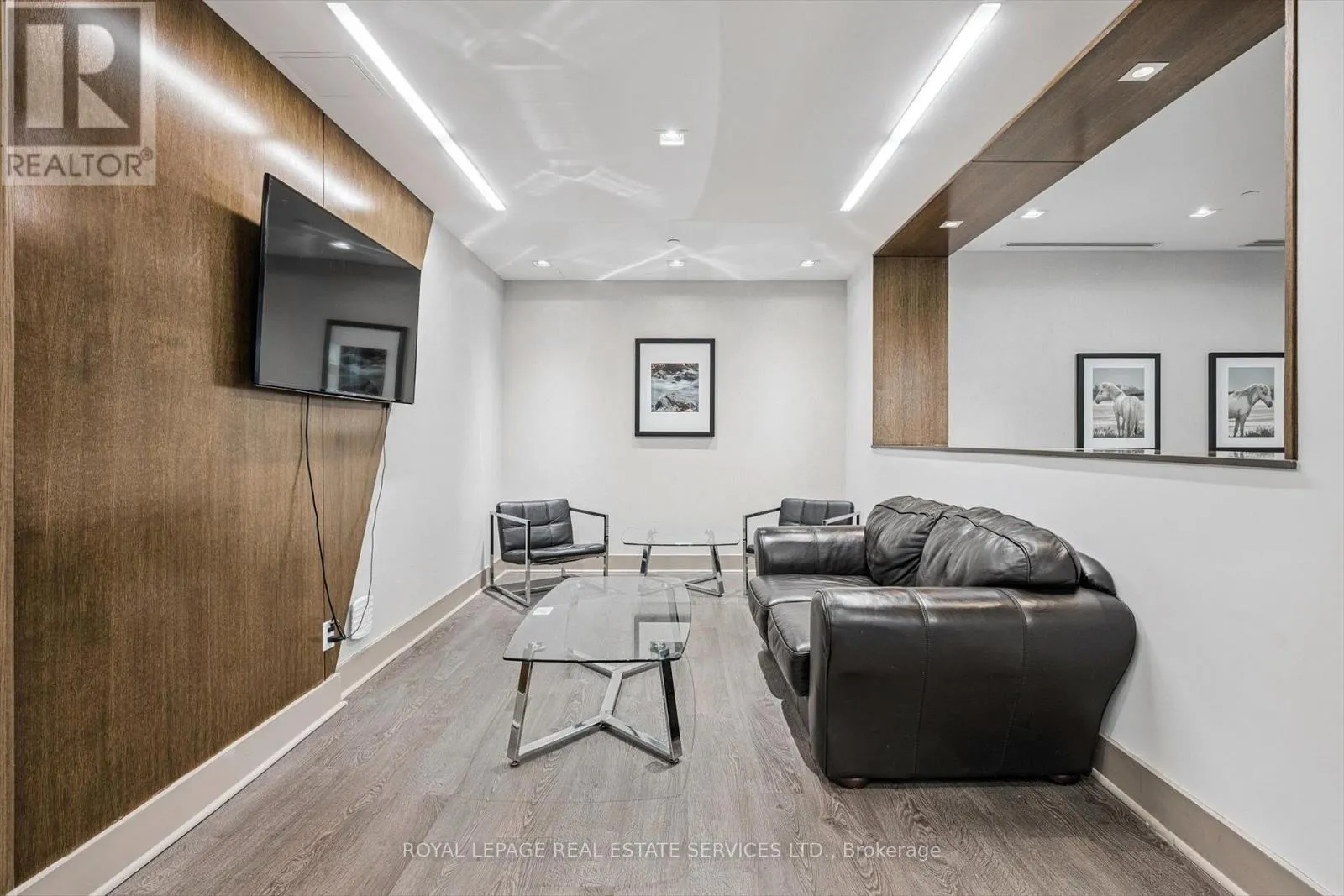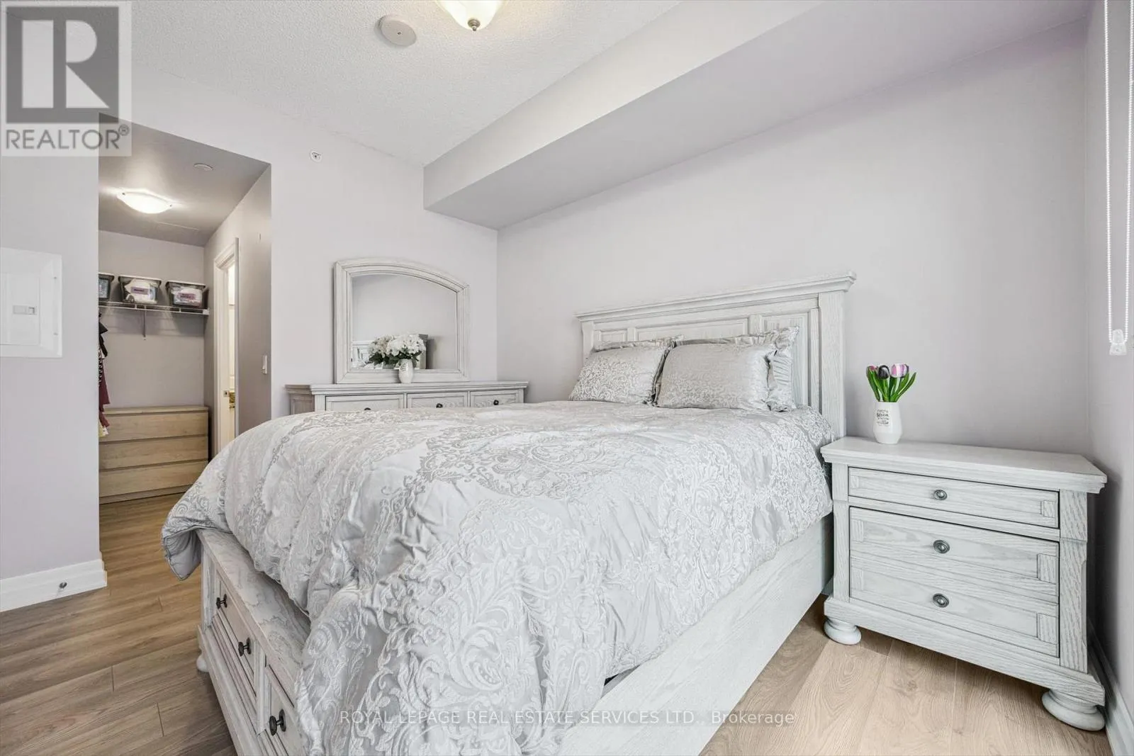 Cross Streets: Hurontario Street AND Eglinton Avenue West. ** Directions: Hurontario Street / west on Eglinton Avenue West. WELCOME TO CRYSTAL CONDOS! IMMACULATE TWO BEDROOM, TWO BATHROOM SOUTH-EAST CORNER SUITE! This exceptionally well-maintained condominium apartment offers nearly 930 square feet of refined living space, complemented by an expansive approximately 100 square foot balcony showcasing unobstructed skyline views. Floor-to-ceiling windows bathe the interior in natural light, enhancing the bright and airy atmosphere throughout. Thoughtfully designed for both everyday living and entertaining, the open concept layout features a spacious living room, a dedicated dining area with walkout to the private balcony, and a gourmet kitchen complete with granite countertops, subway tile backsplash, and stainless steel appliances. The primary bedroom boasts a walk-in closet and a spa-inspired four-piece ensuite. A generous second bedroom, luxurious three-piece bathroom, and convenient in-suite laundry complete the residence. Additional highlights include high-quality wide-plank laminate flooring, 4" baseboards, upgraded sound/heat/light-blocking roller blinds, one underground parking space, and a dedicated storage locker. An additional underground parking space, P2 #121, may be leased for $150 per month. Residents enjoy an impressive collection of resort-style amenities, including a 24-hour concierge, indoor pool and hot tub, sauna, fully equipped fitness centre, yoga studio, library with Wi-Fi workstations, theatre room, billiards and entertainment lounge, party room with full kitchen and dining area, guest suites, an expansive outdoor terrace with BBQs, and ample visitor parking. Ideally located close to grocery stores, Square One Shopping Centre, Heartland Town Centre, schools, parks, public transit, and major highways. A rare opportunity to own a premium corner suite in the heart of Mississauga. (id:27476)