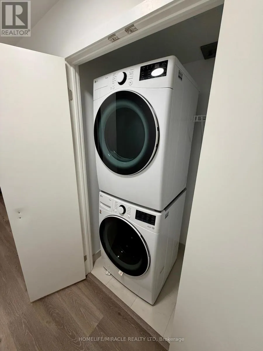Burnhamthorpe & Confederation Brand new 1-bedroom, 1-bathroom condominium for lease in the heart of Mississauga's Square One District. Functional open-concept layout featuring a modern kitchen with built-in appliances, in-suite laundry, and a bright living/dining area with walk-out to a private balcony. Well-sized bedroom with ample closet space. Includes one locker. Steps to Square One Shopping Centre, Celebration Square, public transit, dining, and entertainment, with quick access to major highways. Ideal for professionals seeking a walkable urban lifestyle. Tenant pays all metered utilities. (id:27476)