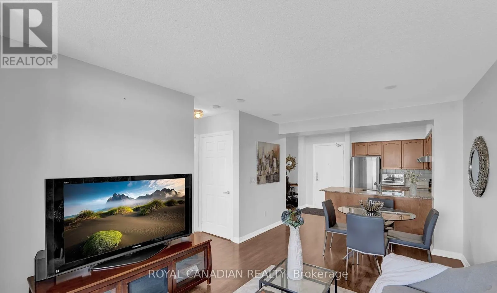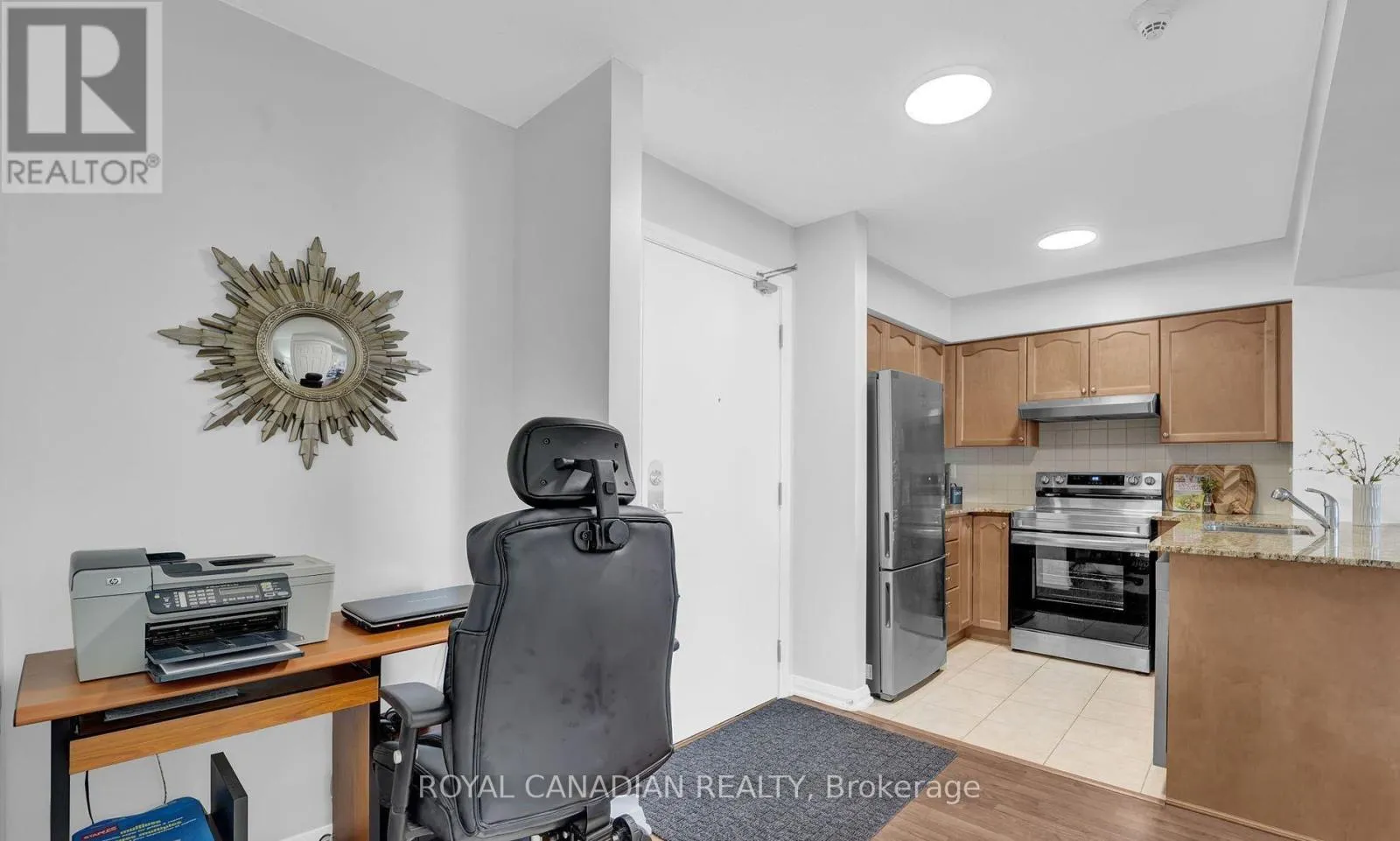 Cross Streets: Eglinton/Hurantario. ** Directions: Ne. Welcome to this beautiful and spacious1 bedroom+1 den unit desirable Tuscany Gate building. The unit features a spacious kitchen with newer stainless steel appliances and has been freshly painted in a neutral color, providing a blank canvas for your beautiful decor. The large bedroom boasts two generous windows, offering plenty of natural light and stunning views . The great sized den serve as a guestroom, bedroom , home office , kids study or additional storage. Enjoy breathtaking , unobstructed panoramic views of the Toronto and Mississauga skyline from your living room and private balcony. The unit offer a perfect blend of comfort and convenience making it ideal home for anyone looking to live in a prime location. (id:27476)