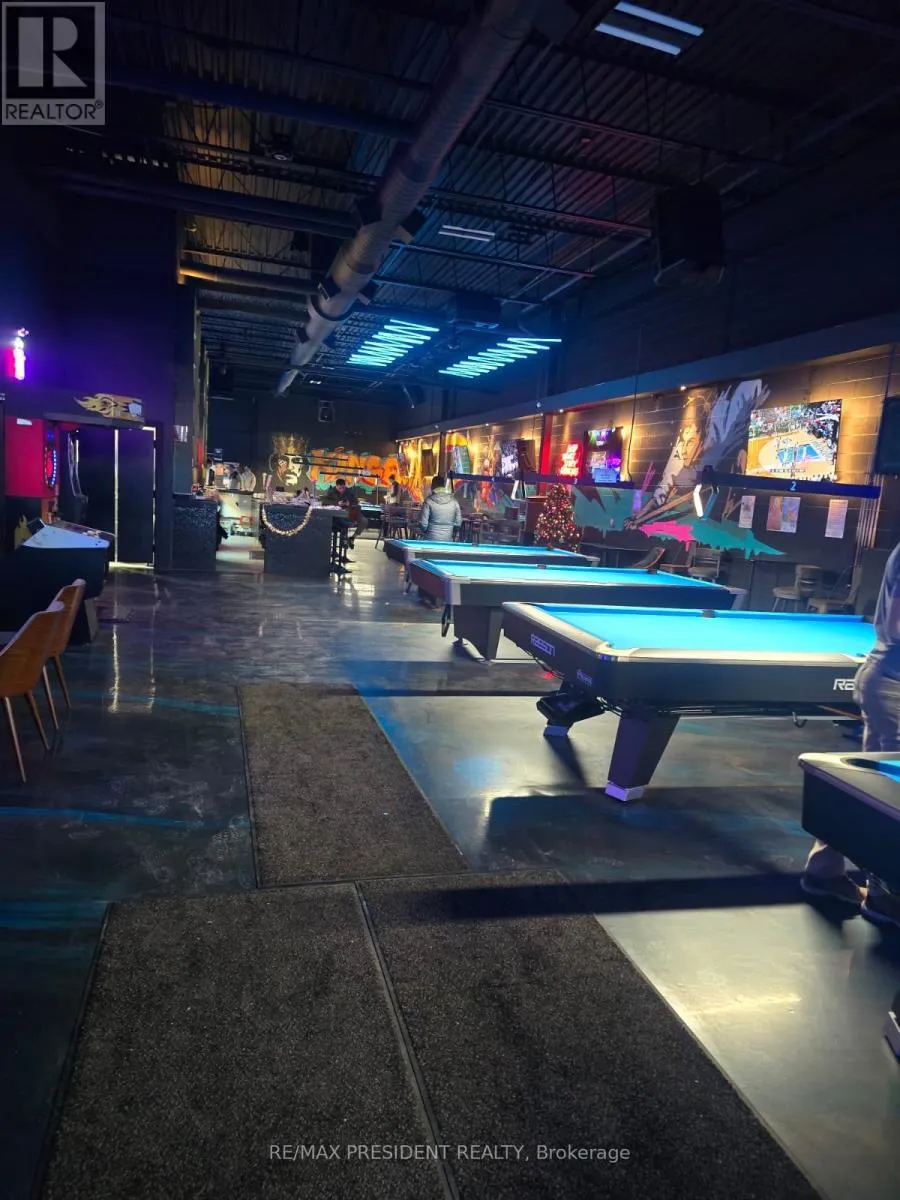 Dixie & Eglington Ave Turn-key, one-of-a-kind business opportunity to be your own boss today! Rack Billiards & Bar is the ultimate destination for entertainment, relaxation, and unforgettable experiences, offering pool tables, a vibrant bar atmosphere, and a lively sports bar show casing live games for fans to enjoy. This well-established venue also features a versatile event space ideal for private gatherings of 10 to 100 people, with total seating for approximately 100 patrons. According to the seller, the business generates approximately $70,000 in monthly sales and operates under a long-term lease with all-inclusive rent of $13,167 per month. Whether guests are enjoying drinks, friendly competition, or special events, Rack Billiards & Bar delivers nonstop energy, making this an exceptional opportunity for an owner-operator or investor. (id:27476)