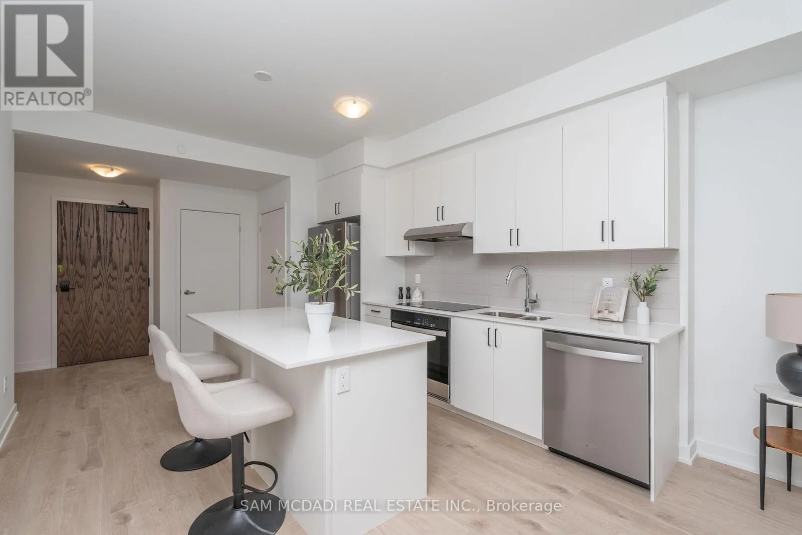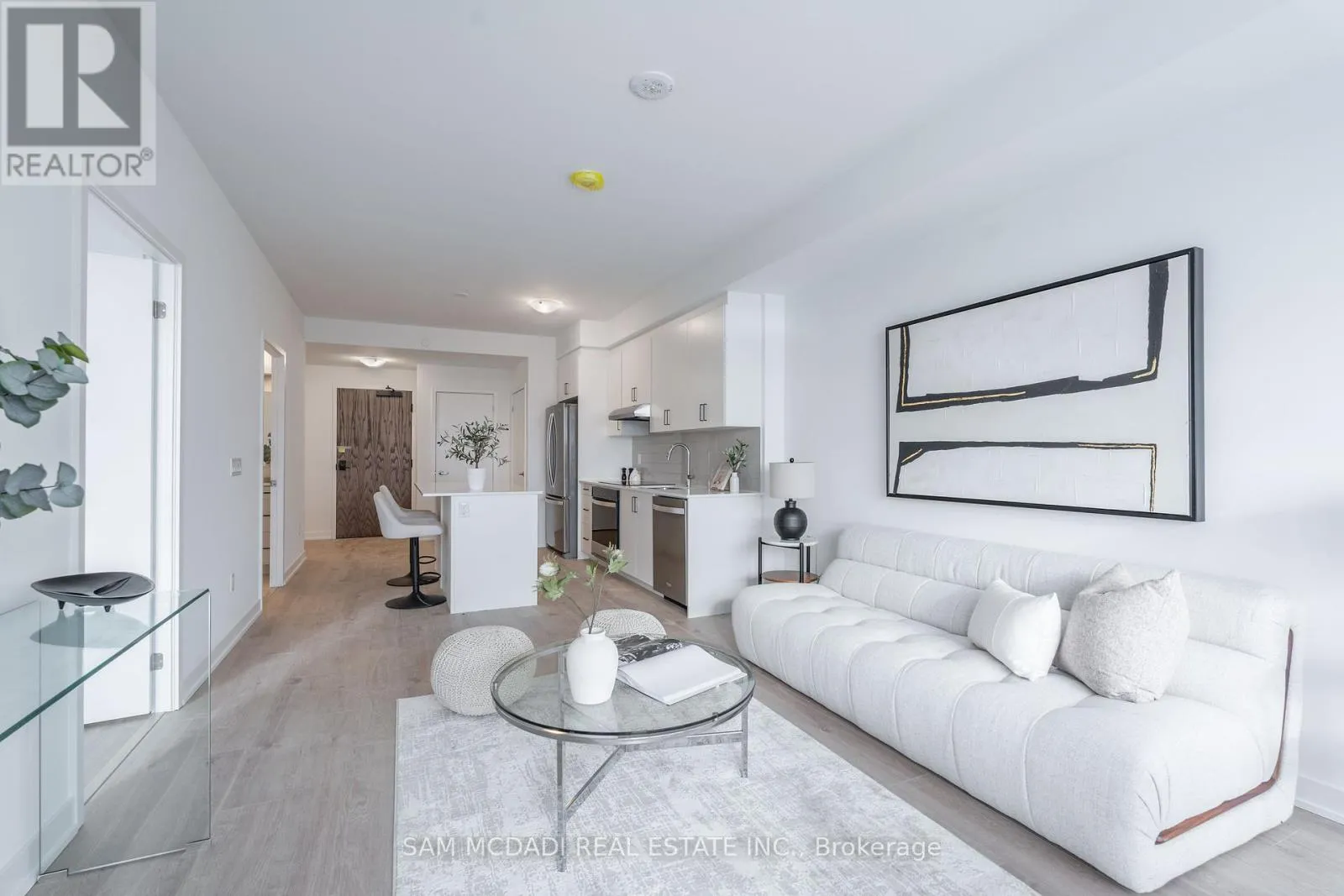 Cross Streets: Lakeshore Rd W & Southdown Rd. ** Directions: Take Erin Mills Pkwy S to Southdown Rd S. Fully Furnished Unit! Welcome to this new beautifully designed 801 sq. ft. condo in the sought-after Clarkson community! This modern unit is dressed to impress with modern furniture pieces for Tenant's use and features stunning vinyl hardwood floors and floor-to-ceiling windows, creating a bright and inviting open-concept living space. The spectacular kitchen is a chefs dream, boasting quartz countertops, a large centre island, and plenty of storage. The spacious bedroom offers two closets and convenient access to a gorgeous 4pc semi-ensuite, combining style and functionality. A versatile den provides the perfect setup for a home office or study. Additional highlights include a walk-in laundry room and thoughtfully designed finishes throughout. Located in a vibrant neighbourhood close to Jack Darling Park Memorial Park, Clarkson Go station, Port Credit's bustling restaurants, cafes, and boutiques, and more! Quick commute to downtown Toronto via the QEW! An exceptional place to call home! Building amenities will include a swimming pool, a gym, a roof top terrace/patio, a sauna, a pet washing station, and ample visitor parking. Internet, water and heat are included in the rent. Tenant's will be responsible for monthly hydro. (id:27476)