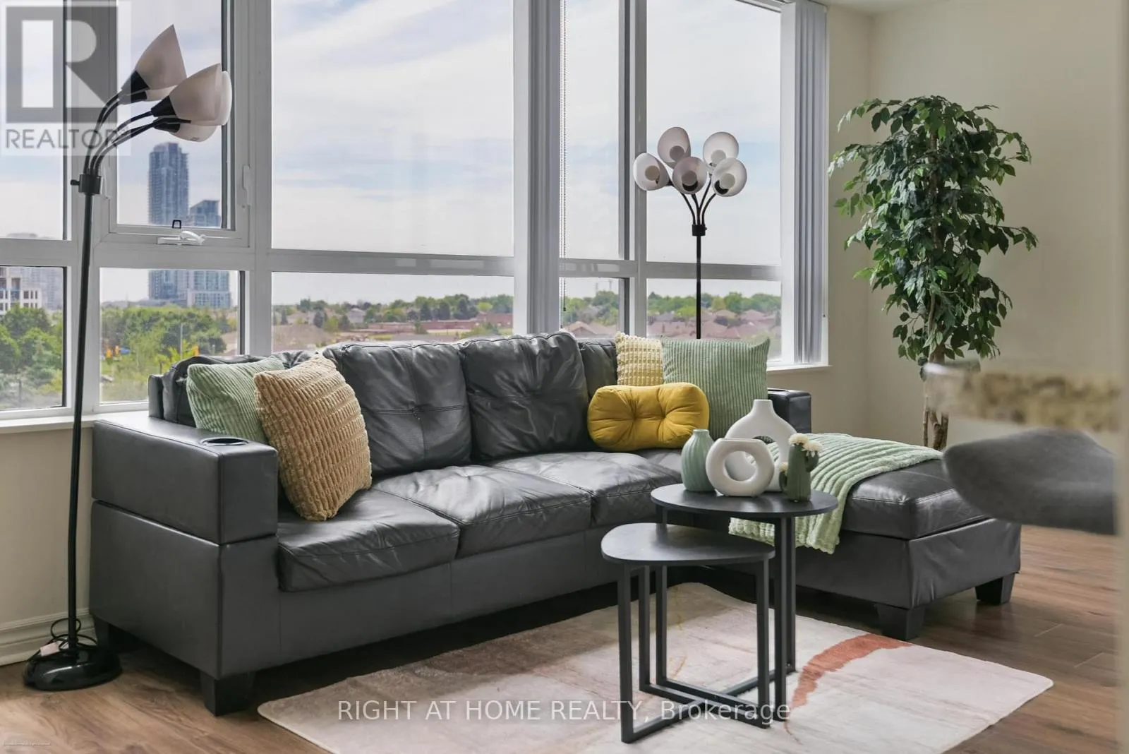 Cross Streets: Rathburn Rd & Confederation Pkwy. ** Directions: From Confedaration Pkwy to Rathburn Rd W. ***Further Price Reduction - Exceptional Value***Discover outstanding space, prime location, and unmatched convenience in this stylish corner-unit residence, now offered at an even more attractive price. This beautifully maintained condo features one of the largest layouts in the building, with 955 sq. ft. of interior living space plus a 59 sq. ft. private balcony. Located in one of Mississauga's most vibrant neighbourhoods, this bright 2-bedroom + den, 2-bathroom suite seamlessly blends modern design with everyday functionality. The open-concept layout highlights a sleek kitchen with stainless steel appliances, contemporary cabinetry, and a spacious island-ideal for cooking, working, or entertaining. Floor-to-ceiling windows flood the living and dining areas with natural light, while the balcony provides a peaceful place to unwind. The primary bedroom offers a walk-in closet and a 4-piece ensuite. Both bedrooms comfortably accommodate queen-size beds, making the layout ideal for families, guests, or roommates. The versatile den functions perfectly as a home office or additional storage. As a corner unit, enjoy enhanced privacy, larger windows, and a bright, airy atmosphere throughout. Residents benefit from excellent amenities, including a fitness centre, indoor pool, party room, and 24-hour concierge. Steps to Square One, Sheridan College, Celebration Square, dining, entertainment, and major transit, with quick access to Highways 403 and 401. Parking and locker included. Sellers are highly motivated and open to serious offers-an excellent opportunity to secure one of Mississauga's most desirable corner suites at a newly reduced price. (id:27476)